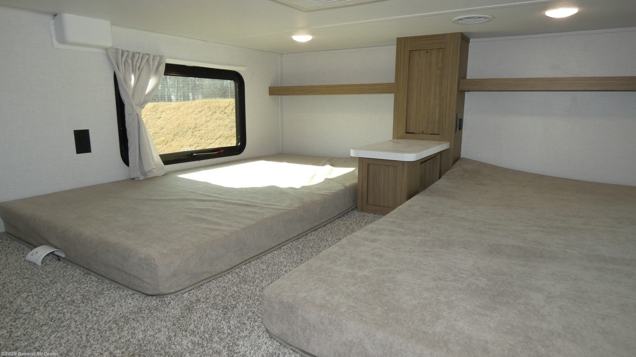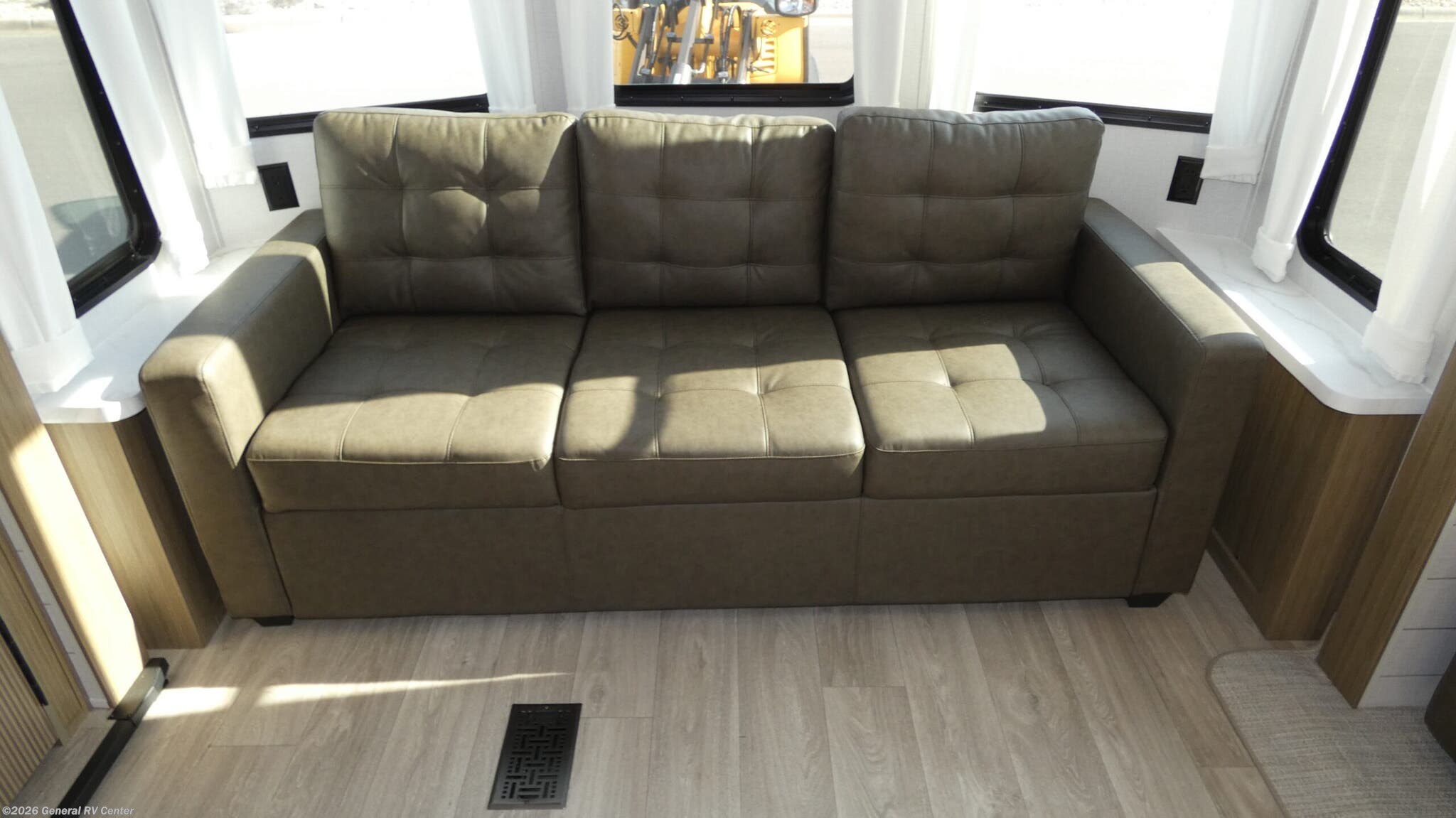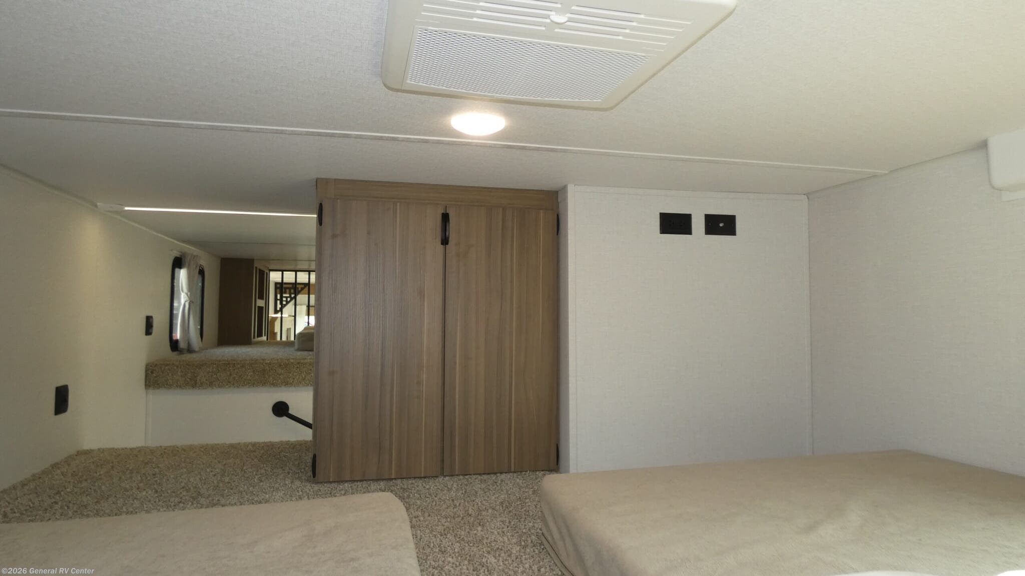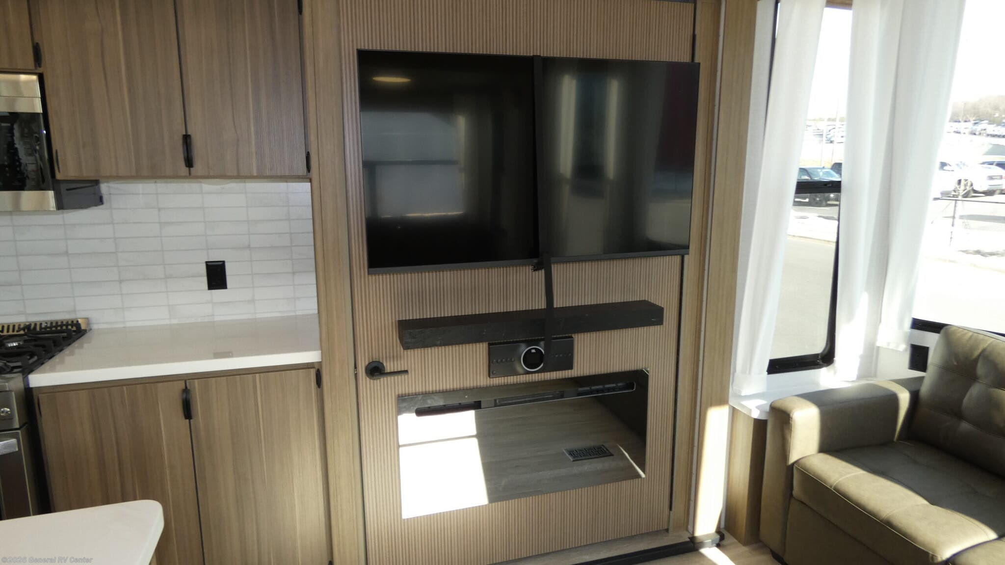 Forest River Wildwood Grand Lodge destination trailer 42FLDL highlights: Dual Entry Front Living Room Kitchen Island Central Vacuum Residential Theater Seating Double Loft Keep your family happy by providing them with plenty of space and comforts in this Wildwood Grand Lodge destination trailer! The living area is such a gorgeous feature in this unit because of the panoramic front windows that allow you to feel as if you're right in the heart of your surroundings, and as you sit on the sofa next to the fireplace, you'll appreciate the ambiance it brings to this space. If you've decided to stay up late outside underneath the 21' awning, you can rest assured that you'll be able to get back inside quietly without waking anyone up because the second entry door leads directly into the rear private bedroom for your convenience so you can quickly fall asleep on your own king bed with versa-tilt. And the kids will love the double loft with three bunk mats and extra floor space to play. With any Wildwood Grand Lodge destination trailer by Forest River, you can enjoy extended stays wherever you go! There is 4K awning blade lighting outside, along with slide out awning toppers, plus a heated and enclosed Accessibelly for added protection. Inside, you'll love the stylish backsplash update, elegant curtain rods and curtains, TFL black walnut entertainment shelves, and stainless steel kitchen appliances. A Serta mattress in the bedroom(s) will provide comfort to each journey, and there is a tankless water heater for hot water when you need it.