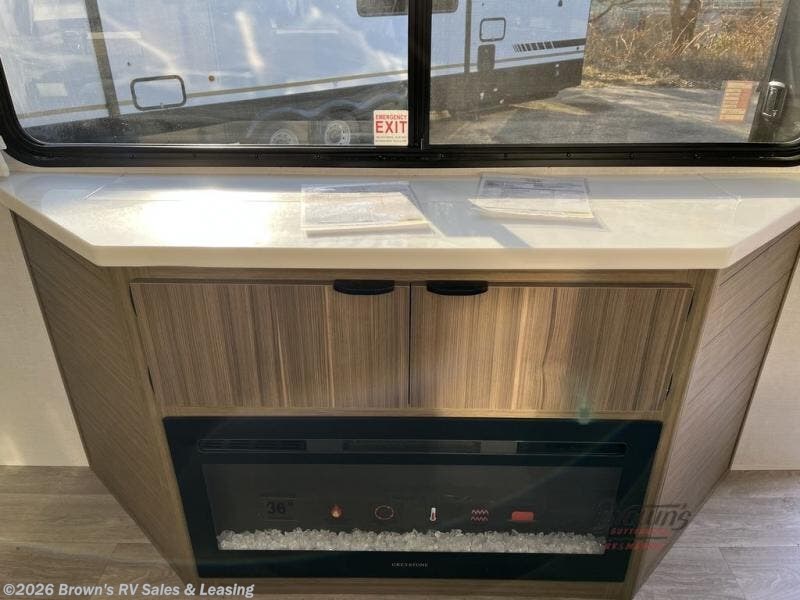 With any Wildwood Grand Lodge destination trailer by Forest River, you can enjoy extended stays wherever you go! There is 4K awning blade lighting outside, along with Tufflex PVC roofing, plus a heated and enclosed Accessibelly for added protection. Inside, you'll love the stylish backsplash update, elegant curtain rods and curtains, TFL black walnut entertainment shelves, and stainless-steel kitchen appliances. A Serta mattress in the bedroom(s) will provide comfort to each journey, and there is a tankless water heater for hot water when you need it.