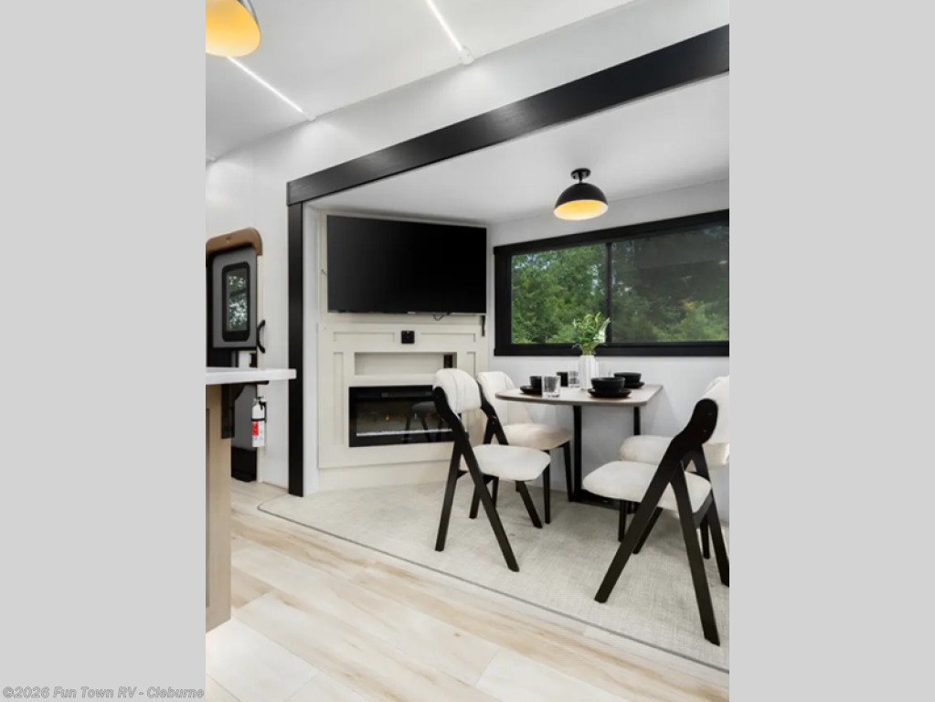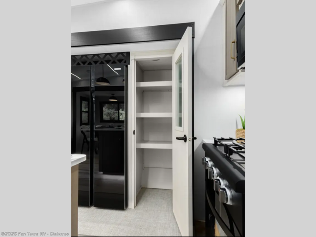 Whether you enjoy being outside or inside, this Wildwood Heritage Glen fifth wheel gives you the best of both! Imagine relaxing in a chair or on the tri-fold sofa and being able to look out panoramic windows at the scenery. Or, you might like to watch a show on the 50" LED TV with a fireplace below, and you can dine at the table and chairs that allows you to move the chairs if needed. The 16-cubic foot 12V refrigerator next to the pantry will allow you to stock up on ingredients and cold beverages for a long trip, and you will appreciate the custom king bed slide and the residential walk-in shower after being outside all day, even if just under the 13' awning. There is plenty of storage in the master bedroom and throughout, plus the XL Texas size pass-through compartment will surely come in handy for your charcoal, outdoor games, and such.