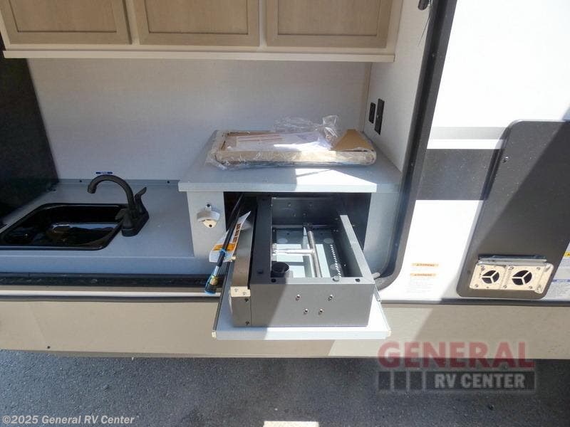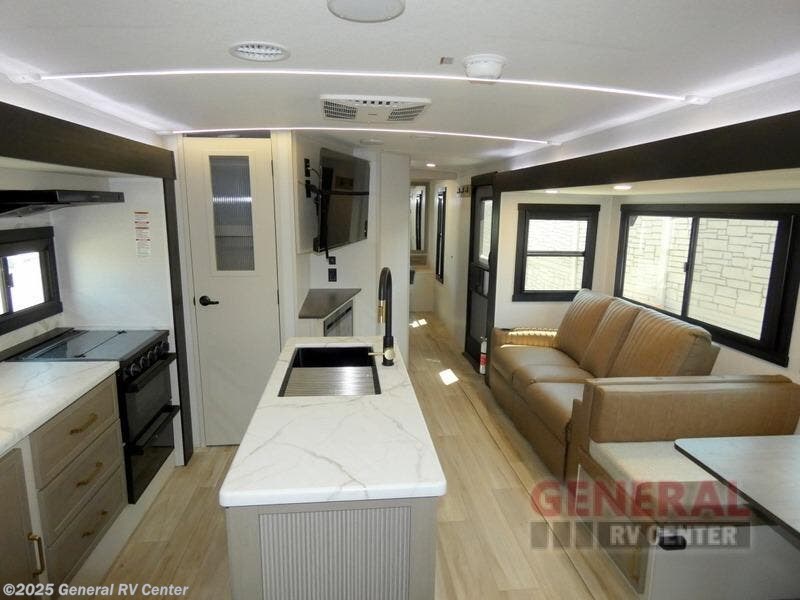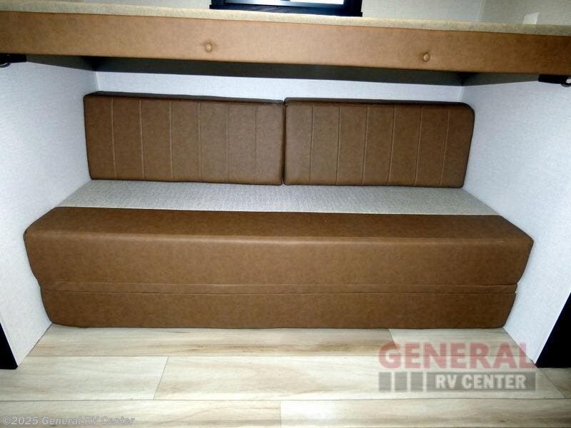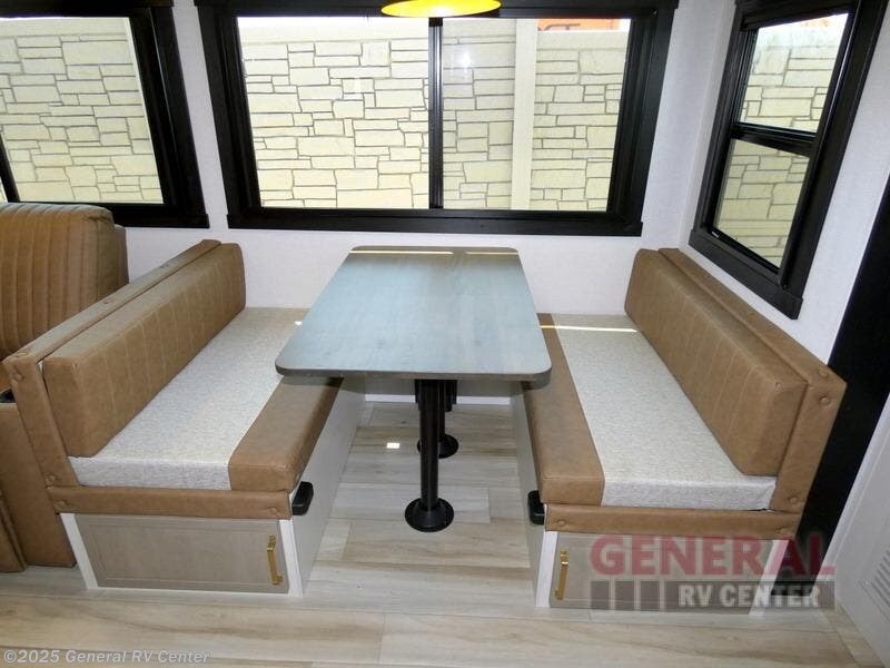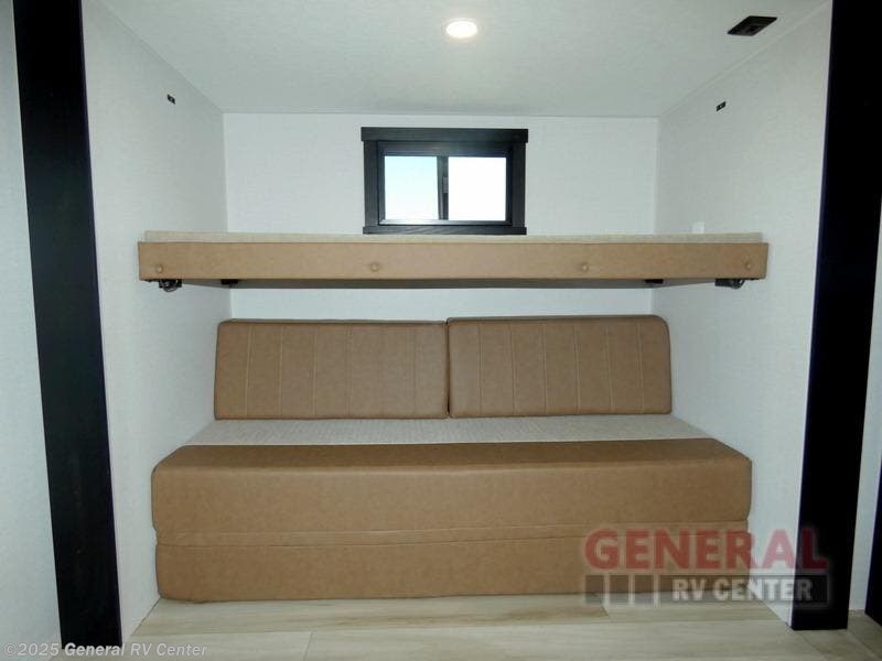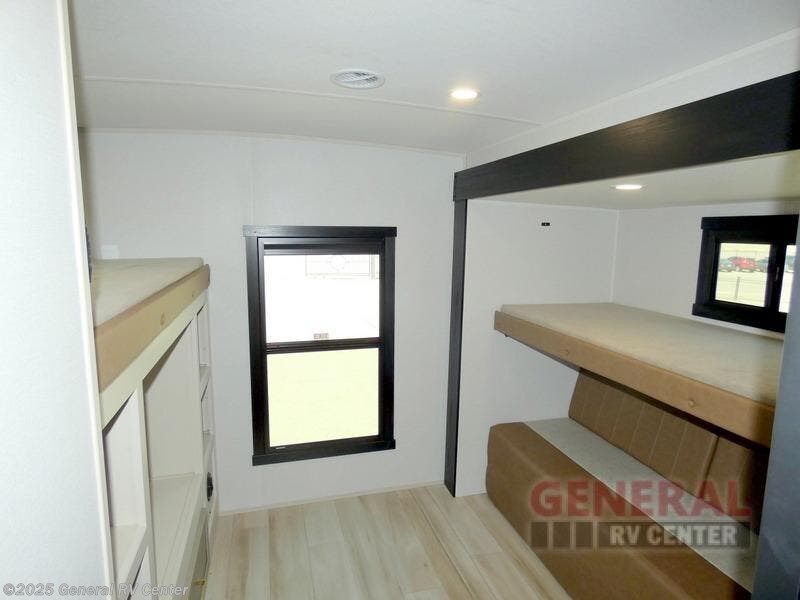 Your kids or friends are ready for a trip in this Wildwood Heritage Glen travel trailer, but are you? As the kiddos or your buddies claim the private bunkhouse for themselves, which includes two bunk beds and a convertible sofa bed, you can escape to your own privacy in the front bedroom with a queen bed with Versa Tilt and lots of storage. There is even washer/dryer prep for added convenience. The main living area and kitchen might be the next indoor hangout spot thanks to the chef-size walk-in pantry and 12V refrigerator. The cook even has a choice of making meals on the outside kitchen/bar which also includes an LP quick connect nearby. On rainy days, the theatre seats and booth dinette will offer a place to watch TV and play games, and the panoramic windows will always offer beautiful scenery no matter the weather conditions.