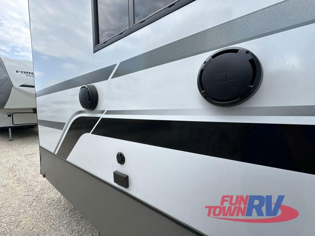 With any Wildwood Heritage Glen fifth wheel by Forest River, the quality construction, attention to detail and design along with a bright and welcoming interior allows you to relax in comfort. You'll love the high-end solid surface countertops included in the Elevated Value Package, along with a JBL sound system, full-length barreled ceilings, and an ultimate interior lighting upgrade. The included Expedition Package features an Accesibelly underbelly panel with 12V tank heaters, nitrogen-filled tires with aluminum rims, and a spacious 30" wide main entry door with a window. The Lippert On-The-Go ladder prep and back-up camera prep let you customize your fifth wheel even more, and the LED awning, front cap, marker and taillights will make it easier than ever to set up camp!