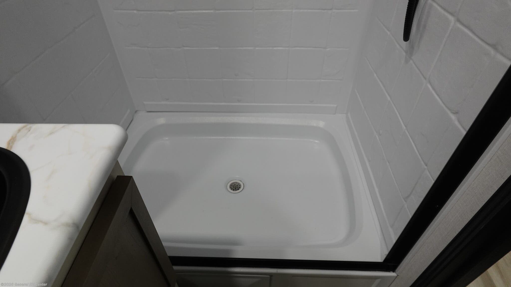 **Wildwood Heritage Glen Hyper-Lyte travel trailer 21RBHL highlights:** * Theater Seating * Queen Bed * Rear Corner Shower * Panoramic Window You and your favorite person can enjoy a spacious kitchen and living area thanks to the slide out, once inside leave your jackets on the coat hooks and you can relax on the theater seating slide out. Outside you will find a Texas-sized pass-through storage to grab your camp chairs and games from. Back inside you can take a restroom break in the full bathroom which also includes a shower and storage. The cook will appreciate having a pantry and a 12V refrigerator a few steps away from the microwave and stovetop. When it is time to relax, the front queen bed will be calling your name! The Wildwood Heritage Glen Hyper-Lyte travel trailer by Forest River offers stability with a wide stance axle system, easy setup with a power tongue jack with an LED docking light, and safe entry with the Step Above aluminum entry steps. The interior includes Temple Cherry cabinetry with matte gold hardware, hidden hinges on the cabinet doors, and a residential single bowl undermount sink. You will also find a back-up camera prep and solar prep, an outdoor shower, and many more exterior conveniences.
