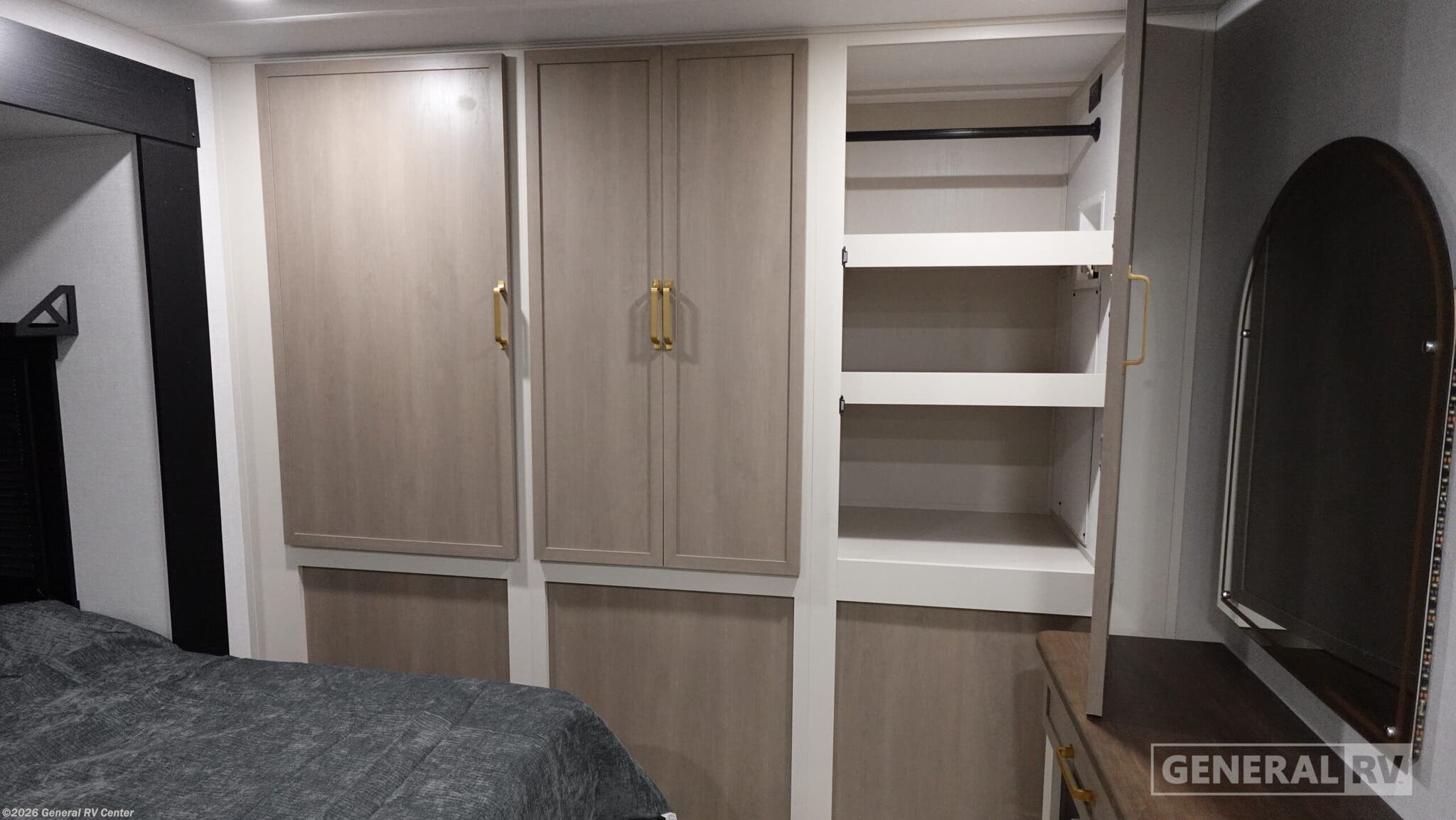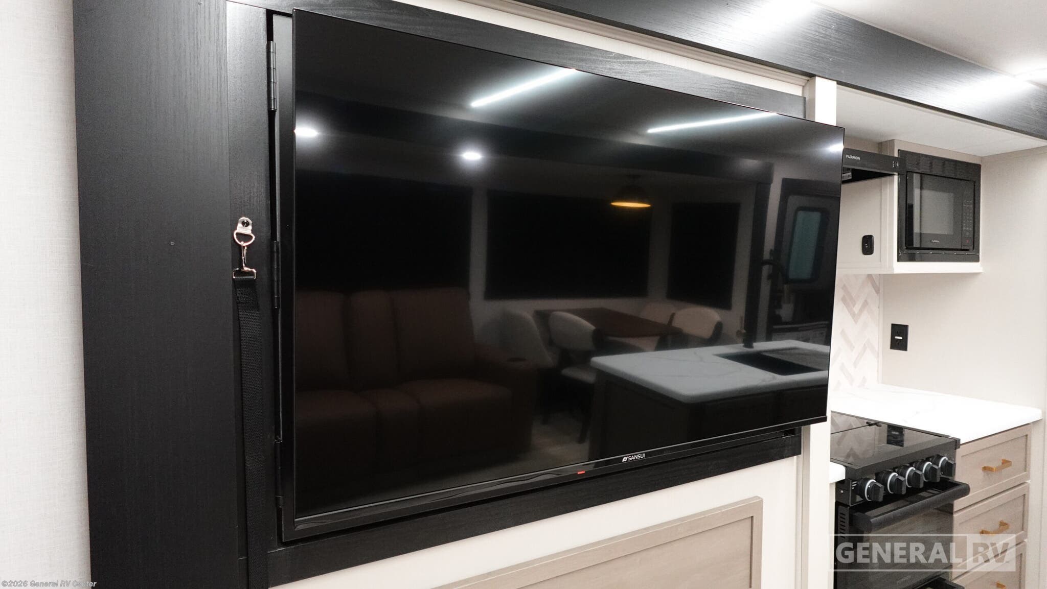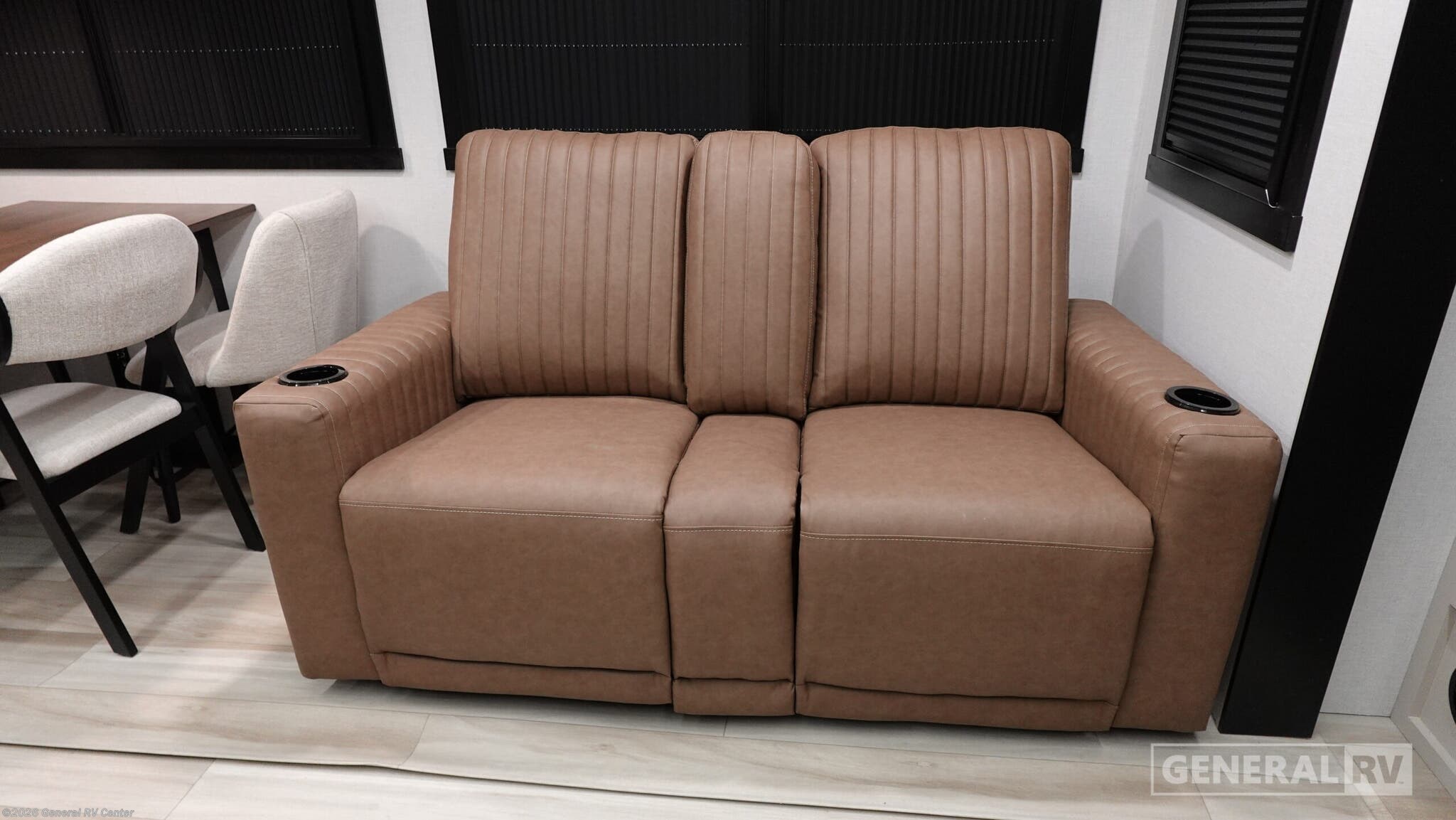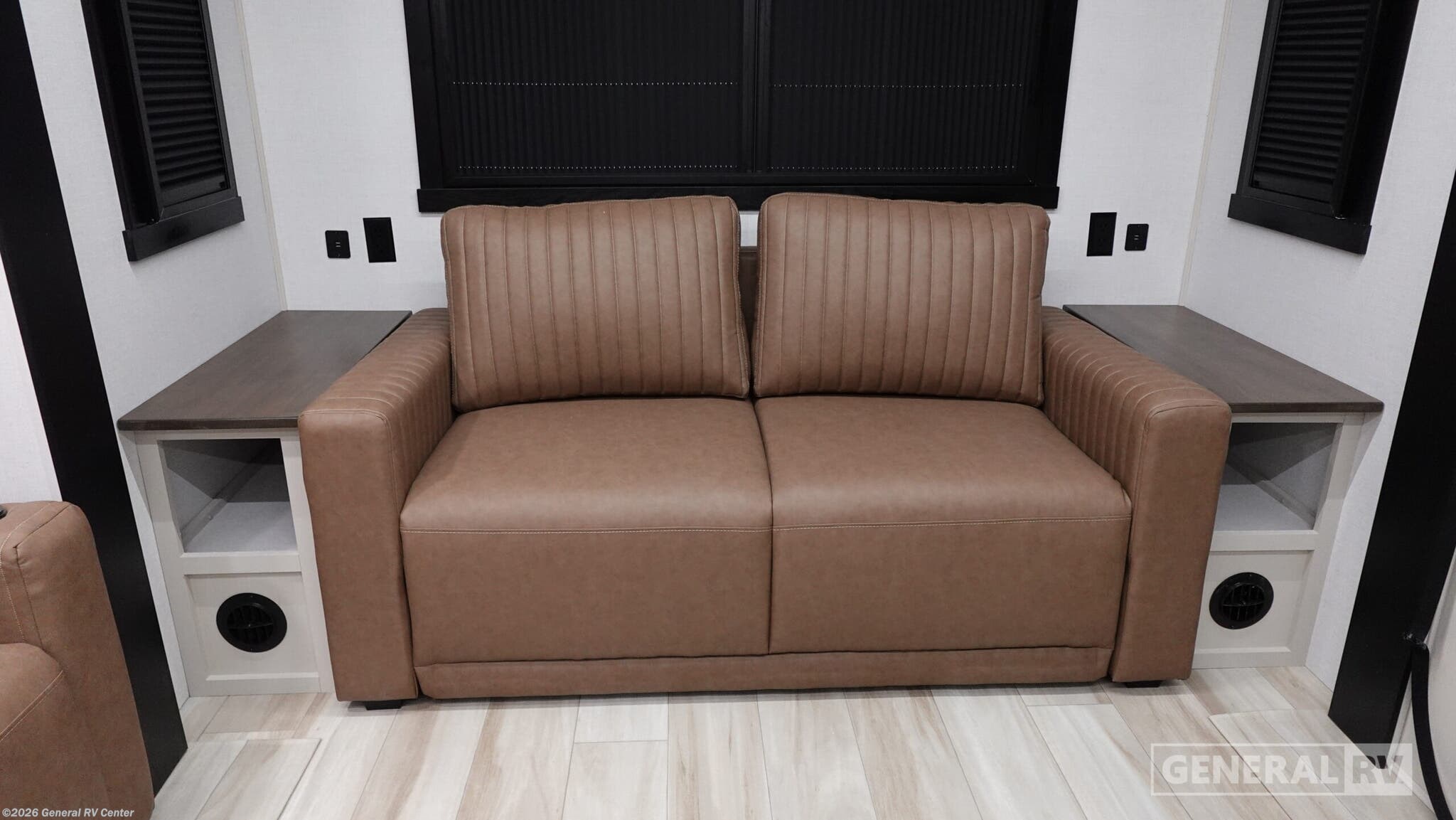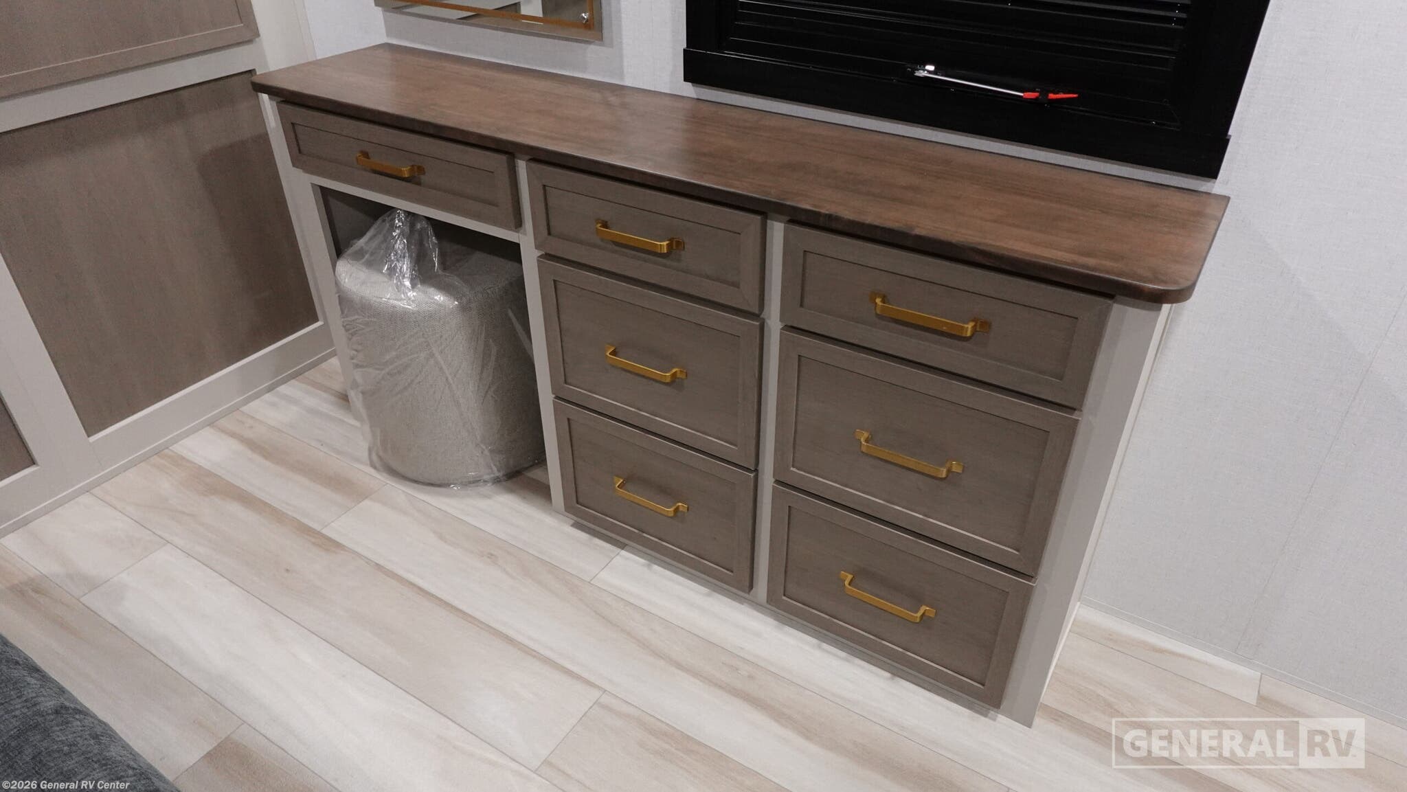 Forest River Wildwood Heritage Glen travel trailer 308RL highlights: Custom King Bed Kitchen Island Panoramic Windows Theatre Seating Exterior Shower Two Awnings You are going to love the spacious private bedroom with a space-saving door, custom king bed slide, a dresser, and a full-width wardrobe with washer and dryer prep. If you ever decide to get out of bed, you can enjoy a relaxing shower in the residential shower with a skylight and a wide-open kitchen and living area with dual opposing slide outs. The cook will love having a kitchen island, a hutch, a large pantry, plus a 12V refrigerator. There is an entertainment center with a 50" TV and fireplace plus plenty of seating on the furniture. And don't forget about the natural lighting and views you will receive from the panoramic windows. With any Wildwood Heritage Glen travel trailer by Forest River, the quality construction, attention to detail and design along with a bright and welcoming interior allows you to relax in comfort. Each model includes a WeatherShield one piece fiberglass roof, nitrogen-filled radial tires, and an enclosed underbelly with 12V tank heaters on all holding tanks for added protection. You will appreciate the on-demand tankless water heater, along with power stabilizer and tongue jacks, and an extra-large pass-thru storage with slam latch baggage doors. Head inside to enjoy matte gold hardware, wood door casings in place of plastic door casings, and an ultimate interior lighting upgrade with 4k puck/strip lights and a stylish LED back-lit bath mirror!