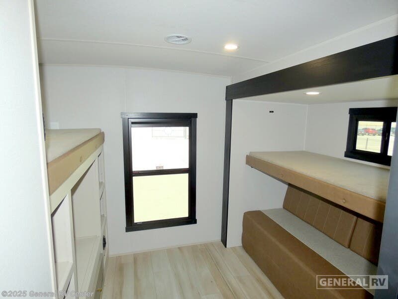Experience the perfect blend of comfort and adventure with the 2025 Forest River Wildwood Heritage Glen 310BHI. This RV is designed to accommodate up to eight guests, making it ideal for family getaways or trips with friends. The spacious interior features a queen bed and two convertible sleeping areas, ensuring everyone has a cozy place to rest. The dedicated bunkhouse is a haven for kids or guests, providing a private retreat within this luxurious home on wheels. The center kitchen is equipped with a full-size electric refrigerator and a three-burner cooktop, complemented by a chef-size walk-in pantry that offers ample storage for all your culinary needs. As you relax in the center living area, you'll appreciate the theater seating that provides a perfect view of the entertainment center, complete with a cozy fireplace. The thoughtfully designed floorplan includes a center bath with a sleek plastic and glass shower, ensuring convenience and style during your travels. With two powered retractable awnings, outdoor living is as inviting as the indoors, enhanced by an exterior kitchen and bar for those perfect al fresco dining experiences. This RV is prepped for a washer and dryer, adding an extra layer of convenience for extended journeys. Discover more about this exceptional model by visiting your nearest General RV Dealership.