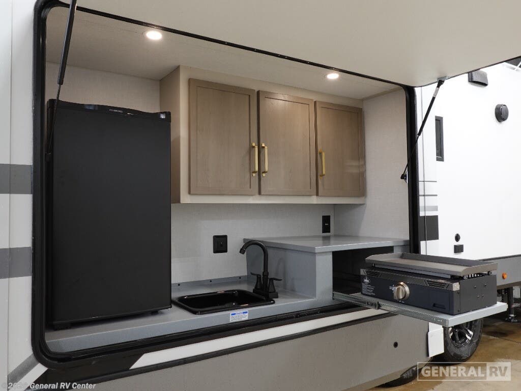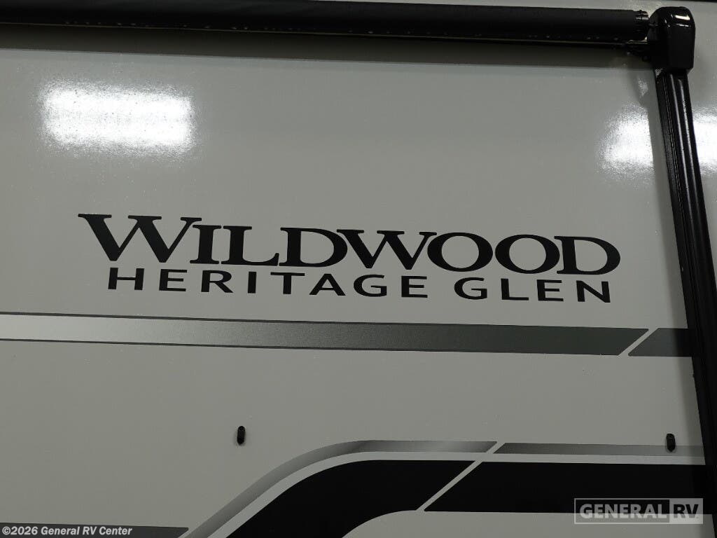 Experience the ultimate in family-friendly adventure with the 2025 Forest River Wildwood Heritage Glen 356QB. This spacious RV is designed with comfort and convenience in mind, offering ample room for up to ten guests. The master suite features a luxurious king bed, while the bunkhouse provides a haven for kids with its two bunks and a convertible bed sofa. The center living area is perfect for gathering, boasting a tri-fold sofa and a family-sized U-dinette, all set against the backdrop of panoramic windows that bring the beauty of the outdoors inside. The well-appointed kitchen is a culinary enthusiast's dream, equipped with a full-size electric refrigerator and a three-burner cooktop. Outside, you'll find an inviting kitchen and bar area, complete with a griddle, perfect for al fresco dining under the 21-foot powered retractable awning. The RV is prepped for a washer and dryer, adding an extra layer of convenience for extended trips. With four slides, this RV expands to offer generous living spaces, ensuring everyone has room to relax and enjoy. For more details and to see this beauty in person, visit your nearest General RV Dealership.