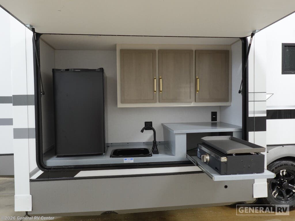 Experience the ultimate in family-friendly adventure with the 2025 Forest River Wildwood Heritage Glen 356QB. This spacious RV is designed with comfort and convenience in mind, offering ample room for up to ten guests. The master suite features a luxurious king bed, while the bunkhouse provides a haven for kids with its two bunks and a convertible bed sofa. The center living area is perfect for gathering, boasting a tri-fold sofa and a family-sized U-dinette, all set against the backdrop of panoramic windows that bring the beauty of the outdoors inside. The well-appointed kitchen is a culinary enthusiast's dream, equipped with a full-size electric refrigerator and a three-burner cooktop. Outside, you'll find an inviting kitchen and bar area, complete with a griddle, perfect for al fresco dining under the 21-foot powered retractable awning. The RV is prepped for a washer and dryer, adding an extra layer of convenience for extended trips. With four slides, this RV expands to offer generous living spaces, ensuring everyone has room to relax and enjoy. For more details and to see this beauty in person, visit your nearest General RV Dealership.