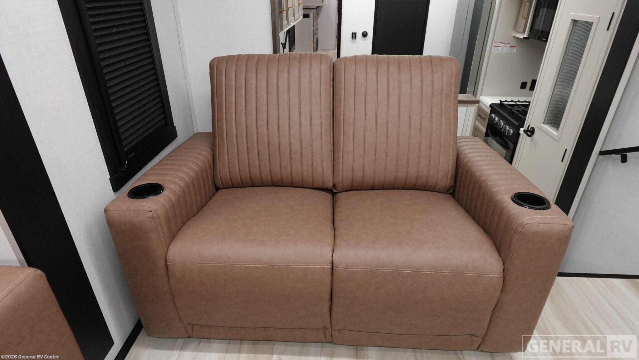 Forest River Wildwood Heritage Glen Elite Luxury fifth wheel 36FL highlights: Full and Half Bath Panoramic Windows Breakfast Bar Fireplace Outdoor Bar and Entertainment Tons of Outside Storage Invite the grandkids or your neighbor friends for your next camping trip in this Wildwood Heritage Glen Elite fifth wheel that features a front entertainment center and living area. Your guests will love the two tri-fold sofas within dual opposing slides to make the room their own. You'll also enjoy theatre seats and a fireplace for an even more at-home feel. The large pantry in the kitchen is very handy as well as the breakfast bar with swivel bar stools. This unit also includes a full and half bath for your convenience, and a king bed with Versa-Tilt on an Elite extra-wide bed slide in the private bedroom. There is abundant storage with multiple pass-through compartments included, so you don't have to leave any of your larger gear behind. Outdoors, you can also enjoy the 20' awning, the strut-assisted steps when entering and exiting, and the Elite outdoor bar and entertainment center which includes a 32" TV, a griddle, and a refrigerator. Each Wildwood Heritage Glen Elite Series fifth wheel by Forest River is constructed with vacuum bonded "Aluma Frame" sidewalls and floor, block foam insulation, and an AccessiBelly underbelly with 12V tank heaters on all holding tanks to help extend your camping season. There is an exterior docking station with hot and cold water, along with power stabilizer jacks and landing gear, and Maxxis radial tires with black accented rims. There is also an in-line water filtration system, an RV Airflow system, and an extra large pass-through storage with Slam Latch baggage doors for hassle-free packing. You will love the high-end solid surface countertops inside, along with gold-accented faucets with stainless steel sinks in all bathrooms, and summer wind colored horizontal plank linoleum flooring that is both stylish and easy to keep clean!