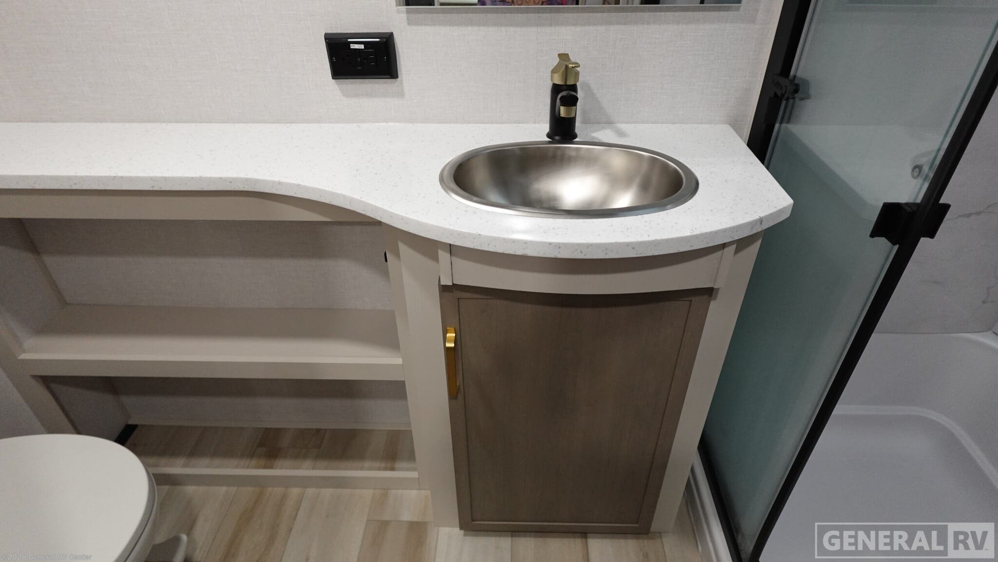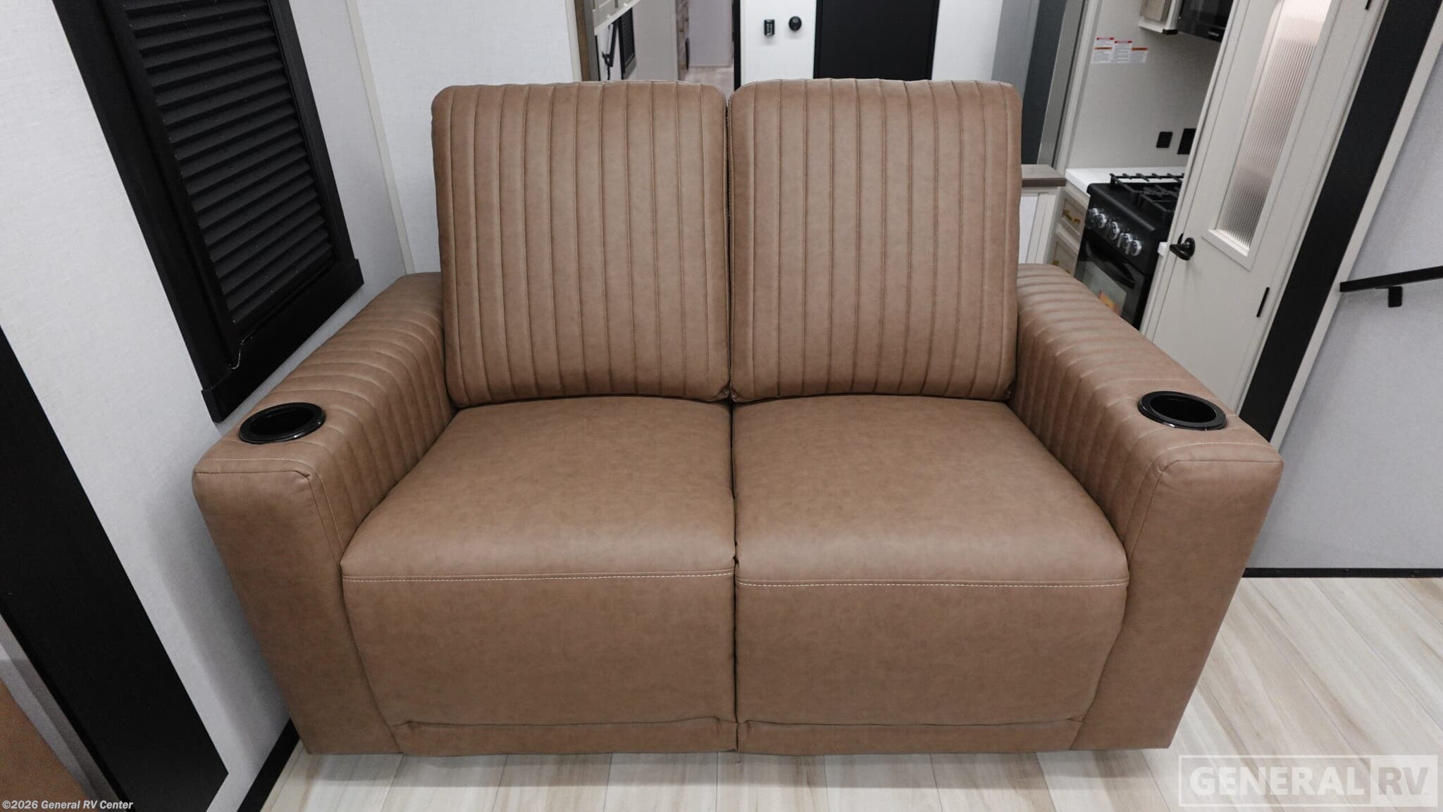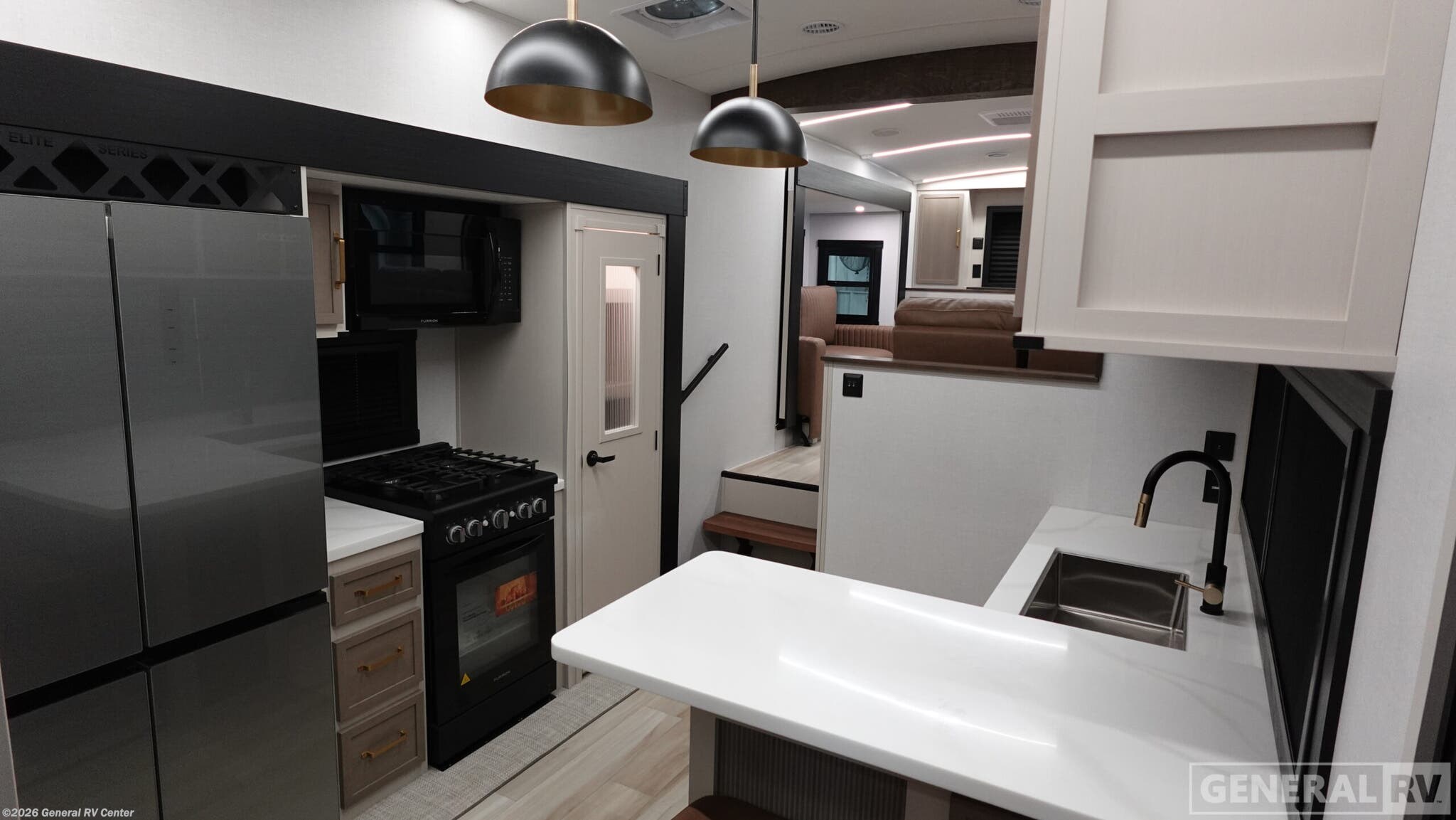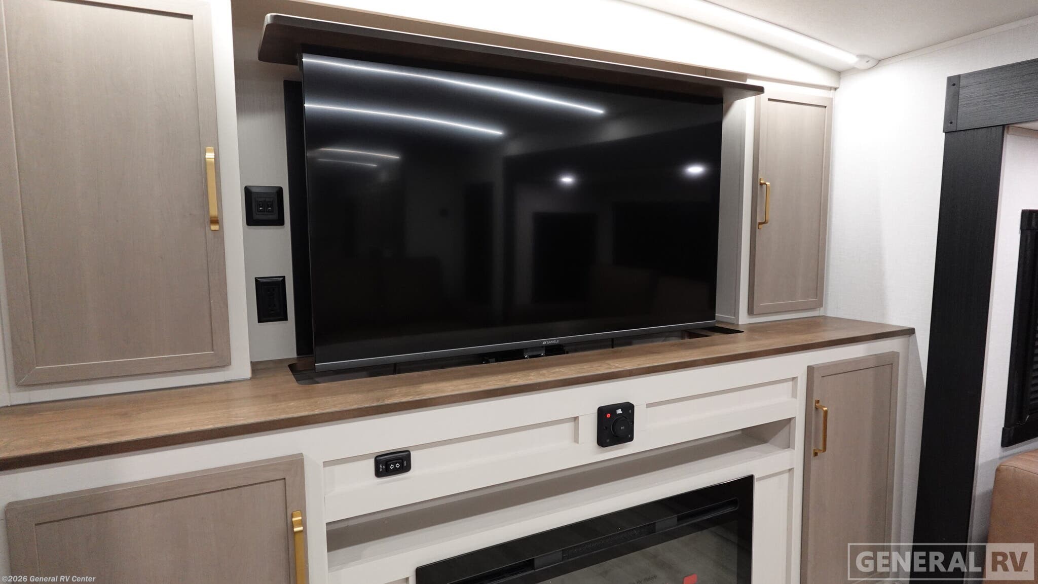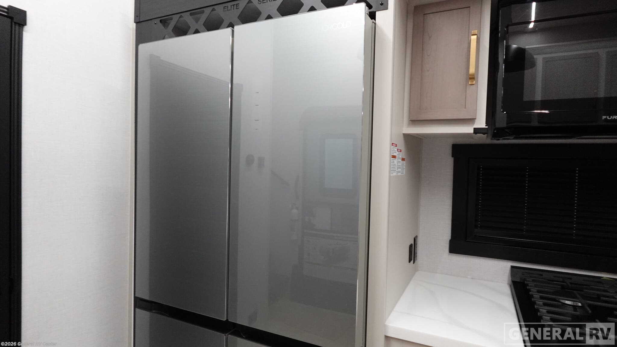 Forest River Wildwood Heritage Glen Elite Luxury fifth wheel 36FL highlights: Full and Half Bath Panoramic Windows Breakfast Bar Fireplace Outdoor Bar and Entertainment Tons of Outside Storage Invite the grandkids or your neighbor friends for your next camping trip in this Wildwood Heritage Glen Elite fifth wheel that features a front entertainment center and living area. Your guests will love the two tri-fold sofas within dual opposing slides to make the room their own. You'll also enjoy theatre seats and a fireplace for an even more at-home feel. The large pantry in the kitchen is very handy as well as the breakfast bar with swivel bar stools. This unit also includes a full and half bath for your convenience, and a king bed with Versa-Tilt on an Elite extra-wide bed slide in the private bedroom. There is abundant storage with multiple pass-through compartments included, so you don't have to leave any of your larger gear behind. Outdoors, you can also enjoy the 20' awning, the strut-assisted steps when entering and exiting, and the Elite outdoor bar and entertainment center which includes a 32" TV, a griddle, and a refrigerator. Each Wildwood Heritage Glen Elite Series fifth wheel by Forest River is constructed with vacuum bonded "Aluma Frame" sidewalls and floor, block foam insulation, and an AccessiBelly underbelly with 12V tank heaters on all holding tanks to help extend your camping season. There is an exterior docking station with hot and cold water, along with power stabilizer jacks and landing gear, and Maxxis radial tires with black accented rims. There is also an in-line water filtration system, an RV Airflow system, and an extra large pass-through storage with Slam Latch baggage doors for hassle-free packing. You will love the high-end solid surface countertops inside, along with gold-accented faucets with stainless steel sinks in all bathrooms, and summer wind colored horizontal plank linoleum flooring that is both stylish and easy to keep clean!