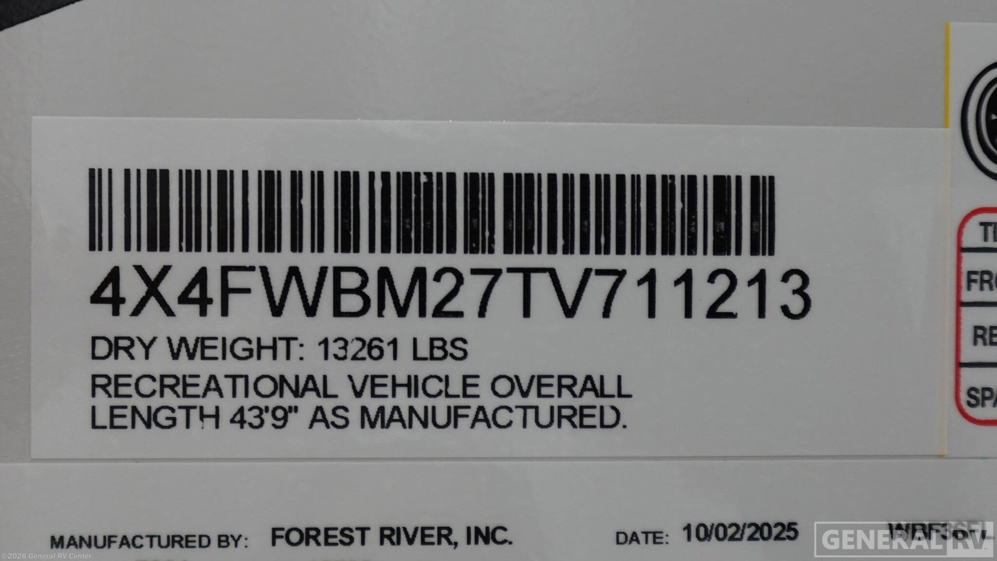 - VIN4X4FWBM27TV711213