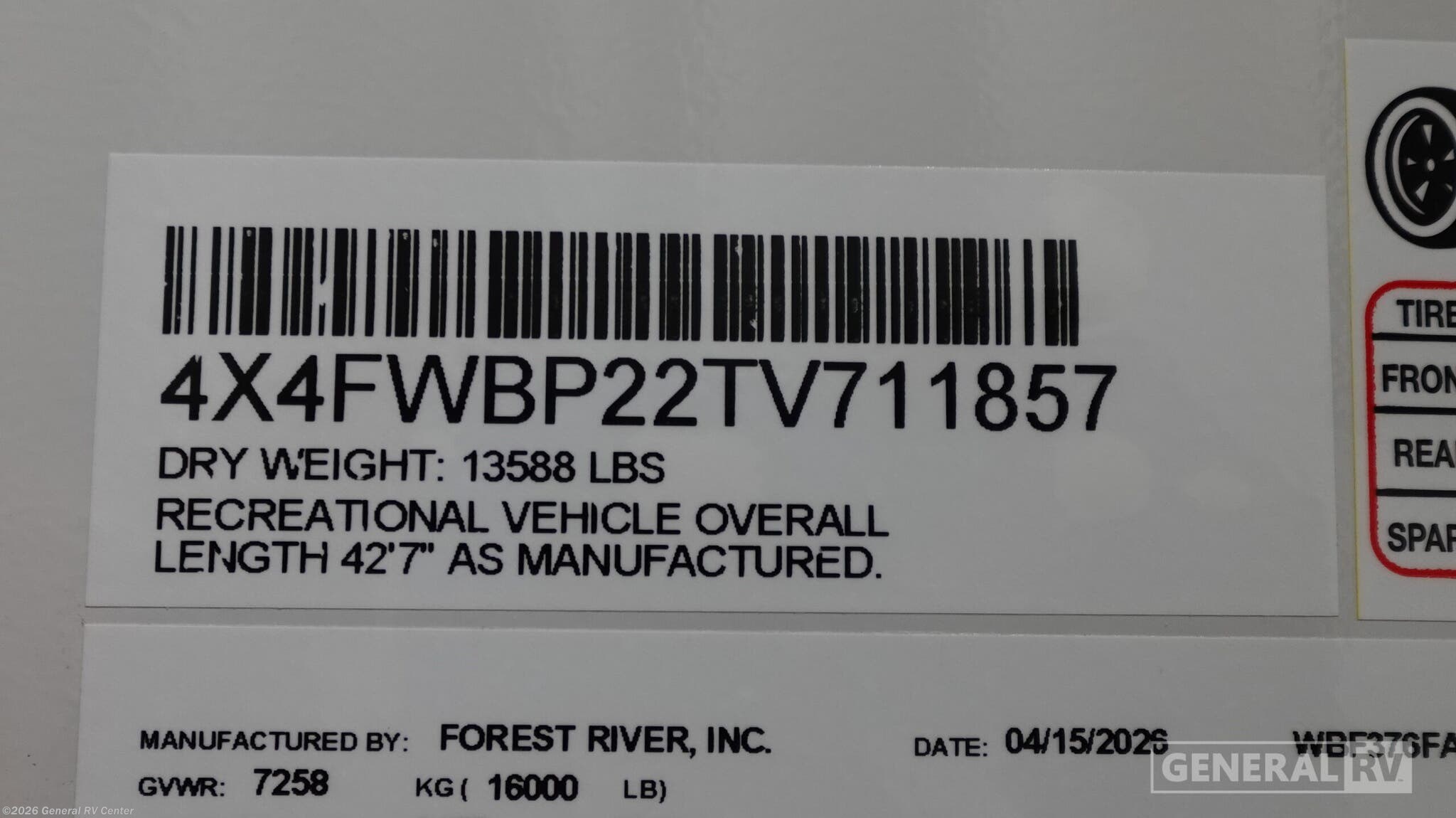 - VIN4X4FWBP22TV711857