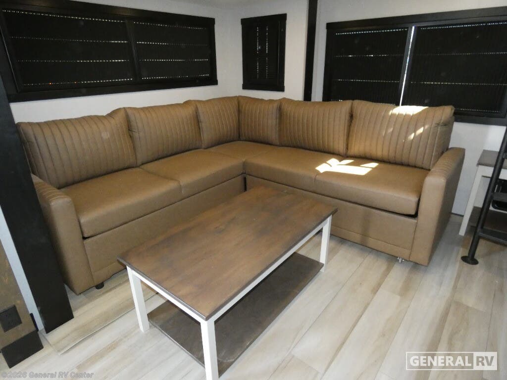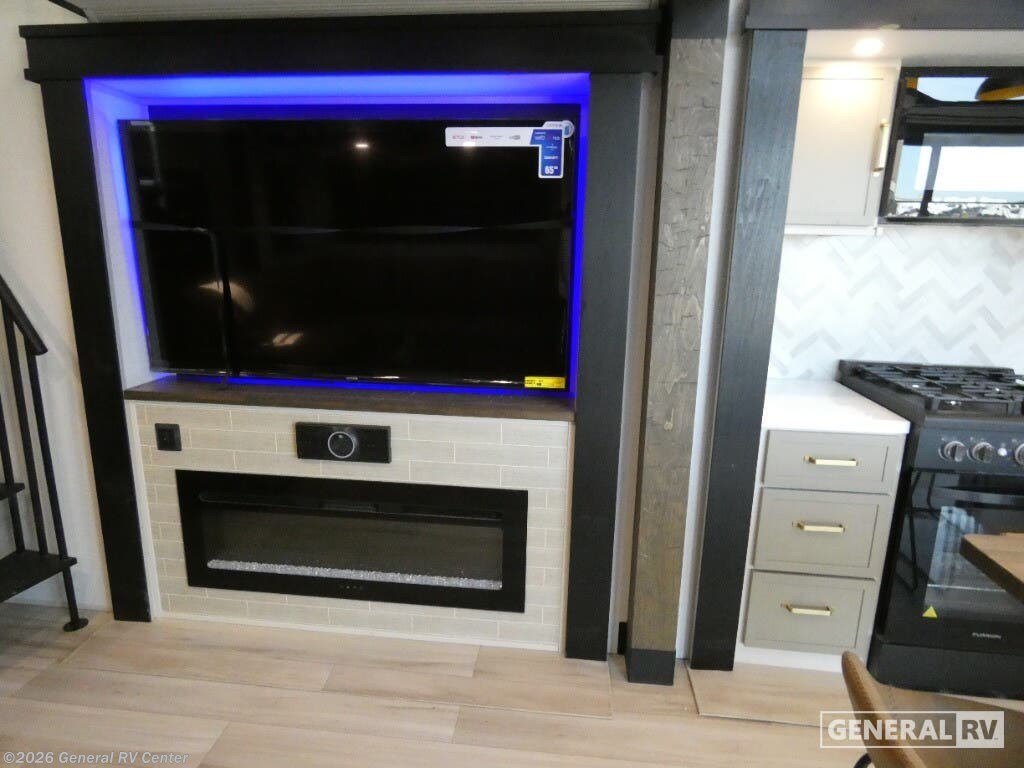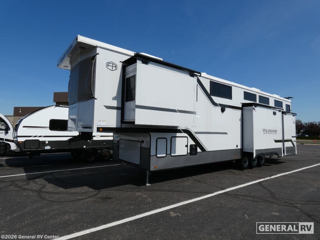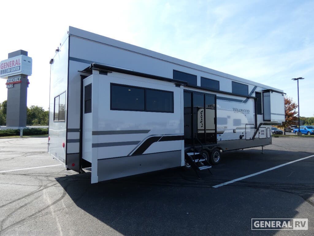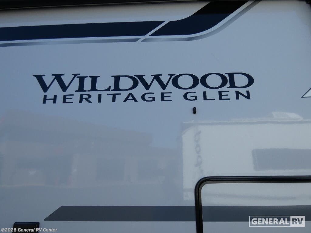Experience the ultimate in luxury travel with the 2026 Forest River Wildwood Heritage Glen ROOST43. This stunning RV is designed to redefine comfort on the road, featuring an expansive layout that comfortably sleeps up to eight. With two king-sized beds and a convertible option, plus a dedicated bunkhouse, you'll have plenty of space for family and friends. The rear living area is a haven of relaxation, complete with a cozy sectional sofa and an entertainment center with a fireplace, perfect for unwinding after a day of adventure. The heart of this RV is its beautifully appointed center kitchen, equipped with a full-size electric refrigerator and a four-burner cooktop, making meal prep a breeze. The thoughtful design extends to the bathroom, featuring a porcelain toilet and a shower with a stylish plastic and glass enclosure. Prepped for a washer and dryer, this RV ensures you have all the conveniences of home while exploring the great outdoors. The 20-foot powered retractable awning provides a perfect outdoor space for relaxation or entertaining, and with ample storage throughout, you'll never have to leave behind your essentials. Ready to embark on your next journey? Visit your nearest General RV dealership to explore the Wildwood Heritage Glen ROOST43 and see how it can elevate your travel experiences.