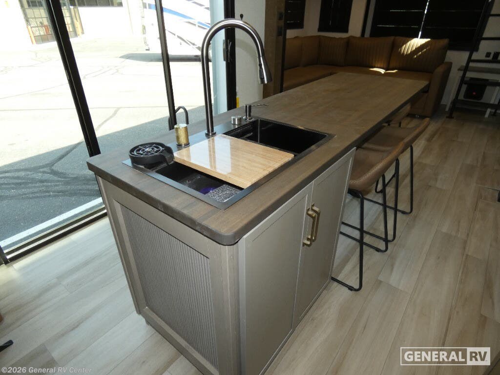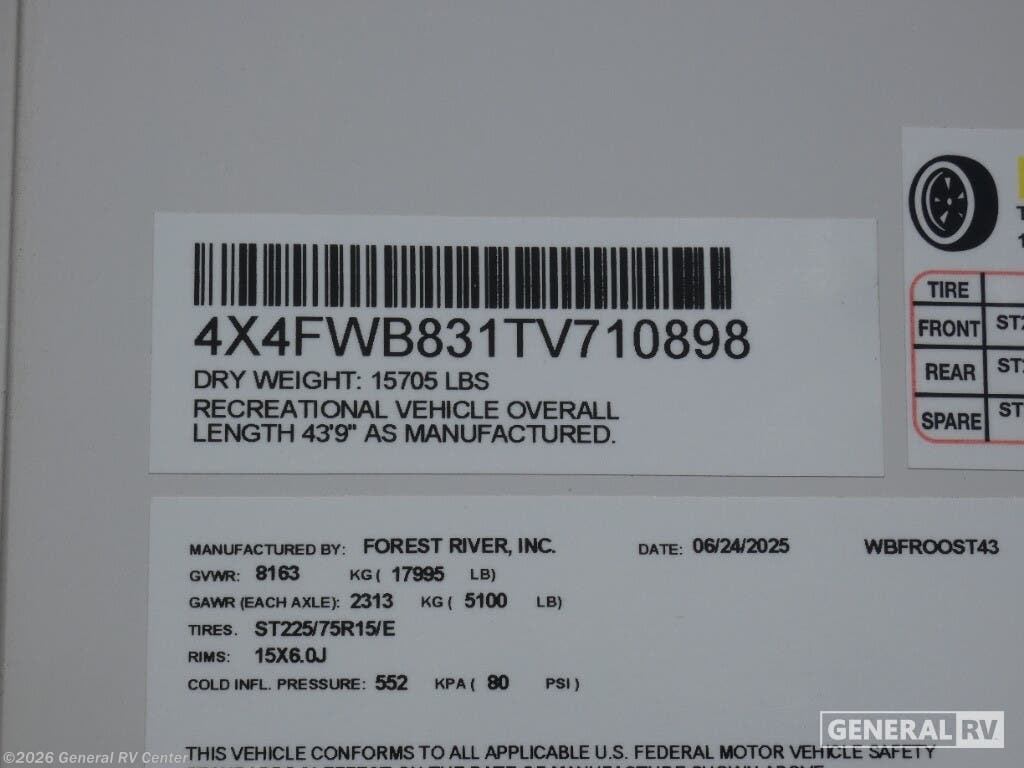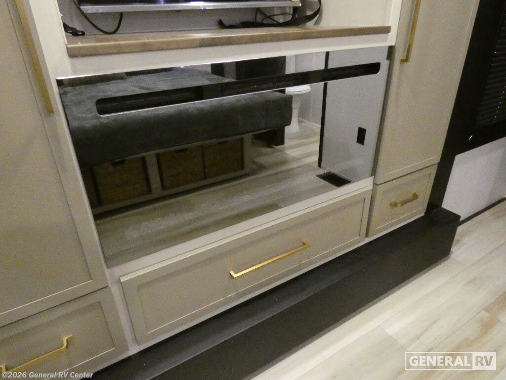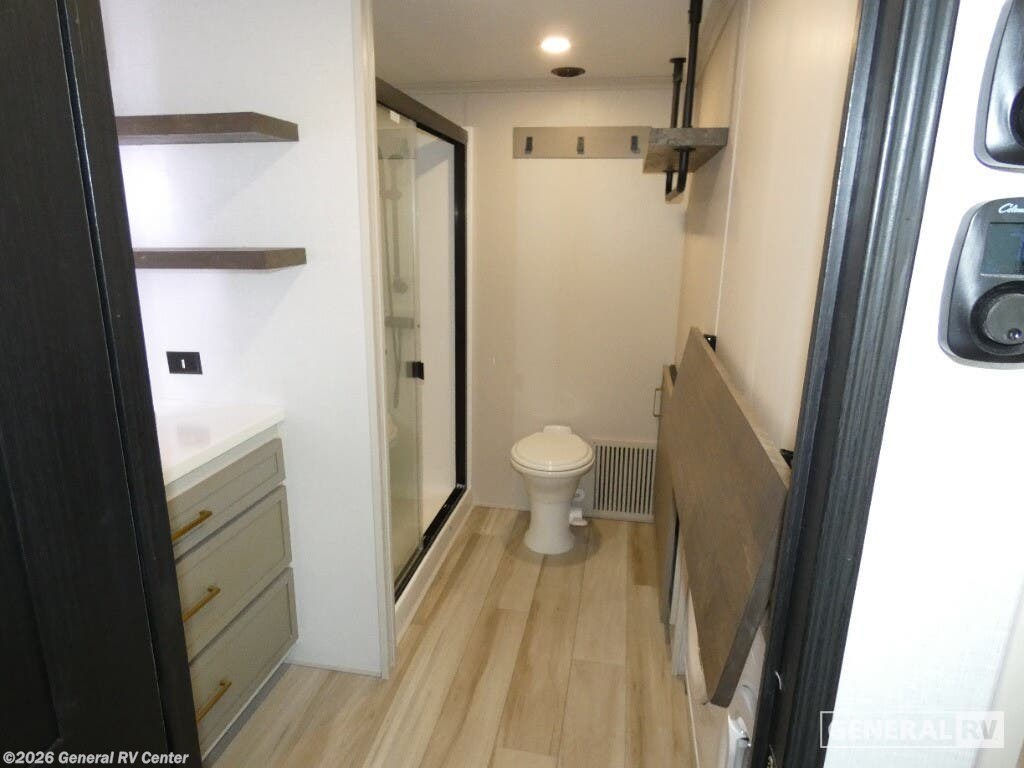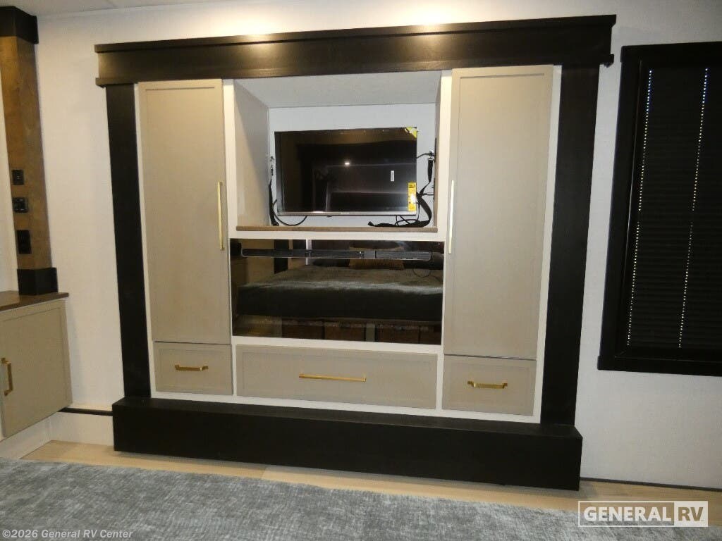 Experience the ultimate in luxury travel with the 2026 Forest River Wildwood Heritage Glen ROOST43. This stunning RV is designed to redefine comfort on the road, featuring an expansive layout that comfortably sleeps up to eight. With two king-sized beds and a convertible option, plus a dedicated bunkhouse, you'll have plenty of space for family and friends. The rear living area is a haven of relaxation, complete with a cozy sectional sofa and an entertainment center with a fireplace, perfect for unwinding after a day of adventure. The heart of this RV is its beautifully appointed center kitchen, equipped with a full-size electric refrigerator and a four-burner cooktop, making meal prep a breeze. The thoughtful design extends to the bathroom, featuring a porcelain toilet and a shower with a stylish plastic and glass enclosure. Prepped for a washer and dryer, this RV ensures you have all the conveniences of home while exploring the great outdoors. The 20-foot powered retractable awning provides a perfect outdoor space for relaxation or entertaining, and with ample storage throughout, you'll never have to leave behind your essentials. Ready to embark on your next journey? Visit your nearest General RV dealership to explore the Wildwood Heritage Glen ROOST43 and see how it can elevate your travel experiences.
