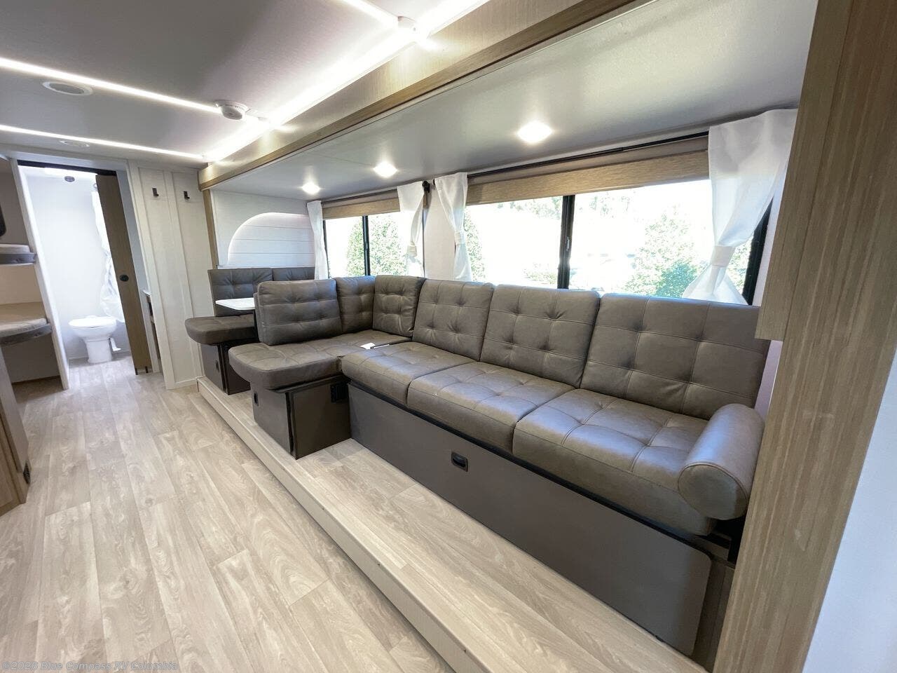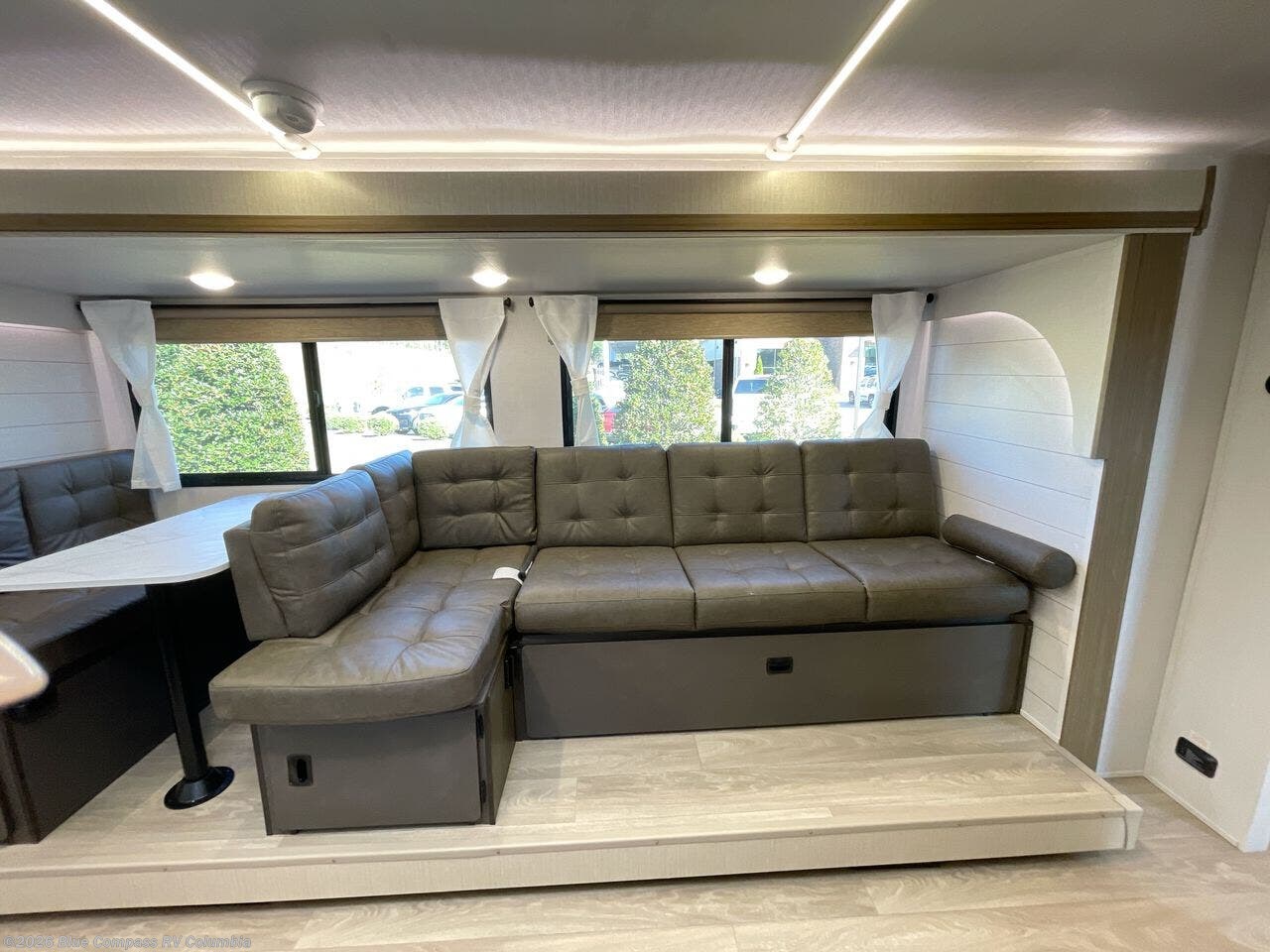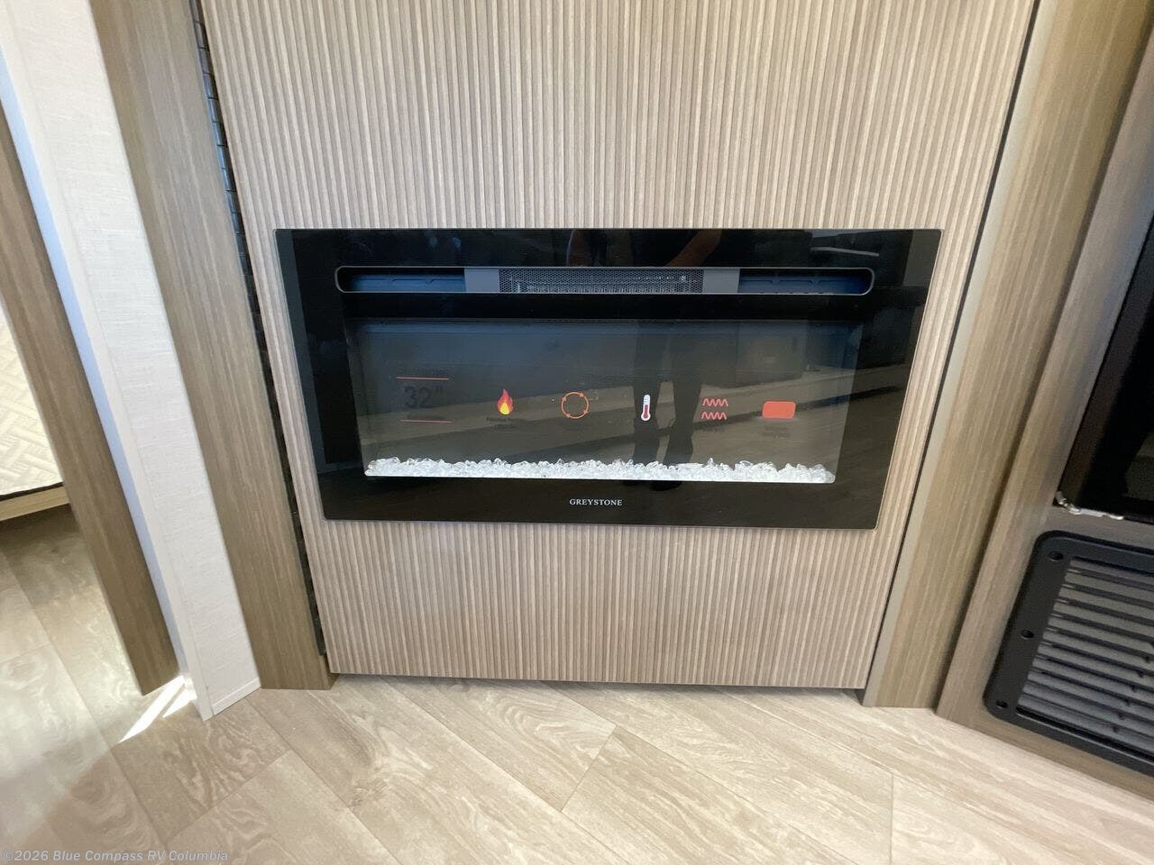 You're sure to make camping memories in this spacious travel trailer! You can easily sleep eight people each night thanks to the double-size bunks, the custom king bed with Versa Tilt in the front bedroom plus the Versa-Lounge within the large slide out! The full kitchen will let you make meals each day, and you'll appreciate the hidden pantry with shelves behind the fireplace. There is also a booth dinette where you can dine together or play a game of cards after dinner is cleaned up, or you may just find yourselves outdoors under the 16' awning. And don't overlook the full bath, complete with a tub/shower that will make bath time easier if you have little ones.