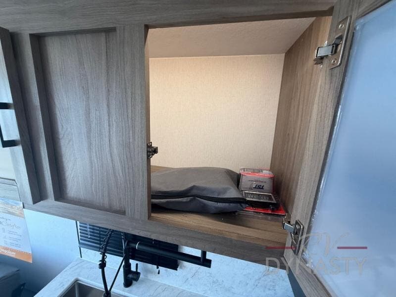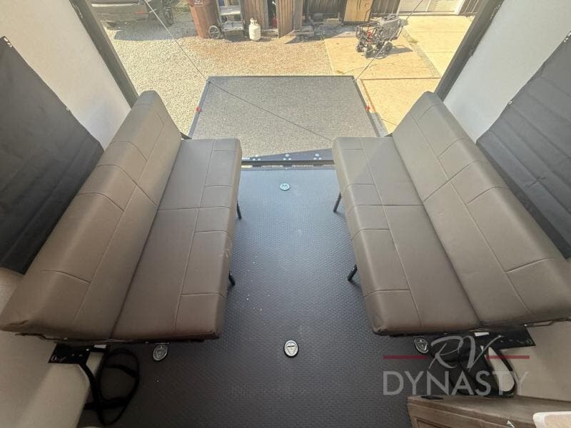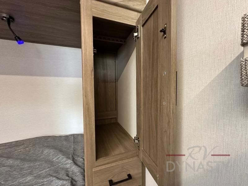 Get ready for a weekend of trail riding with buddies in this toy hauler! You'll have a total of 15' 9" of garage space to load up your dirt bikes or kayaks, and there are two roll-over sofas with a dinette table so you can eat lunch before heading out. The outdoor spray port will allow you to wash off the mud from your tires when you return, and you can choose the optional 30 gallon fuel station so you'll be ready to go the next day. This model also includes a dual entry bath that will create a front master bedroom you are sure to love. Here, you'll sleep soundly on the king bed, and you can keep your clothes wrinkle-free in the dual shirt closets!