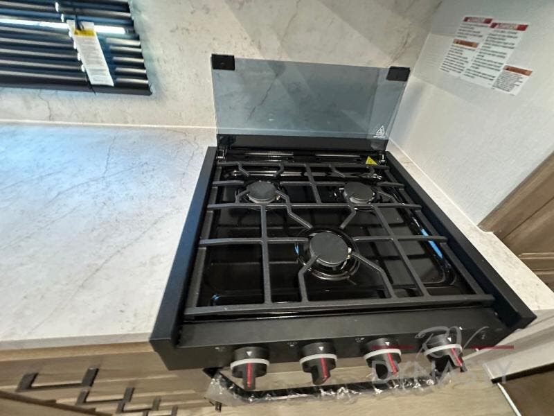 This dual entry toy hauler is perfect for your family of seven or group of friends! There is a queen bed electric lift above the dual roll-over sofas, plus a flip-up sofa and a king bed for plenty of sleeping space. You will appreciate the ramp door and a 30 gallon fuel station to keep your toys ready to go when you are. The flip-up slide floor will provide more space for the chef of the group to prepare lunch on the three burner cooktop, and there are dual Euro recliners to relax in style. This high profile model has additional optional equipment that can be added such as, an optional 5.5K Onan generator, an optional 10 cu. ft. refrigerator, and an optional ramp door party patio kit for more outdoor fun!