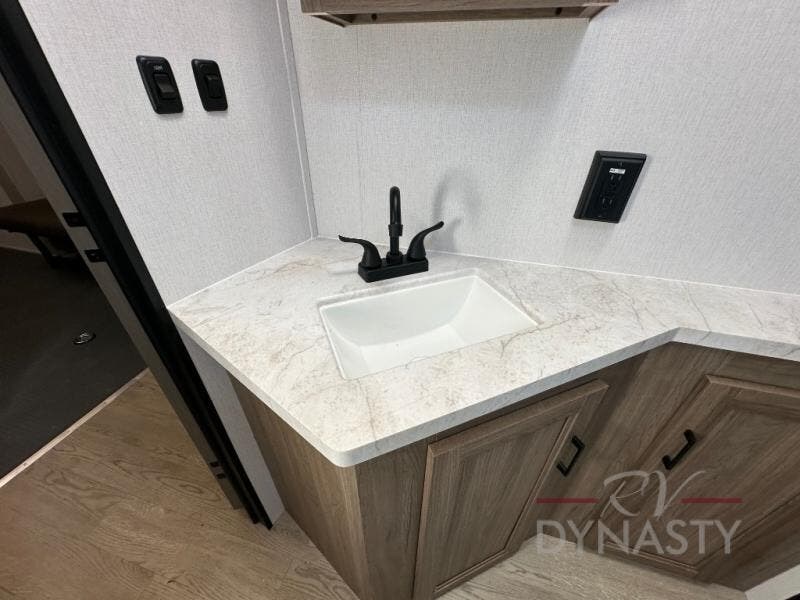 Each Work and Play toy hauler by Forest River is built tough with a mega rail powder coated chassis, a one-piece Tufflex PVC roof membrane, and a fiberglass front cap with rock guard. You will find many convenient features, such as a Winegard Air 360 and TV antenna, an outside spray port, and slam latch door catches to store your riding gear. These toy haulers also include hidden hinge cabinets and doors, USB charging ports in multiple locations, a tankless water heater, plus many more amenities!