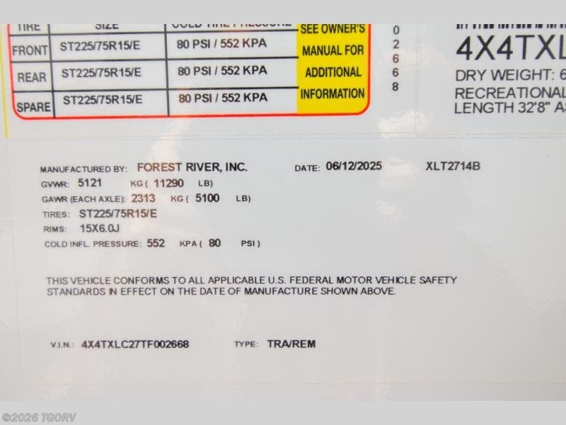 Request More Info on this 2026 Forest River XLR Boost 2714B Offered for sale by TGORV