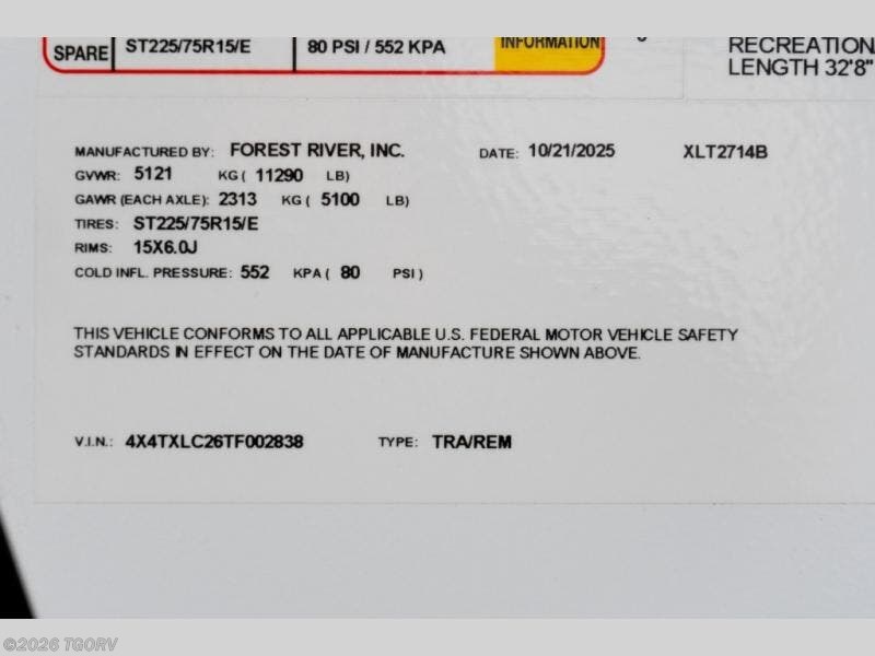 Request More Info on this 2026 Forest River XLR Boost 2714B Offered for sale by TGORV