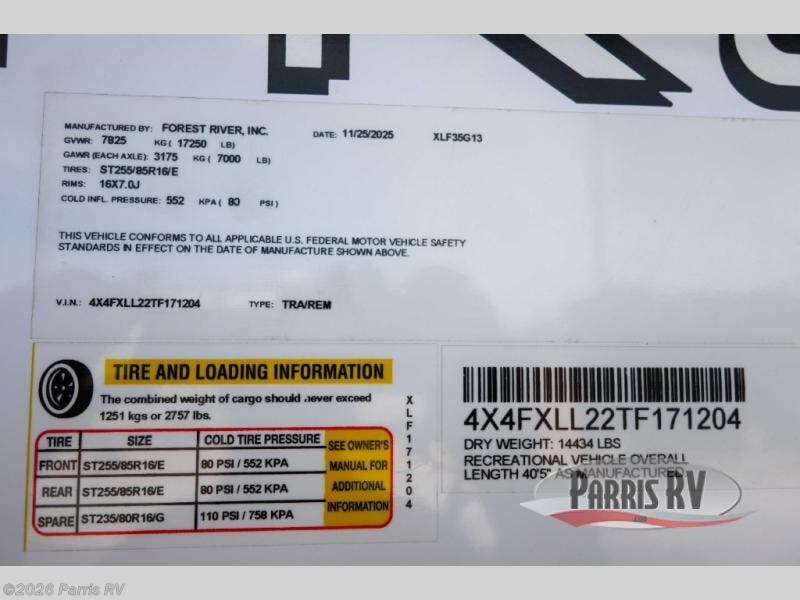 Request More Info on this 2026 Forest River XLR Nitro 35G13 Offered for sale by Parris RV