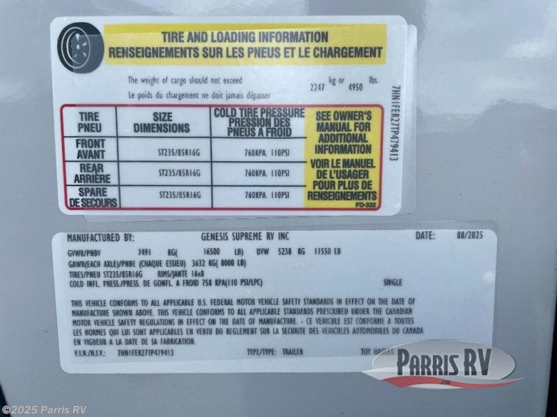 Request More Info on this 2026 Genesis Supreme Rage'n 3016RIKS Offered for sale by Parris RV