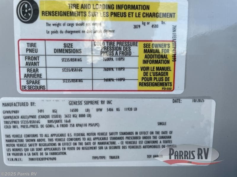 Request More Info on this 2026 Genesis Supreme Rage'n R335CKG Offered for sale by Parris RV