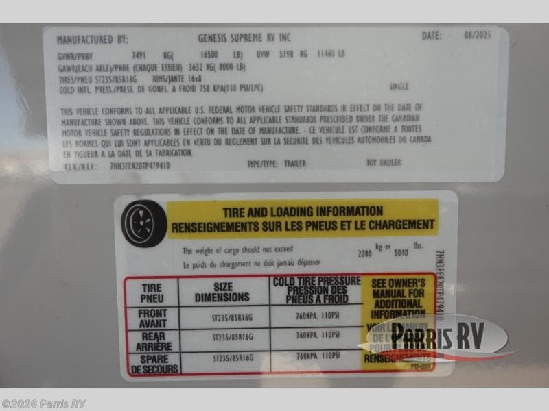 Request More Info on this 2026 Genesis Supreme Vortex 3016IKS Offered for sale by Parris RV
