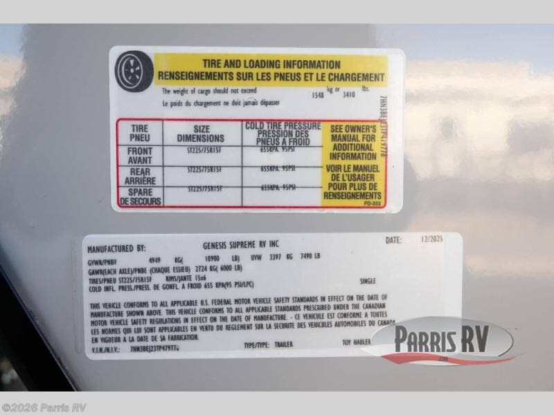Request More Info on this 2026 Genesis Supreme Vortex V2515FSXL Offered for sale by Parris RV