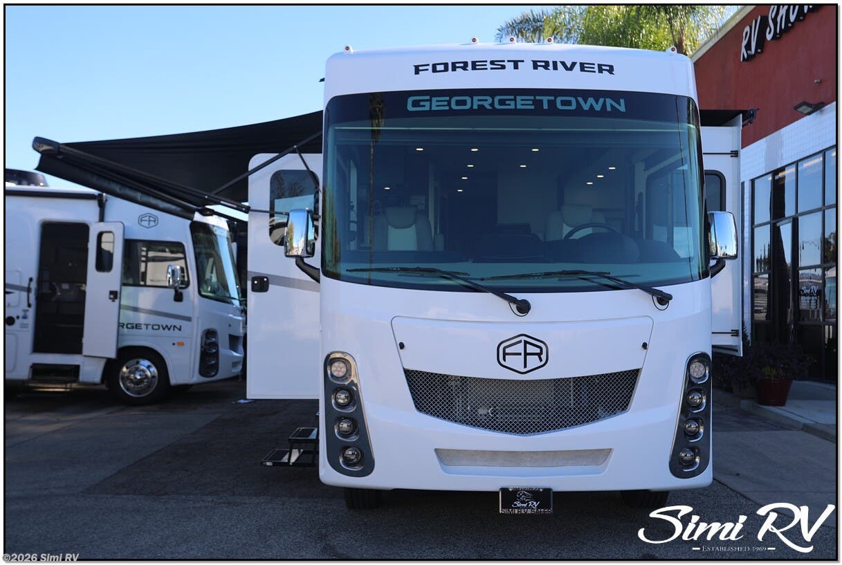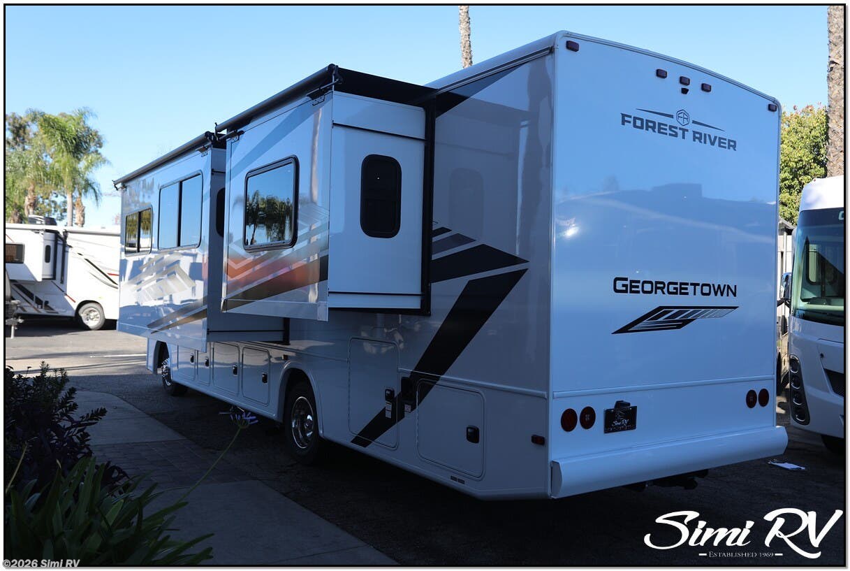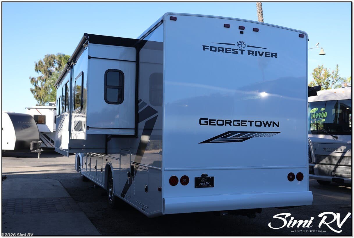 Experience the perfect combination of performance, luxury, and efficiency with the Georgetown 3 Series GT3 Class A Motorhome. Designed for RVers and adventurers alike, the GT3 offers generous storage, innovative features, and the high-end touches you expect from a gas-powered Class A motorhome.Exceptional Features for Every Journey:Choose from two thoughtfully designed floorplans, each paired with two elegant dcor options, allowing you to tailor your motorhome to your unique style. Key standard features include: Automatic hydraulic leveling jacks for effortless setup; Color side and rear cameras for enhanced visibility and safety; LED TVs in the bedroom and main living area for entertainment on the road; Custom countertops and a premium Sony dash entertainment system with AM/FM, Bluetooth, and USB connectivity.Comfortable, Functional Living Spaces:The Georgetown 3 Series GT3 ensures a comfortable living experience with spacious galleys equipped with dream dinettes, perfect for gathering with family and friends. Every inch of the design prioritizes efficiency and comfort, making your time on the road truly enjoyable.Why Choose the Georgetown 3 Series?Whether you're embarking on a cross-country adventure or weekend getaway, the Georgetown 3 Series GT3 is built to deliver a reliable and luxurious travel experience. Visit your local dealer today and discover how the GT3 can elevate your RV lifestyle.Georgetown 3 Series: Engineered for the road, designed for adventure.