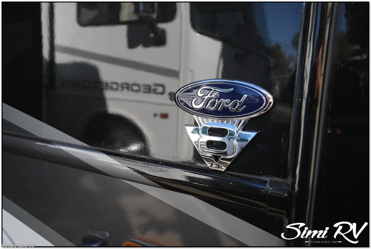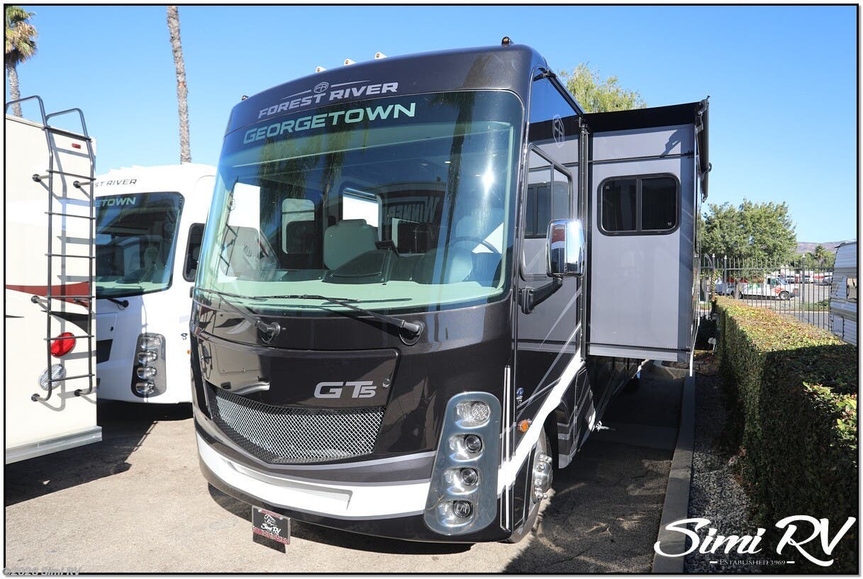 Georgetown 5 Series GT5 Gas Class A MotorhomeThe 5 Series Georgetown offers more of the luxuries you would expect in a gas Class A, including custom solid surface kitchen countertops and Precision Circuits Multiplex w/ wireless technology.Standard appointments include a chrome package, automatic hydraulic leveling jacks, color side and rear cameras, bedroom and main living LED TVs and AM/FM/Bluetooth and USB. Spacious galleys include dream or super size dinettes that seat friends and family in total comfort.Visit us today and put yourself in a 5 Series Georgetown, where spacious design and true luxury come together. FORD V8, 22.5" ALUMINUM WHEELS, 2 SLIDES, EXT. TV, FULL BODY PAINT, HUGE FRIDGE, OVERHEAD BUNK, KING BED, 4 SEAT THEATER SEATS