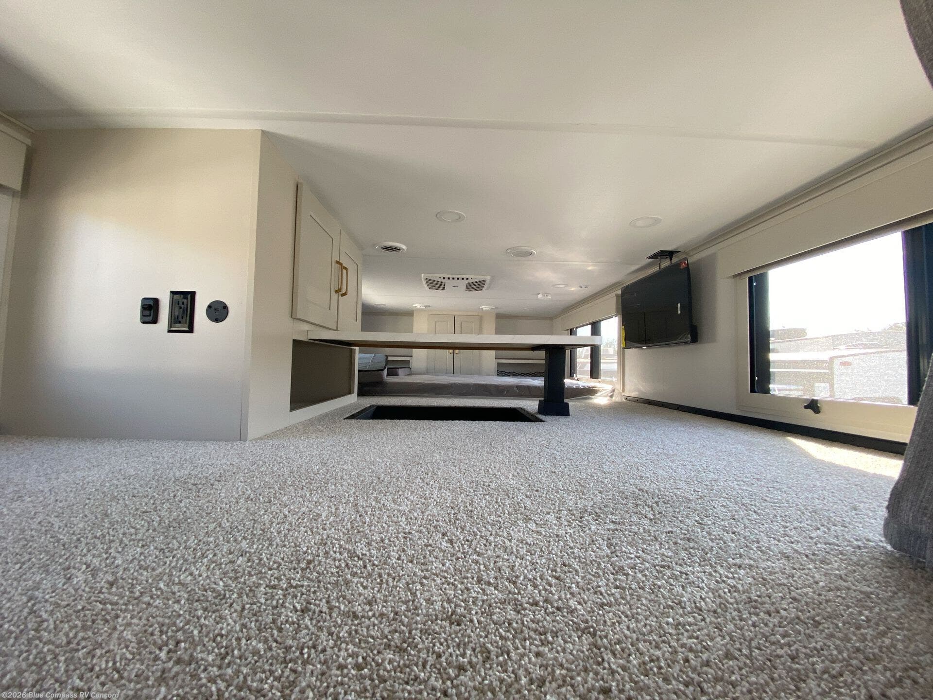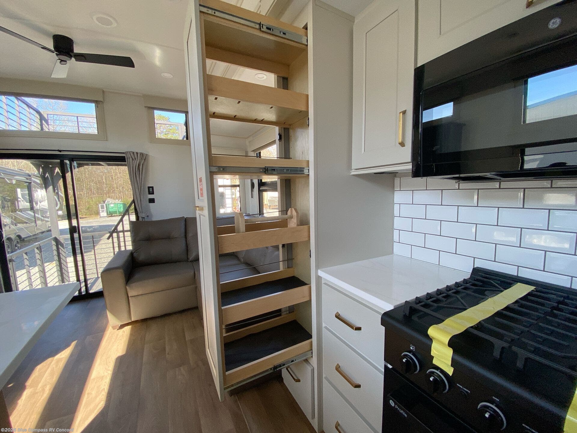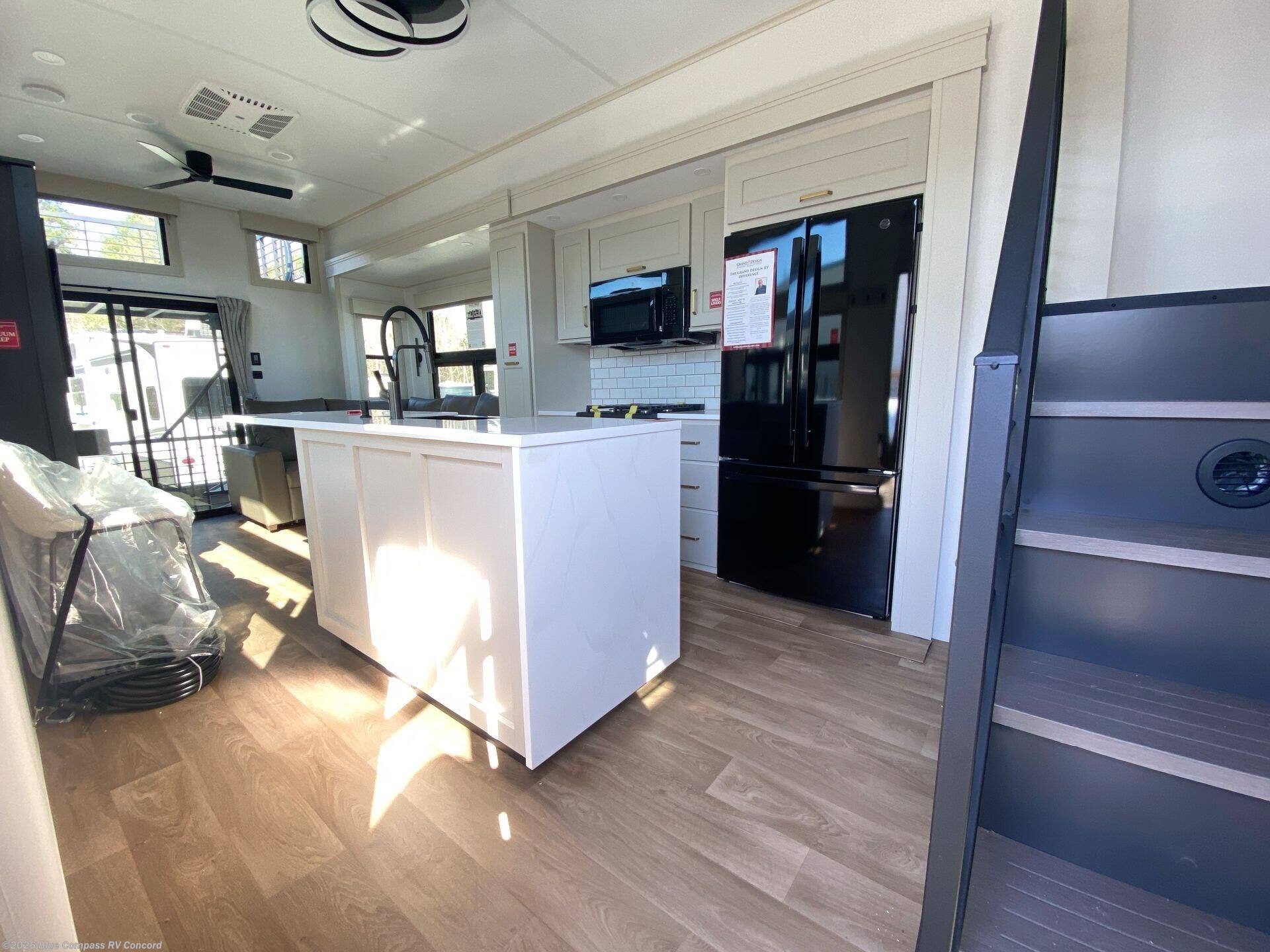 You'll fall in love with this spacious destination trailer that can sleep six each night! With dual entry doors, you can enter in through the rear deck that includes a lower level for gathering, and an observation deck to take in the stars! The other entry door leads into the combined kitchen and living room that includes a spacious kitchen island with a dishwasher, a pull-out pantry, an 18.6 cu. ft. refrigerator and an L-shaped sofa with a trundle bed. There is also an entertainment wall with smart storage and sliding doors that go out to the rear deck. A set of stairs leads to the loft with a queen-size sleeping pad, ample storage space, plus a table with a foot nook so you can put the table away when not in use. Back downstairs, a full bath will let you freshen up each day and a front private bedroom with a king bed slide is sure to bring comfort. There is also storage space for your things, a telescoping TV, plus washer and dryer prep if you plan to add these appliances!