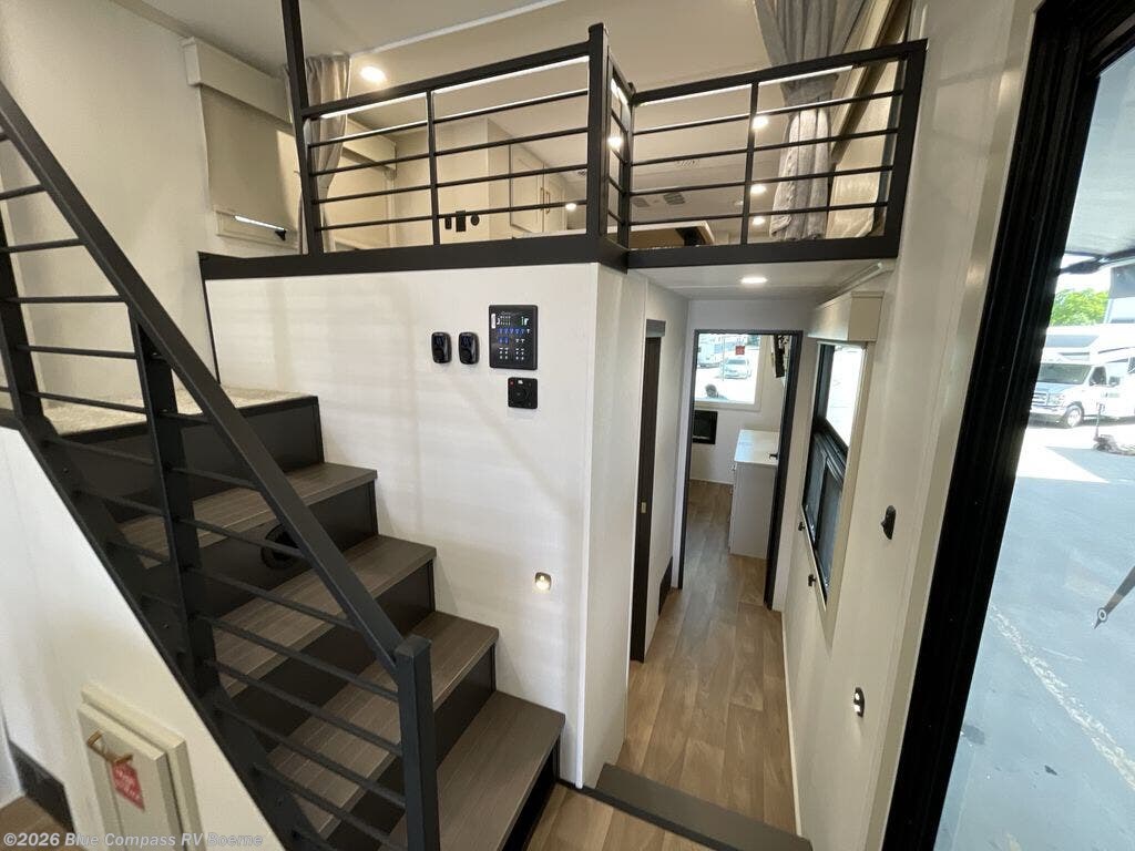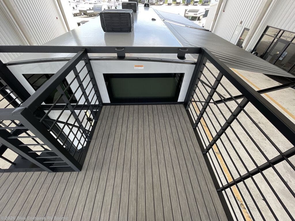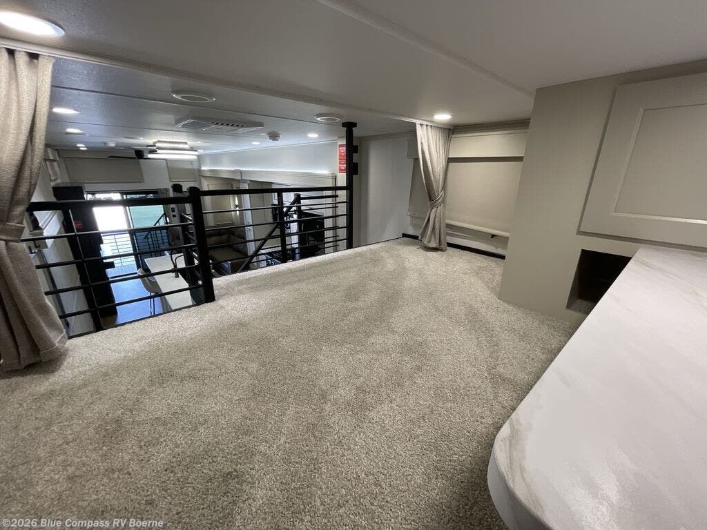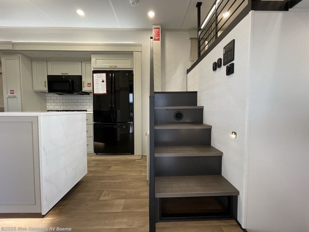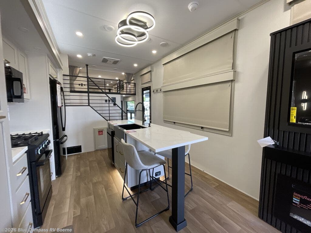 You'll fall in love with this spacious destination trailer that can sleep six each night! With dual entry doors, you can enter in through the rear deck that includes a lower level for gathering, and an observation deck to take in the stars! The other entry door leads into the combined kitchen and living room that includes a spacious kitchen island with a dishwasher, a pull-out pantry, an 18.6 cu. ft. refrigerator and an L-shaped sofa with a trundle bed. There is also an entertainment wall with smart storage and sliding doors that go out to the rear deck. A set of stairs leads to the loft with a queen-size sleeping pad, ample storage space, plus a table with a foot nook so you can put the table away when not in use. Back downstairs, a full bath will let you freshen up each day and a front private bedroom with a king bed slide is sure to bring comfort. There is also storage space for your things, a telescoping TV, plus washer and dryer prep if you plan to add these appliances!