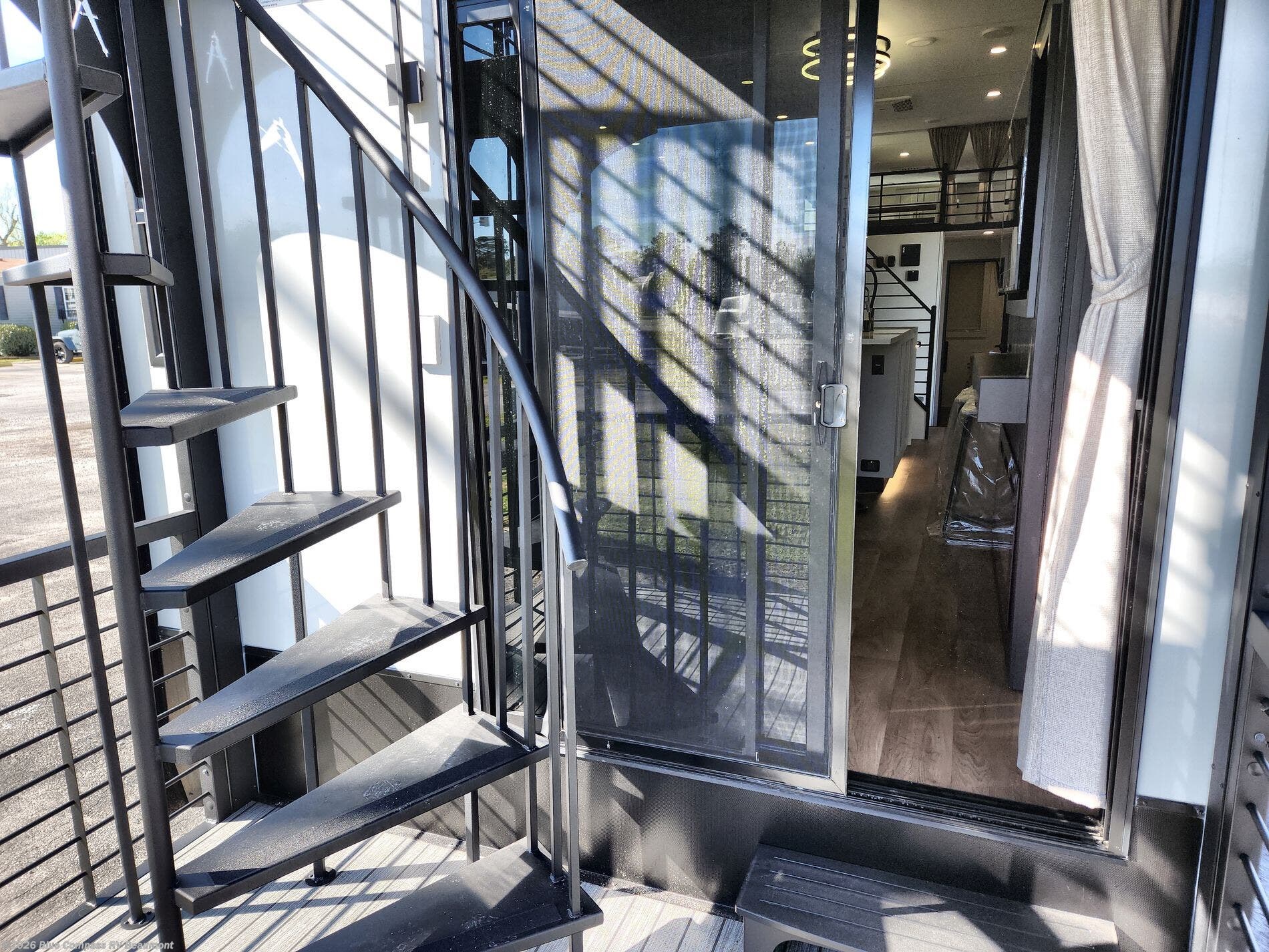 You'll fall in love with this spacious destination trailer that can sleep six each night! With dual entry doors, you can enter in through the rear deck that includes a lower level for gathering, and an observation deck to take in the stars! The other entry door leads into the combined kitchen and living room that includes a spacious kitchen island with a dishwasher, a pull-out pantry, an 18.6 cu. ft. refrigerator and an L-shaped sofa with a trundle bed. There is also an entertainment wall with smart storage and sliding doors that go out to the rear deck. A set of stairs leads to the loft with a queen-size sleeping pad, ample storage space, plus a table with a foot nook so you can put the table away when not in use. Back downstairs, a full bath will let you freshen up each day and a front private bedroom with a king bed slide is sure to bring comfort. There is also storage space for your things, a telescoping TV, plus washer and dryer prep if you plan to add these appliances!