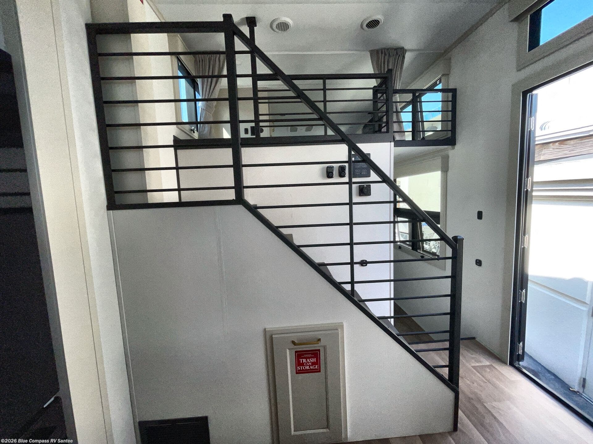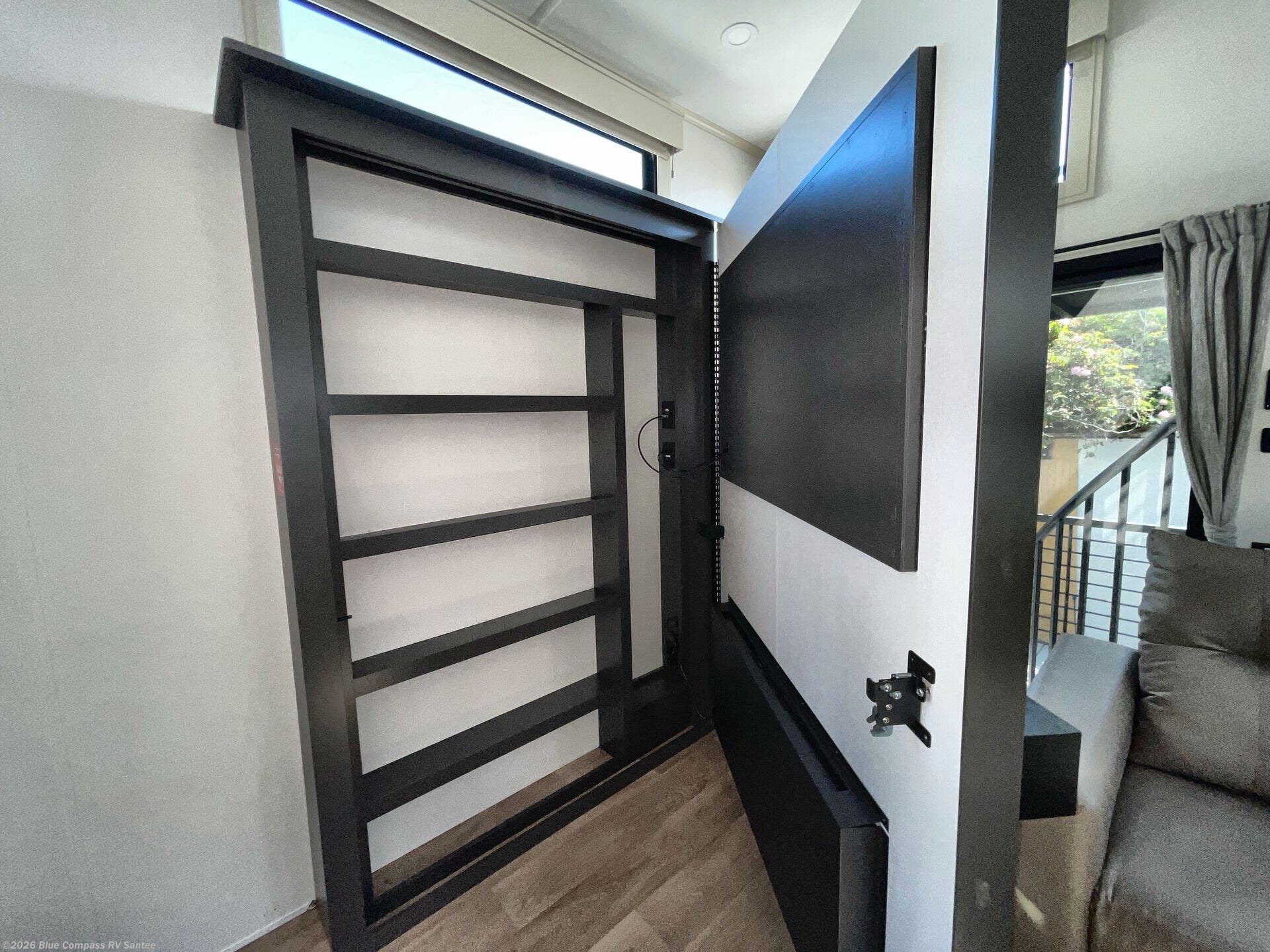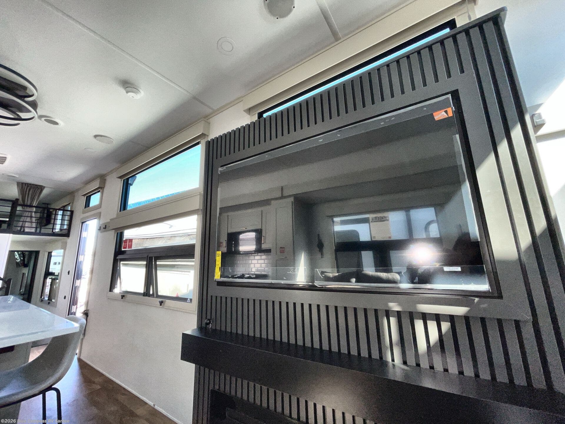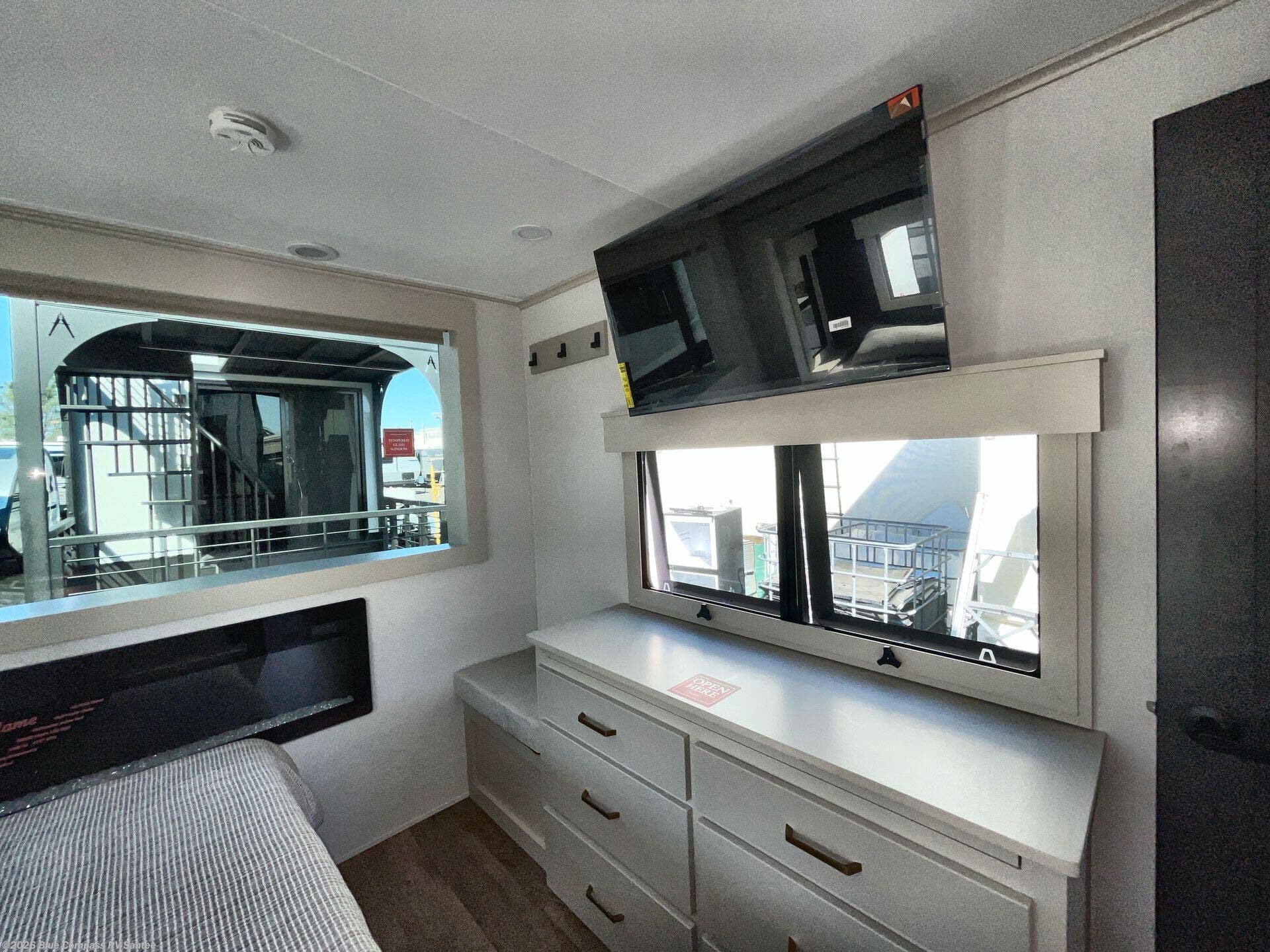 You'll fall in love with this spacious destination trailer that can sleep six each night! With dual entry doors, you can enter in through the rear deck that includes a lower level for gathering, and an observation deck to take in the stars! The other entry door leads into the combined kitchen and living room that includes a spacious kitchen island with a dishwasher, a pull-out pantry, an 18.6 cu. ft. refrigerator and an L-shaped sofa with a trundle bed. There is also an entertainment wall with smart storage and sliding doors that go out to the rear deck. A set of stairs leads to the loft with a queen-size sleeping pad, ample storage space, plus a table with a foot nook so you can put the table away when not in use. Back downstairs, a full bath will let you freshen up each day and a front private bedroom with a king bed slide is sure to bring comfort. There is also storage space for your things, a telescoping TV, plus washer and dryer prep if you plan to add these appliances!