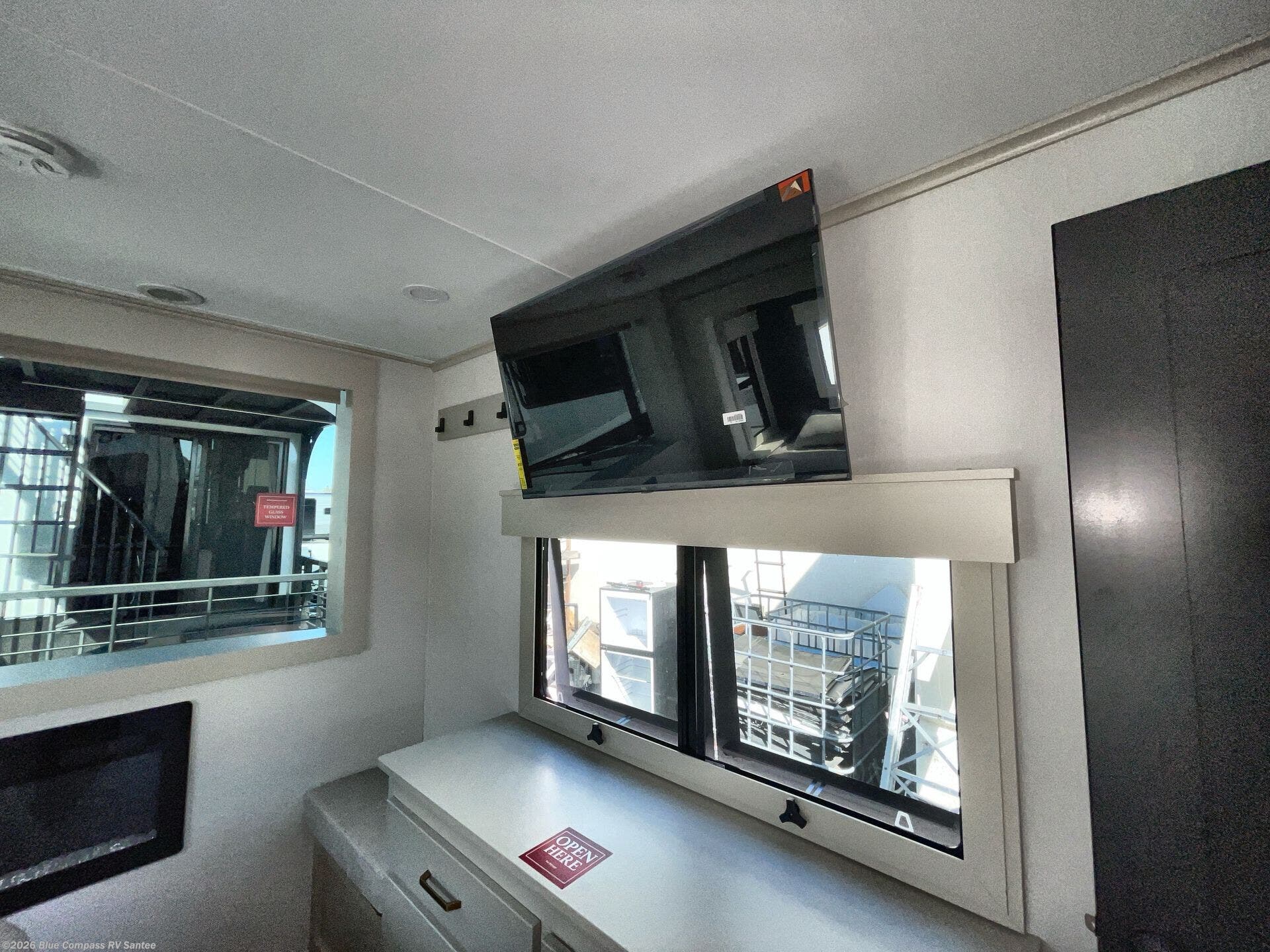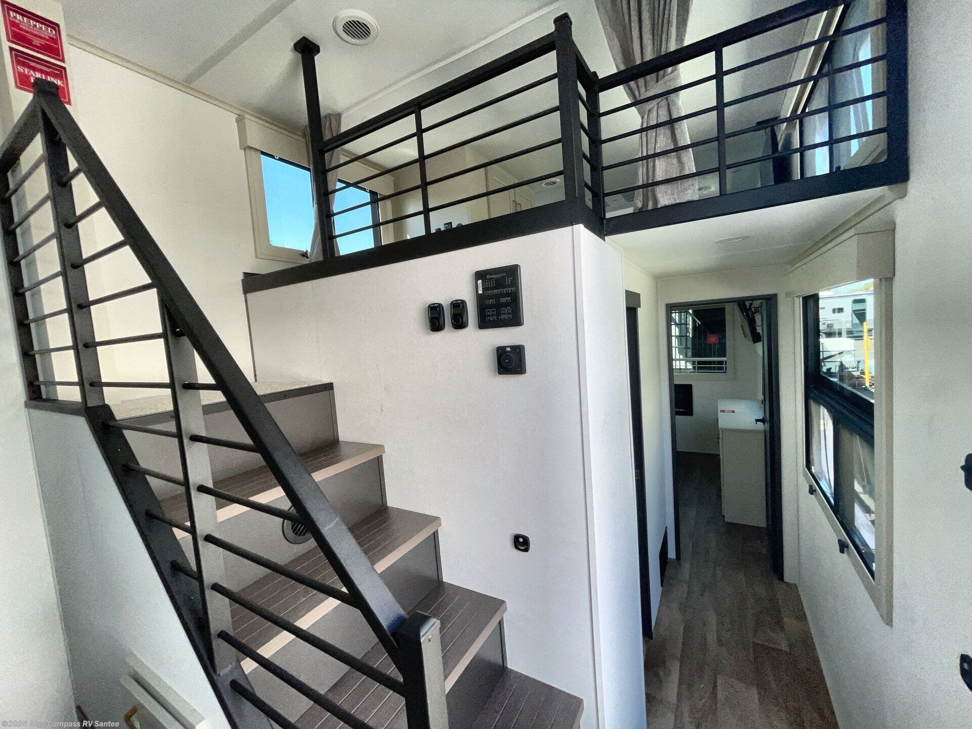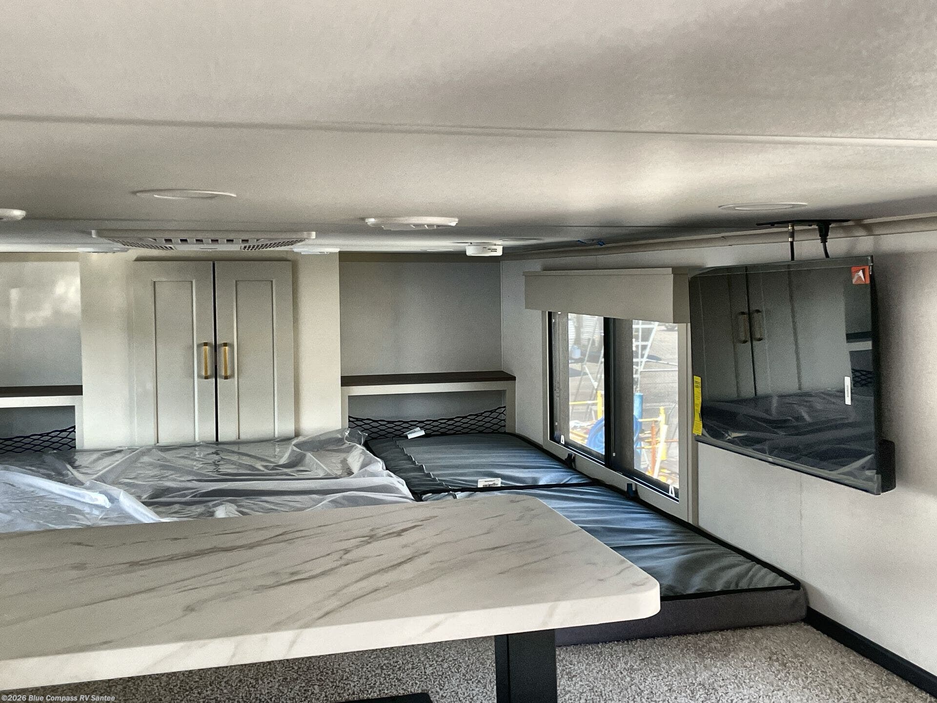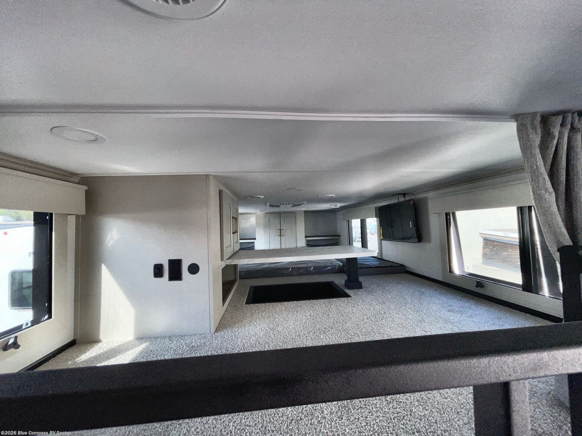 You'll fall in love with this spacious destination trailer that can sleep six each night! With dual entry doors, you can enter in through the rear deck that includes a lower level for gathering, and an observation deck to take in the stars! The other entry door leads into the combined kitchen and living room that includes a spacious kitchen island with a dishwasher, a pull-out pantry, an 18.6 cu. ft. refrigerator and an L-shaped sofa with a trundle bed. There is also an entertainment wall with smart storage and sliding doors that go out to the rear deck. A set of stairs leads to the loft with a queen-size sleeping pad, ample storage space, plus a table with a foot nook so you can put the table away when not in use. Back downstairs, a full bath will let you freshen up each day and a front private bedroom with a king bed slide is sure to bring comfort. There is also storage space for your things, a telescoping TV, plus washer and dryer prep if you plan to add these appliances!