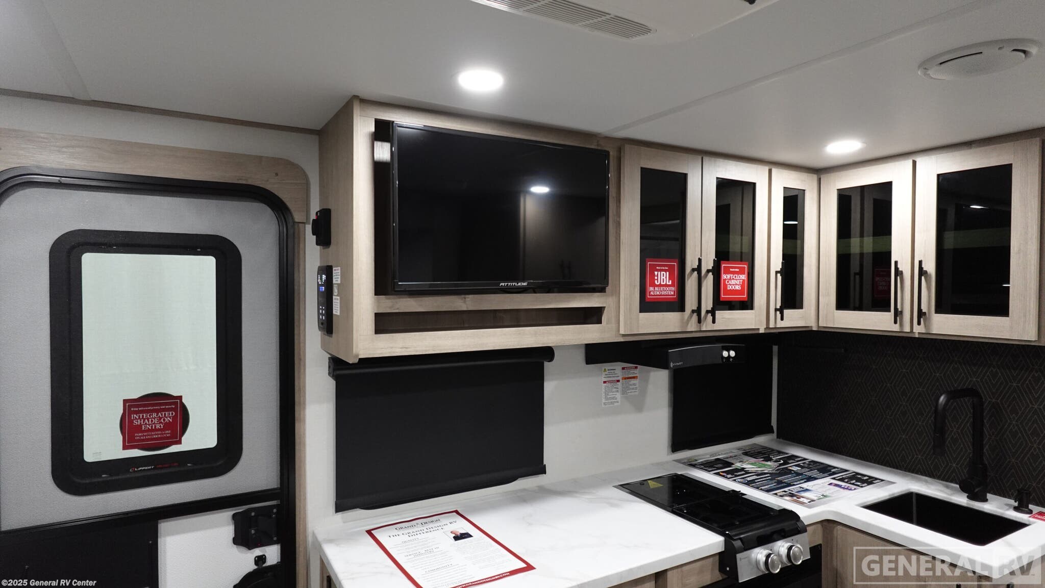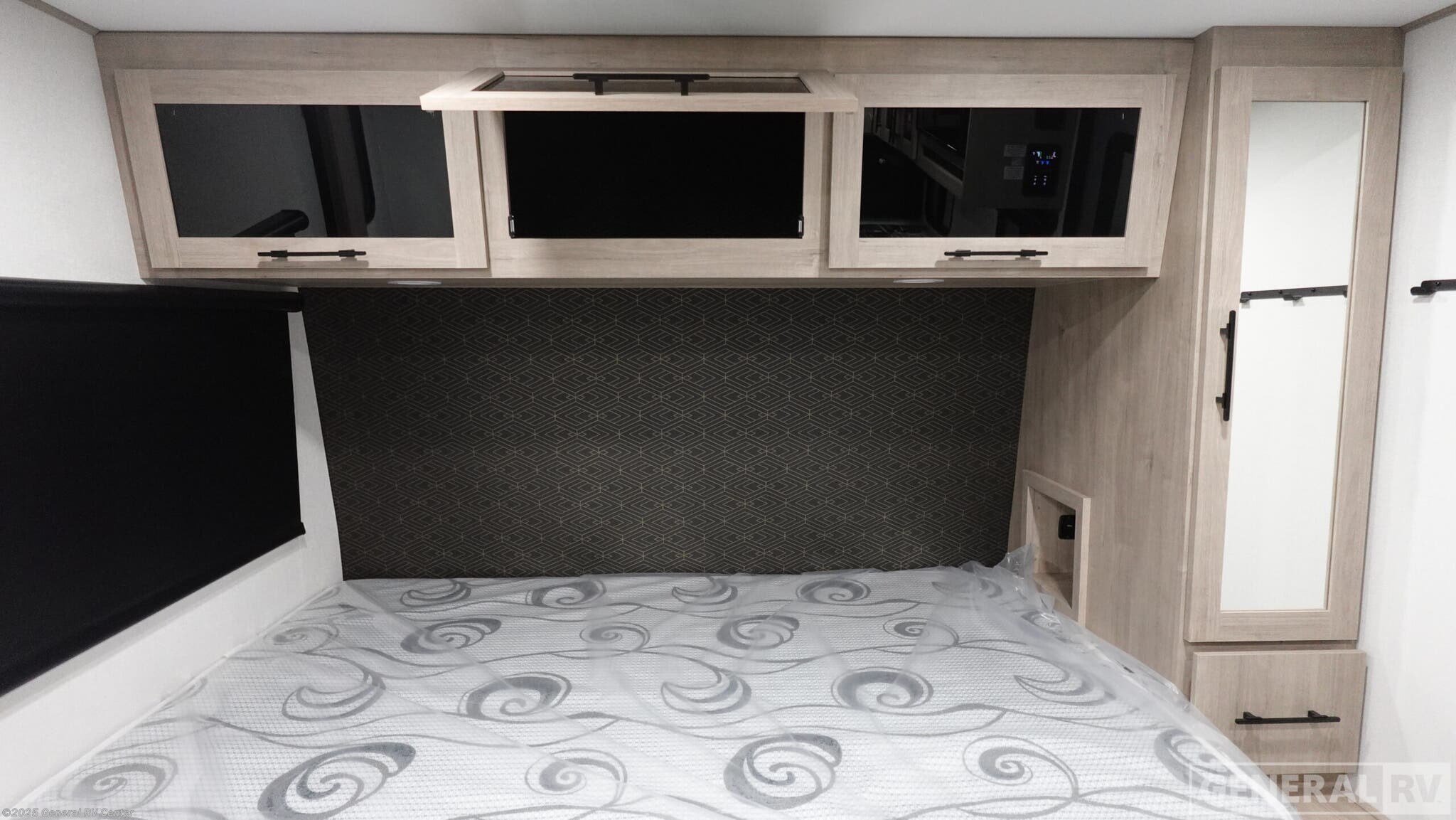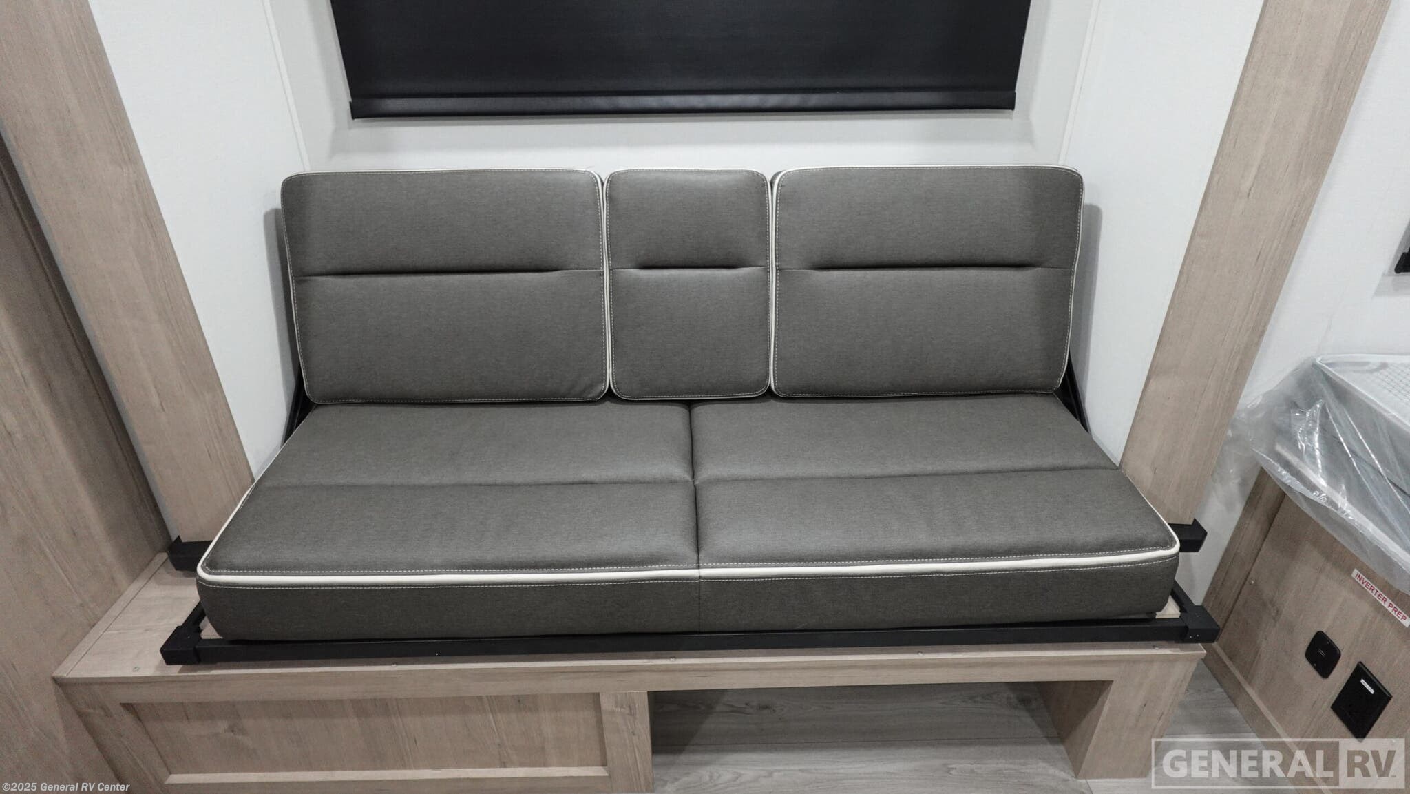 Discover the 2026 Grand Design Imagine AIM 16ML, where innovative design meets compact luxury. This RV is thoughtfully crafted to provide comfort and style for up to four adventurers. The heart of this cozy retreat features a center kitchen equipped with a two-burner cooktop and convection cooking, perfect for whipping up your favorite meals on the road. The mid-size refrigerator, powered by electric or propane, ensures your essentials are always fresh. The living area offers a convertible sleeper sofa, seamlessly transitioning from day lounging to night resting. At the rear, the bathroom combines functionality with elegance, featuring a sleek plastic and glass shower. The queen bed promises restful nights, while the powered retractable awning extends your living space outdoors, creating the perfect spot for relaxation under the stars. With a generous fresh water capacity of 37 gallons and ample storage, including unobstructed pass-thru storage, this RV is ready for your next adventure. For more details, visit your nearest General RV dealership.