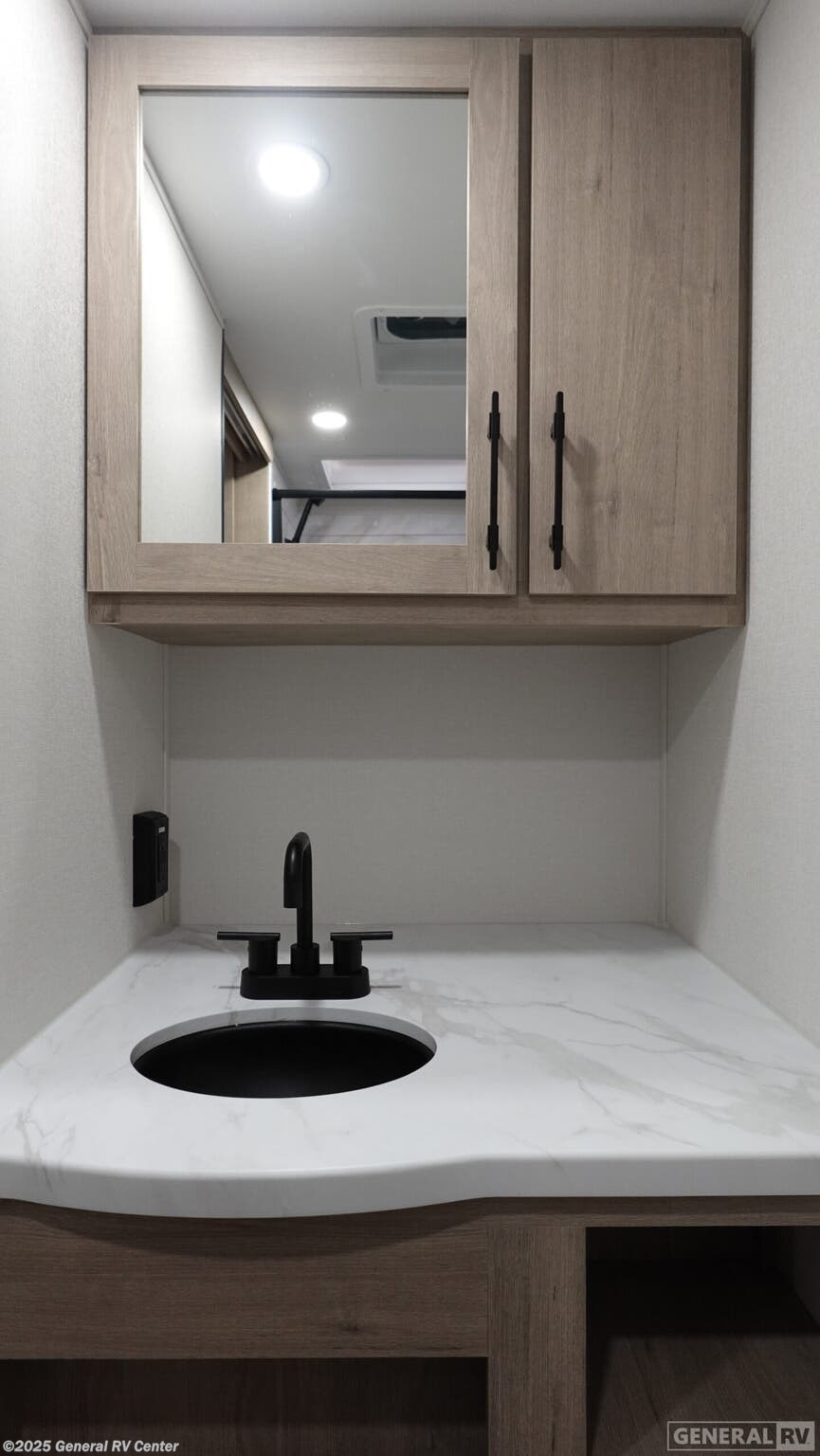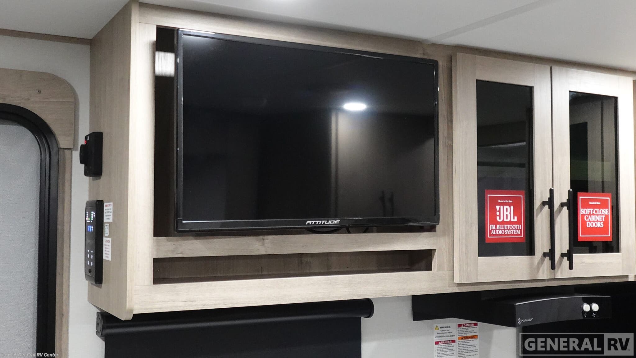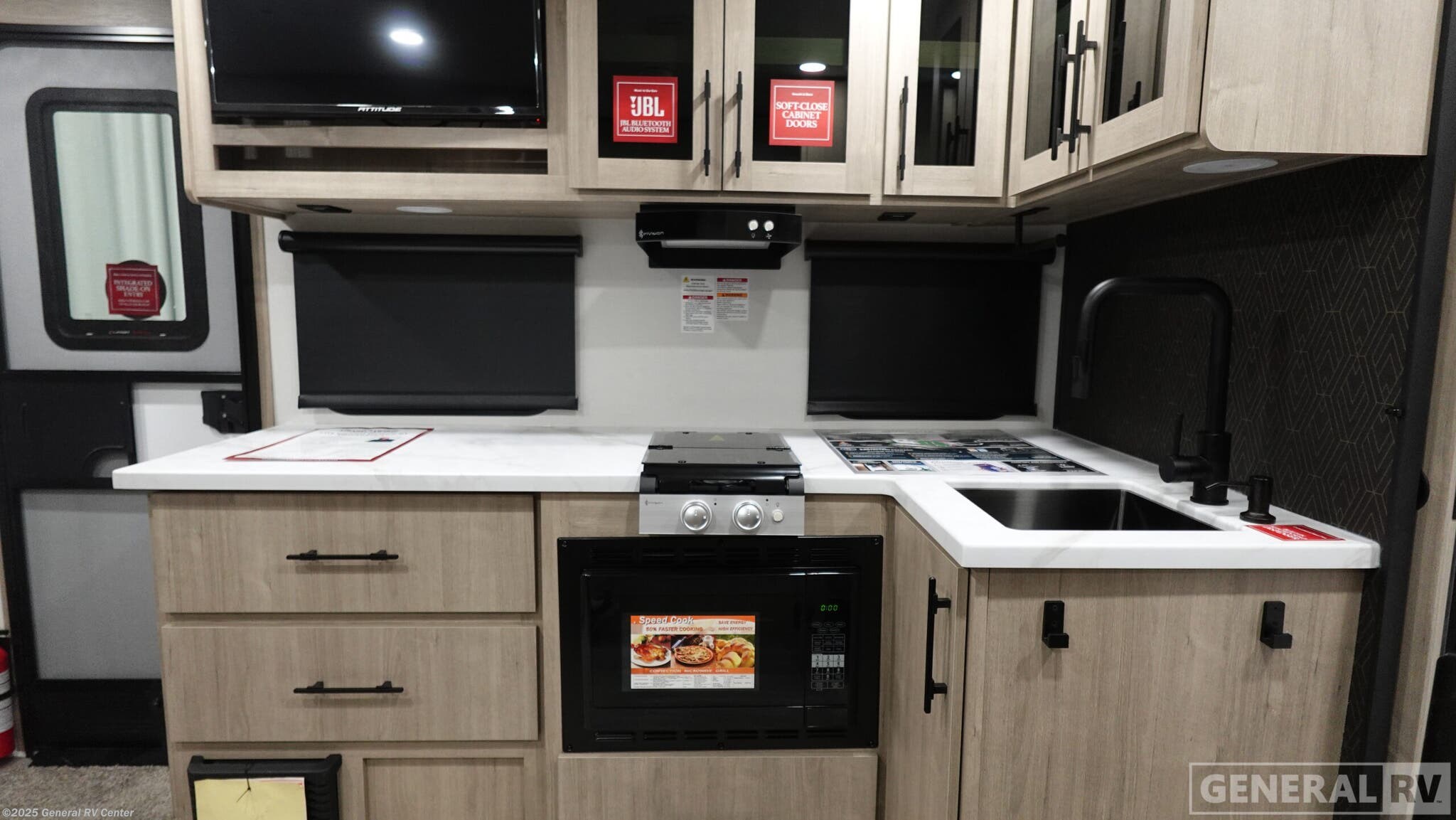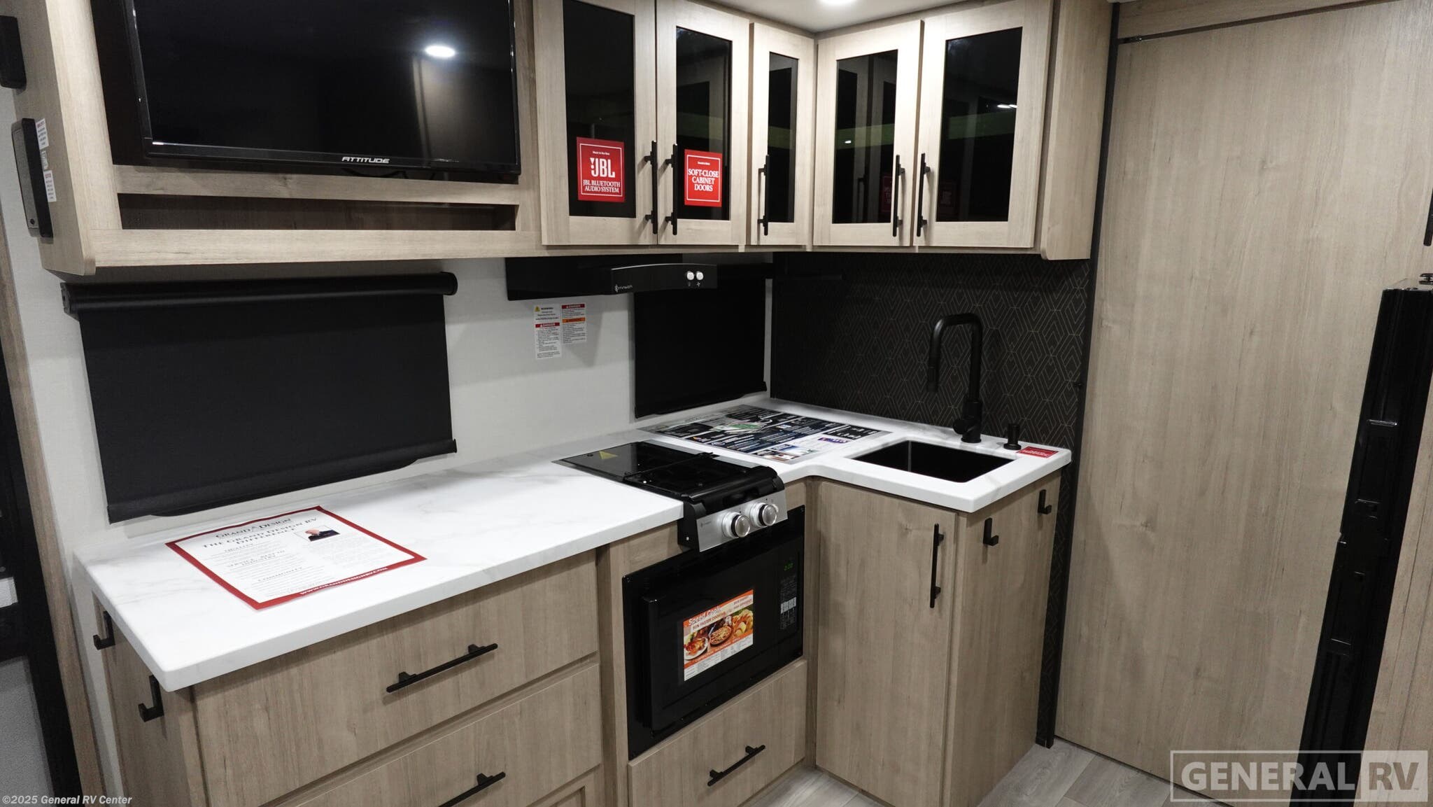 Discover the 2026 Grand Design Imagine AIM 16ML, where innovative design meets compact luxury. This RV is thoughtfully crafted to provide comfort and style for up to four adventurers. The heart of this cozy retreat features a center kitchen equipped with a two-burner cooktop and convection cooking, perfect for whipping up your favorite meals on the road. The mid-size refrigerator, powered by electric or propane, ensures your essentials are always fresh. The living area offers a convertible sleeper sofa, seamlessly transitioning from day lounging to night resting. At the rear, the bathroom combines functionality with elegance, featuring a sleek plastic and glass shower. The queen bed promises restful nights, while the powered retractable awning extends your living space outdoors, creating the perfect spot for relaxation under the stars. With a generous fresh water capacity of 37 gallons and ample storage, including unobstructed pass-thru storage, this RV is ready for your next adventure. For more details, visit your nearest General RV dealership.