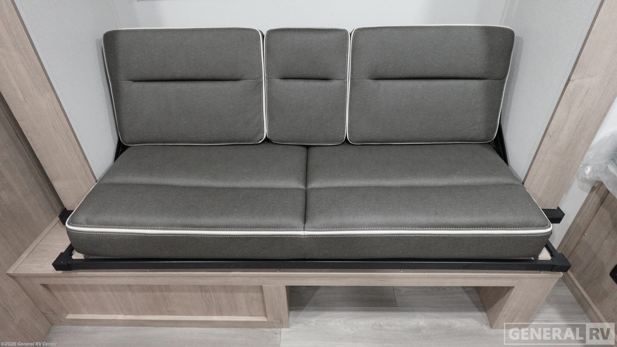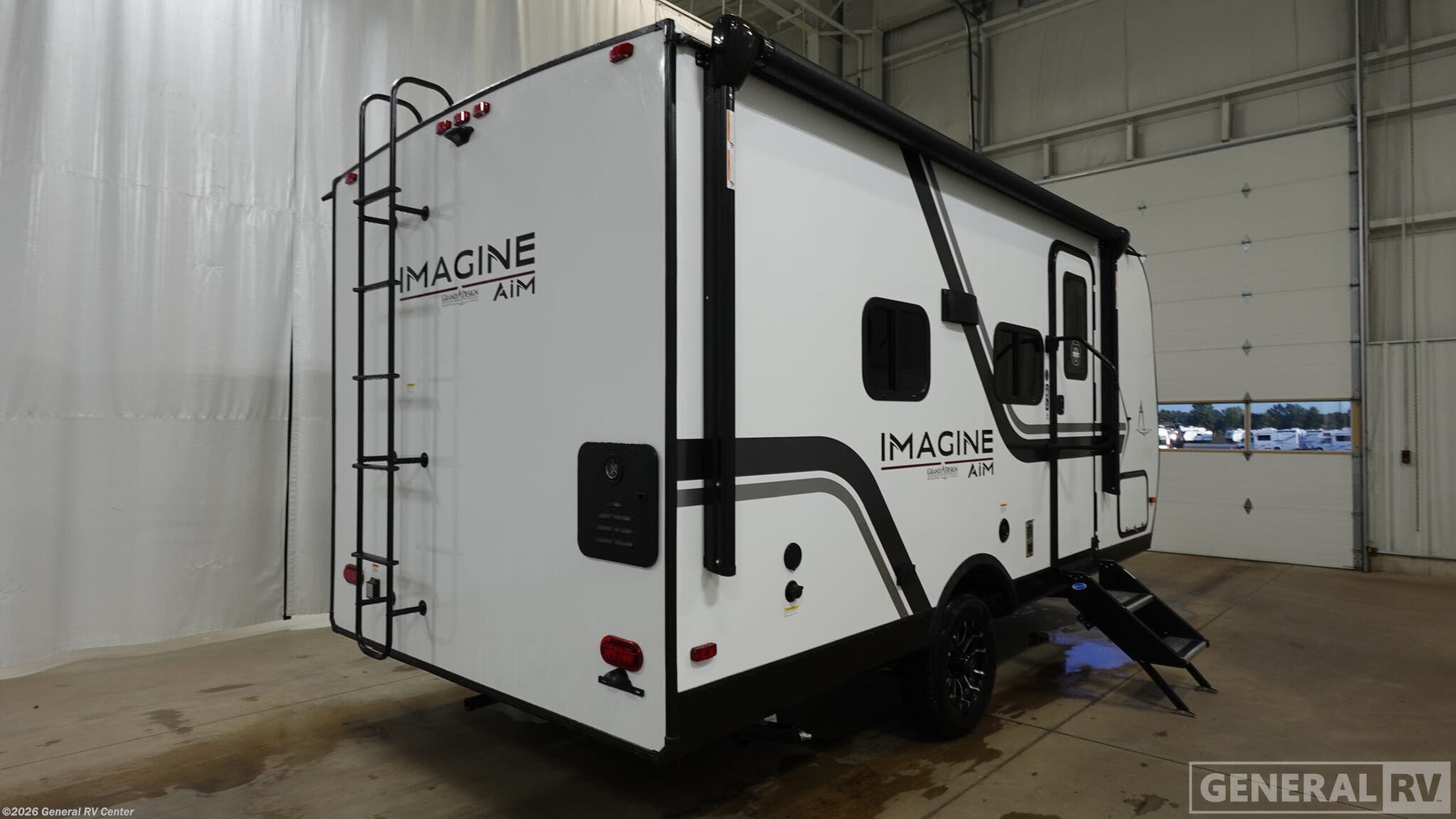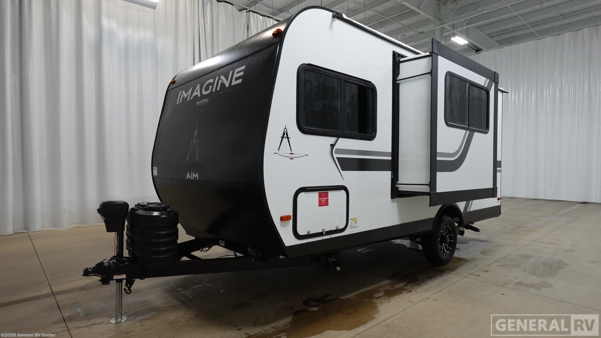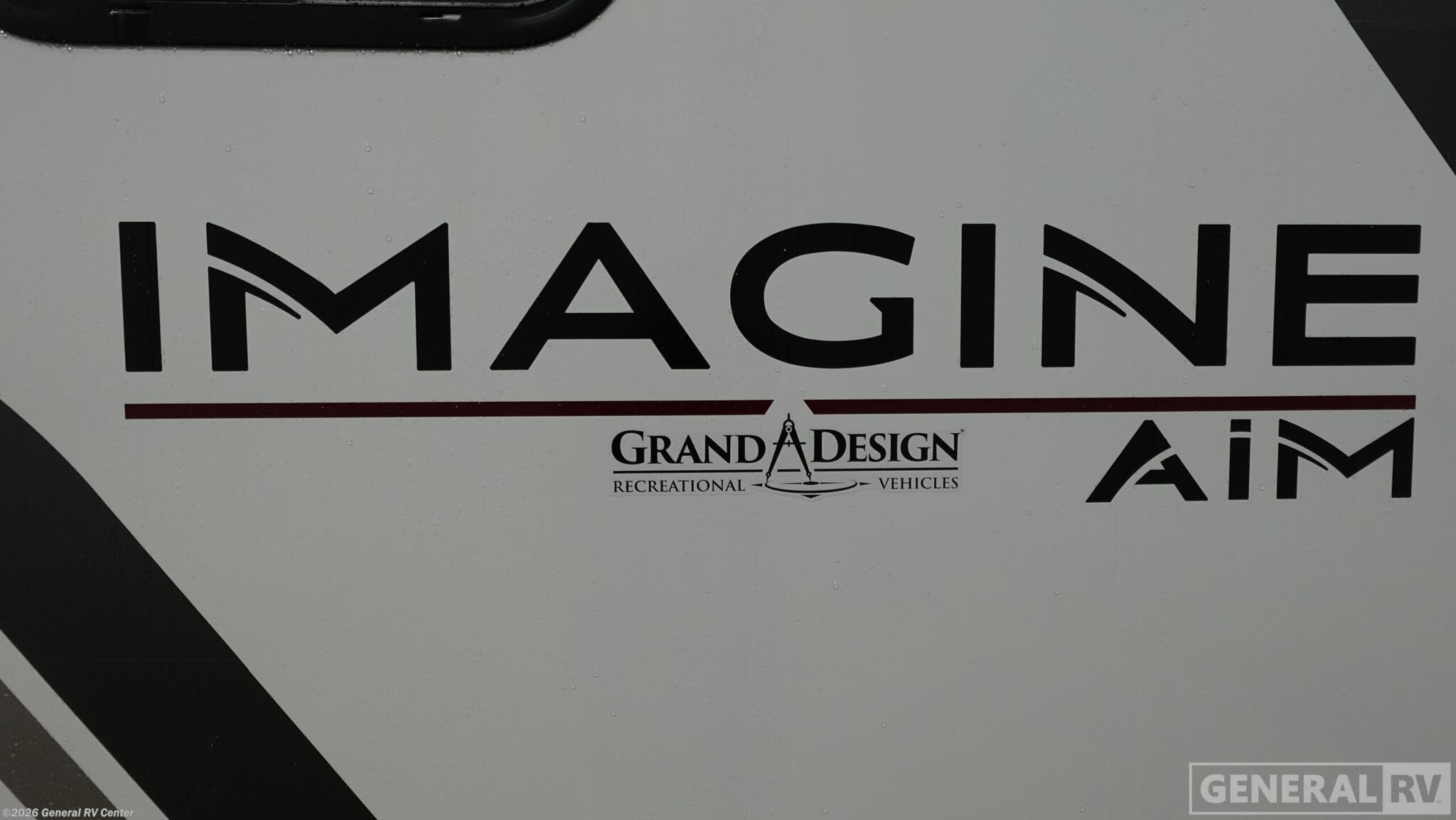 Discover the 2026 Grand Design Imagine AIM 16ML, where innovative design meets compact luxury. This RV is thoughtfully crafted to provide comfort and style for up to four adventurers. The heart of this cozy retreat features a center kitchen equipped with a two-burner cooktop and convection cooking, perfect for whipping up your favorite meals on the road. The mid-size refrigerator, powered by electric or propane, ensures your essentials are always fresh. The living area offers a convertible sleeper sofa, seamlessly transitioning from day lounging to night resting. At the rear, the bathroom combines functionality with elegance, featuring a sleek plastic and glass shower. The queen bed promises restful nights, while the powered retractable awning extends your living space outdoors, creating the perfect spot for relaxation under the stars. With a generous fresh water capacity of 37 gallons and ample storage, including unobstructed pass-thru storage, this RV is ready for your next adventure. For more details, visit your nearest General RV dealership.