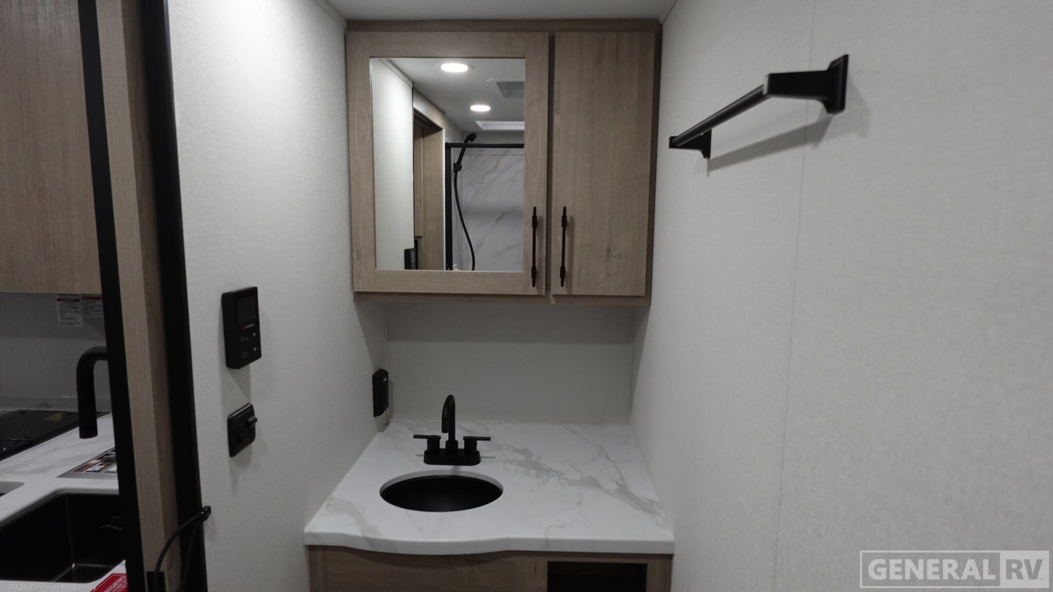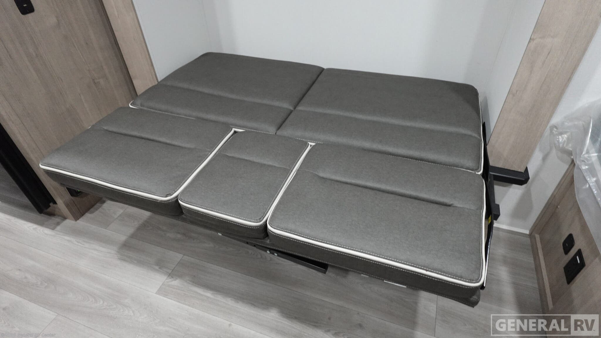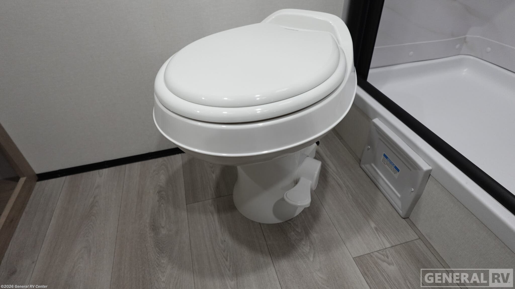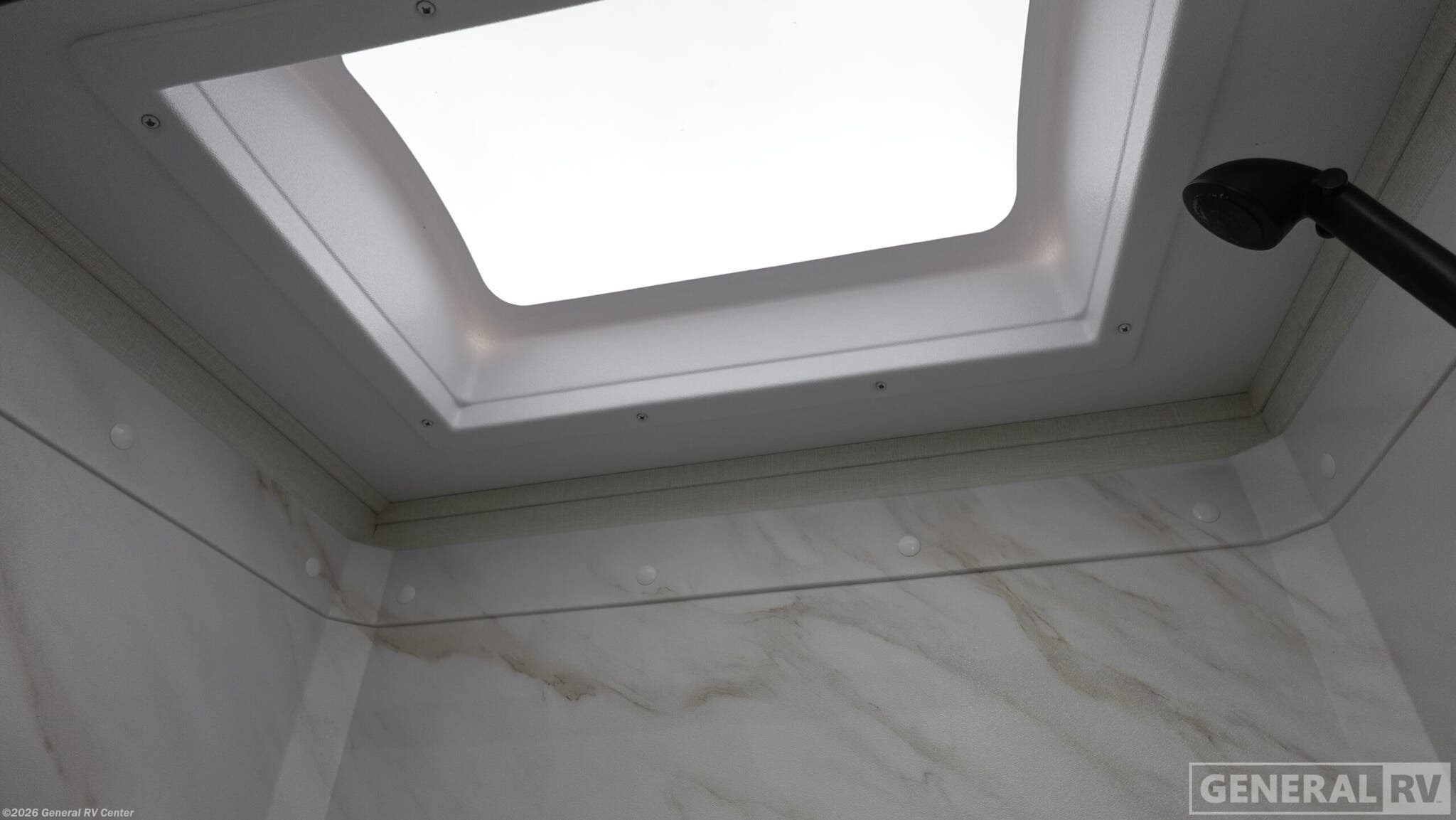 Discover the 2026 Grand Design Imagine AIM 16ML, where innovative design meets compact luxury. This RV is thoughtfully crafted to provide comfort and style for up to four adventurers. The heart of this cozy retreat features a center kitchen equipped with a two-burner cooktop and convection cooking, perfect for whipping up your favorite meals on the road. The mid-size refrigerator, powered by electric or propane, ensures your essentials are always fresh. The living area offers a convertible sleeper sofa, seamlessly transitioning from day lounging to night resting. At the rear, the bathroom combines functionality with elegance, featuring a sleek plastic and glass shower. The queen bed promises restful nights, while the powered retractable awning extends your living space outdoors, creating the perfect spot for relaxation under the stars. With a generous fresh water capacity of 37 gallons and ample storage, including unobstructed pass-thru storage, this RV is ready for your next adventure. For more details, visit your nearest General RV dealership.