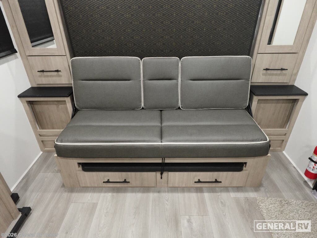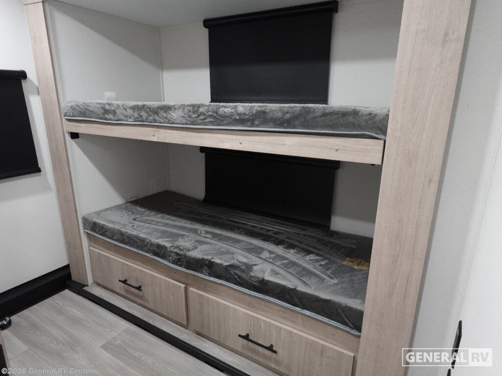 Experience the perfect blend of comfort and adventure with the 2026 Grand Design Imagine XLS 22BHE. This thoughtfully designed travel trailer is ideal for families or groups, offering ample sleeping space with a cozy queen bed, convertible seating, and a convenient bunkhouse. The clever use of space is evident with the Murphy bed that seamlessly transforms the living area, providing a spacious and versatile environment. The center kitchen is equipped with a three-burner cooktop and a full-size electric refrigerator, ensuring you have everything needed to prepare delicious meals on the road. The 22BHE features a sleek and modern interior with a rear bath that provides privacy and convenience. Enjoy the great outdoors under the expansive 18 ft. powered retractable awning, creating a perfect spot for relaxation or entertaining. With a robust fresh water capacity of 43 gallons and ample storage options, this RV is ready for extended adventures. Whether you're exploring the countryside or setting up camp by the lakeside, the Imagine XLS 22BHE is your gateway to unforgettable journeys. For more details and to explore this model further, visit your nearest General RV dealership.