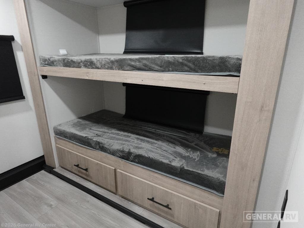 Experience the perfect blend of comfort and adventure with the 2026 Grand Design Imagine XLS 22BHE. This thoughtfully designed travel trailer is ideal for families or groups, offering ample sleeping space with a cozy queen bed, convertible seating, and a convenient bunkhouse. The clever use of space is evident with the Murphy bed that seamlessly transforms the living area, providing a spacious and versatile environment. The center kitchen is equipped with a three-burner cooktop and a full-size electric refrigerator, ensuring you have everything needed to prepare delicious meals on the road. The 22BHE features a sleek and modern interior with a rear bath that provides privacy and convenience. Enjoy the great outdoors under the expansive 18 ft. powered retractable awning, creating a perfect spot for relaxation or entertaining. With a robust fresh water capacity of 43 gallons and ample storage options, this RV is ready for extended adventures. Whether you're exploring the countryside or setting up camp by the lakeside, the Imagine XLS 22BHE is your gateway to unforgettable journeys. For more details and to explore this model further, visit your nearest General RV dealership.