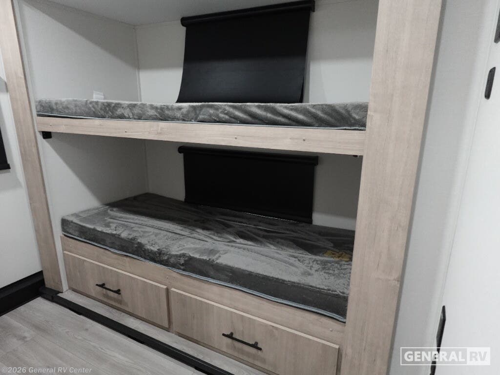 Experience the perfect blend of comfort and adventure with the 2026 Grand Design Imagine XLS 22BHE. This thoughtfully designed travel trailer is ideal for families or groups, offering ample sleeping space with a cozy queen bed, convertible seating, and a convenient bunkhouse. The clever use of space is evident with the Murphy bed that seamlessly transforms the living area, providing a spacious and versatile environment. The center kitchen is equipped with a three-burner cooktop and a full-size electric refrigerator, ensuring you have everything needed to prepare delicious meals on the road. The 22BHE features a sleek and modern interior with a rear bath that provides privacy and convenience. Enjoy the great outdoors under the expansive 18 ft. powered retractable awning, creating a perfect spot for relaxation or entertaining. With a robust fresh water capacity of 43 gallons and ample storage options, this RV is ready for extended adventures. Whether you're exploring the countryside or setting up camp by the lakeside, the Imagine XLS 22BHE is your gateway to unforgettable journeys. For more details and to explore this model further, visit your nearest General RV dealership.