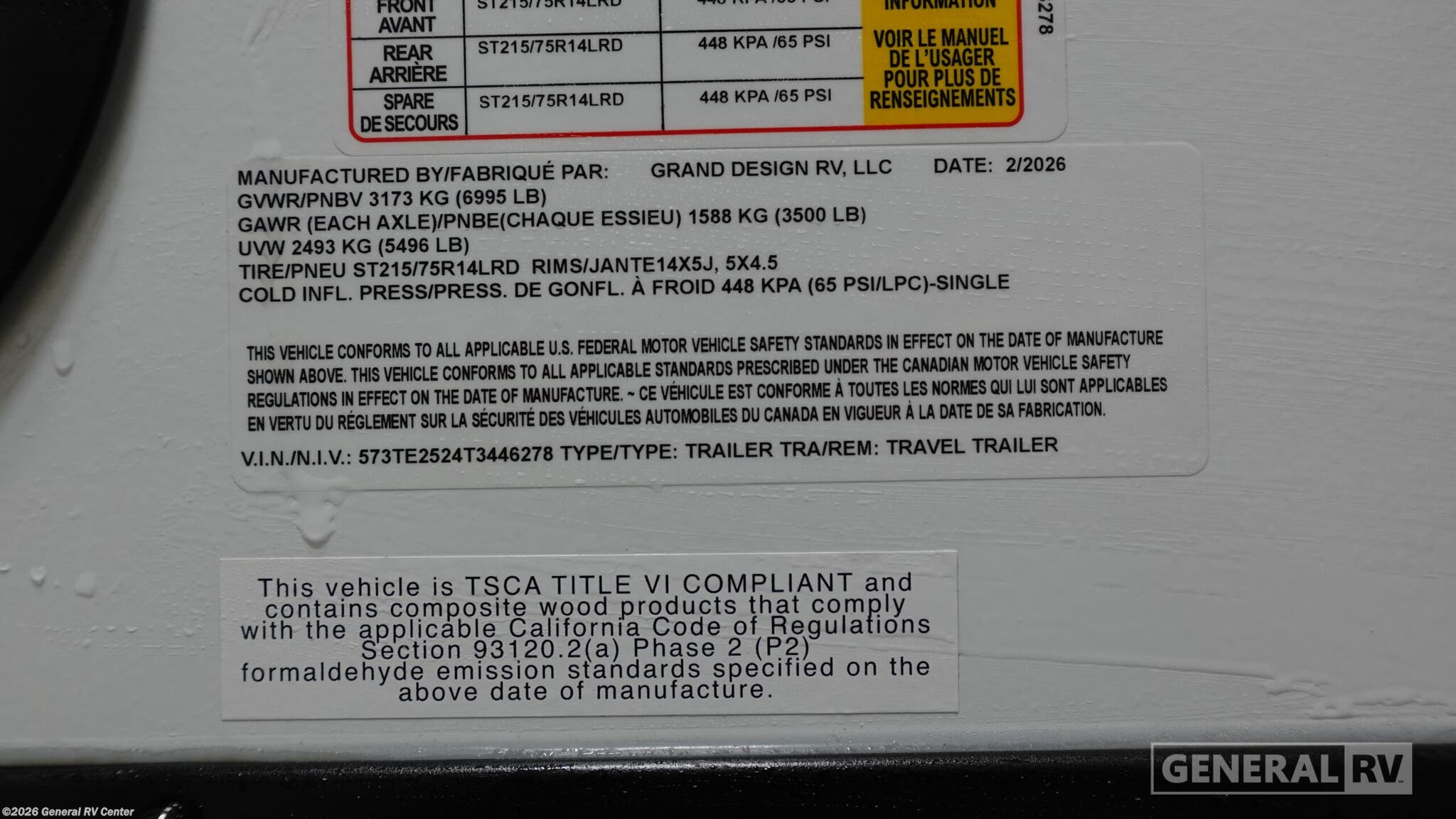 - VIN573TE2524T3446278