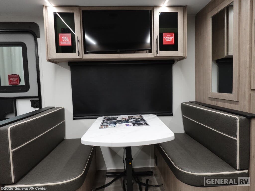 Step into the 2026 Grand Design Imagine XLS 22MLE, where comfort meets convenience in a compact yet spacious travel companion. This well-crafted RV is designed to cater to your adventurous spirit while ensuring you have all the comforts of home. Measuring just over 26 feet in length, the 22MLE offers an inviting layout featuring a center kitchen and living area, complemented by a rear bath and a cozy front bedroom. The 60" x 80" queen bed promises restful nights, while the convertible seating ensures that up to four guests can sleep comfortably. The heart of this RV is the thoughtfully designed kitchen, equipped with a mid-size refrigerator and a three-burner cooktop, perfect for whipping up your favorite meals on the road. Enjoy your culinary creations in the booth dinette or relax in the plush theater seating, all under the expansive 18-foot powered retractable awning that extends your living space outdoors. With ample storage, including an unobstructed pass-thru compartment, and a universal docking station, the Imagine XLS 22MLE ensures that every journey is both convenient and memorable. For more details, visit your nearest General RV dealership and embark on your next adventure in style.