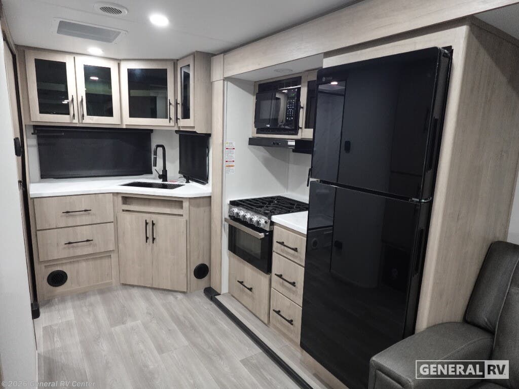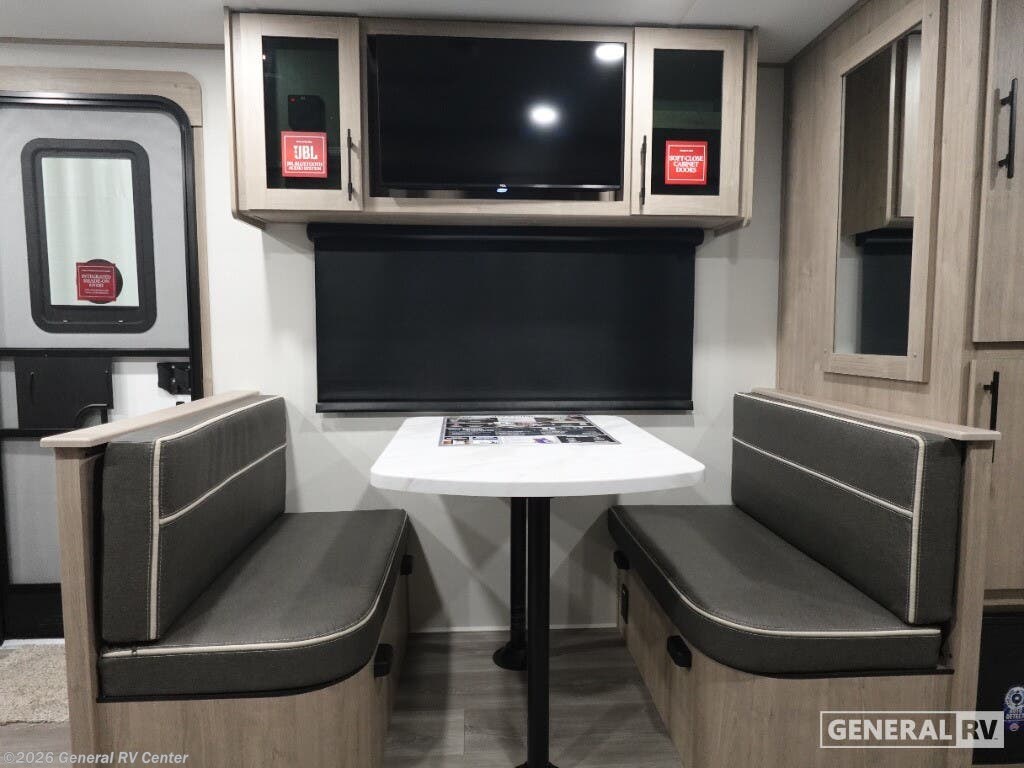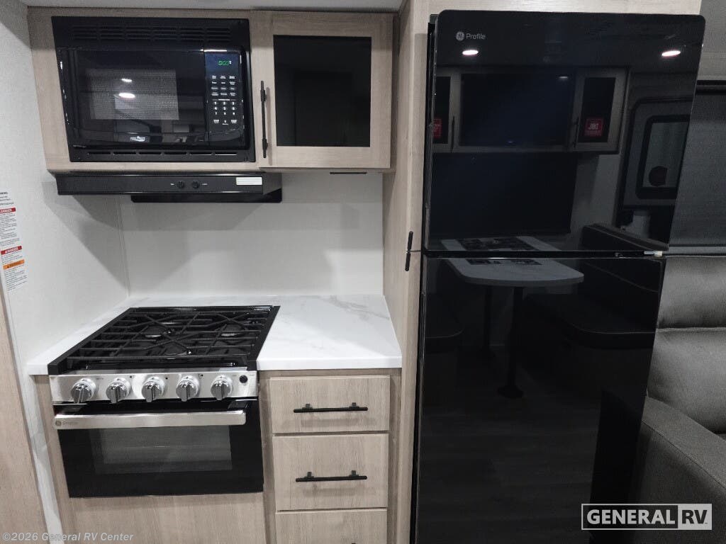 Step into the 2026 Grand Design Imagine XLS 22MLE, where comfort meets convenience in a compact yet spacious travel companion. This well-crafted RV is designed to cater to your adventurous spirit while ensuring you have all the comforts of home. Measuring just over 26 feet in length, the 22MLE offers an inviting layout featuring a center kitchen and living area, complemented by a rear bath and a cozy front bedroom. The 60" x 80" queen bed promises restful nights, while the convertible seating ensures that up to four guests can sleep comfortably. The heart of this RV is the thoughtfully designed kitchen, equipped with a mid-size refrigerator and a three-burner cooktop, perfect for whipping up your favorite meals on the road. Enjoy your culinary creations in the booth dinette or relax in the plush theater seating, all under the expansive 18-foot powered retractable awning that extends your living space outdoors. With ample storage, including an unobstructed pass-thru compartment, and a universal docking station, the Imagine XLS 22MLE ensures that every journey is both convenient and memorable. For more details, visit your nearest General RV dealership and embark on your next adventure in style.