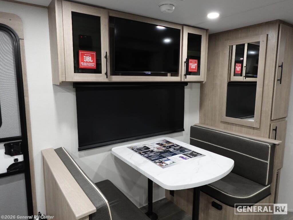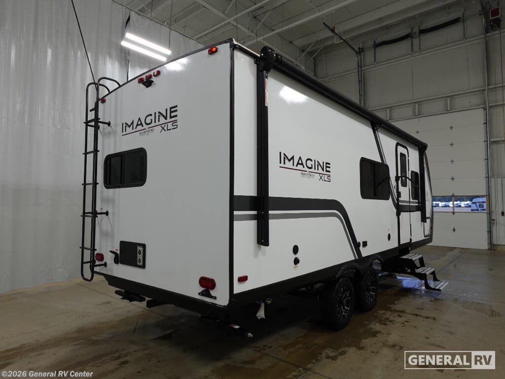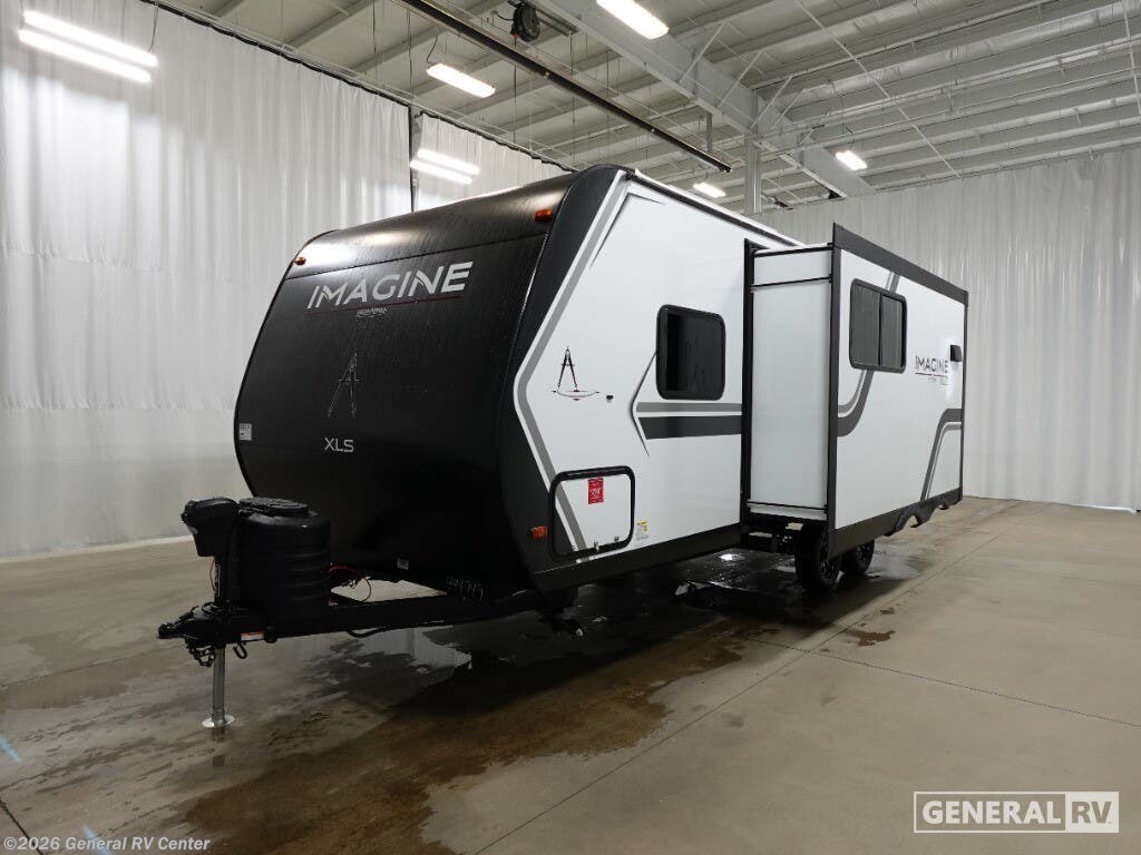 Step into the 2026 Grand Design Imagine XLS 22MLE, where comfort meets convenience in a compact yet spacious travel companion. This well-crafted RV is designed to cater to your adventurous spirit while ensuring you have all the comforts of home. Measuring just over 26 feet in length, the 22MLE offers an inviting layout featuring a center kitchen and living area, complemented by a rear bath and a cozy front bedroom. The 60" x 80" queen bed promises restful nights, while the convertible seating ensures that up to four guests can sleep comfortably. The heart of this RV is the thoughtfully designed kitchen, equipped with a mid-size refrigerator and a three-burner cooktop, perfect for whipping up your favorite meals on the road. Enjoy your culinary creations in the booth dinette or relax in the plush theater seating, all under the expansive 18-foot powered retractable awning that extends your living space outdoors. With ample storage, including an unobstructed pass-thru compartment, and a universal docking station, the Imagine XLS 22MLE ensures that every journey is both convenient and memorable. For more details, visit your nearest General RV dealership and embark on your next adventure in style.