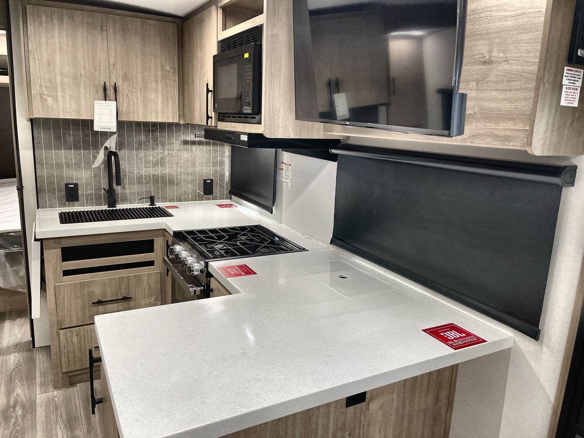 Designed to maximize every inch, the 2300MK keeps essential living zones close at hand: a private front sleeping area, centralized cooking, and a welcoming main living area that transitions to relaxation with theater seating and a TV. The rear bath adds convenience, and the single slide-out strikes a balance between space and towability—ideal for driving into campgrounds, urban getaways, or remote adventures.