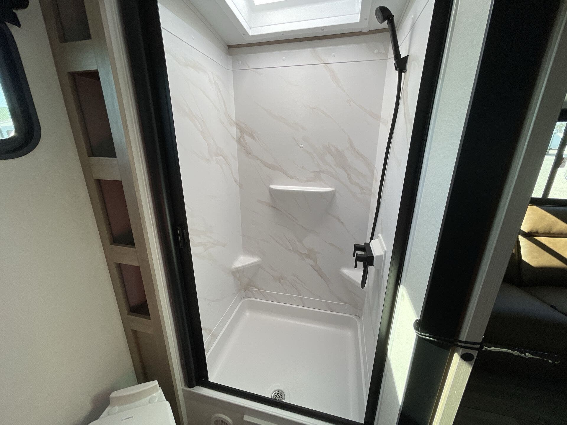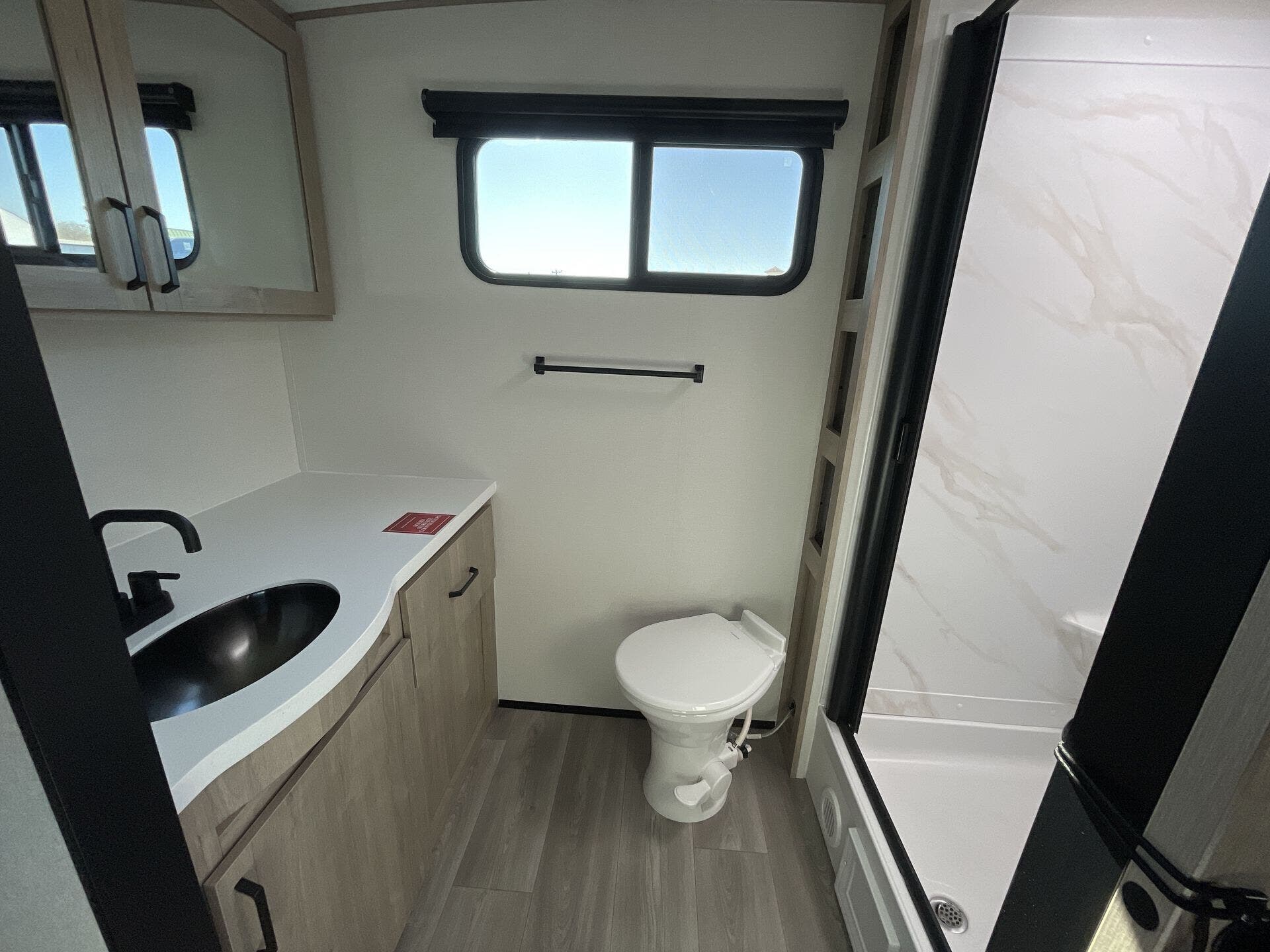 Up front, the private bedroom offers a relaxing retreat with a walk-around queen bed, overhead cabinets, and dual wardrobes for convenient storage. A roomy, residential-style bathroom with a large shower ensures daily comfort. Outside, the Imagine 2300MK elevates the camping experience with an oversized awning, exterior speakers, and an outdoor spray port for easy cleanup. With its blend of functionality, comfort, and Grand Design’s renowned build quality, the 2026 Imagine 2300MK is ready to make every journey feel like home—wherever the road leads.