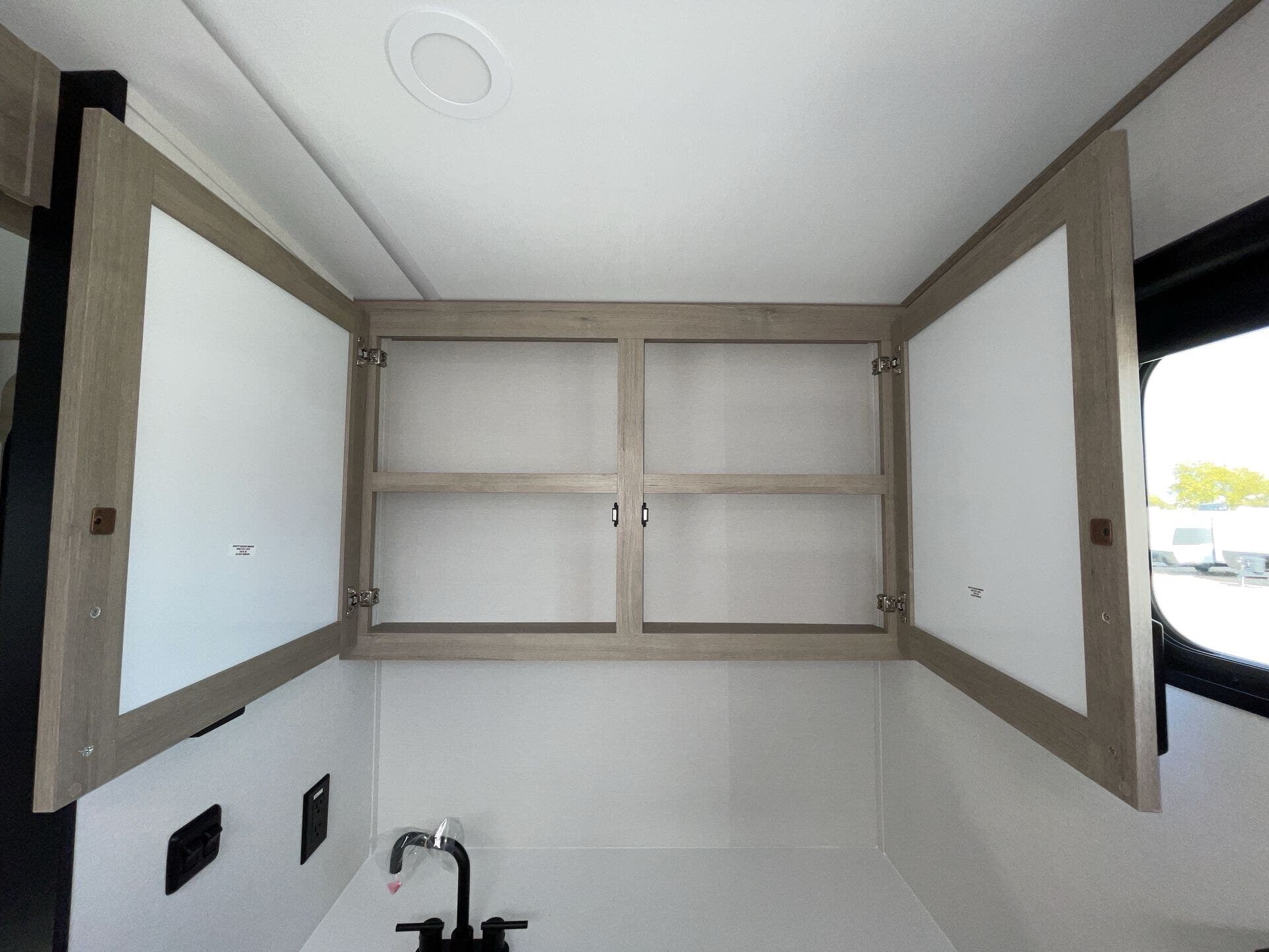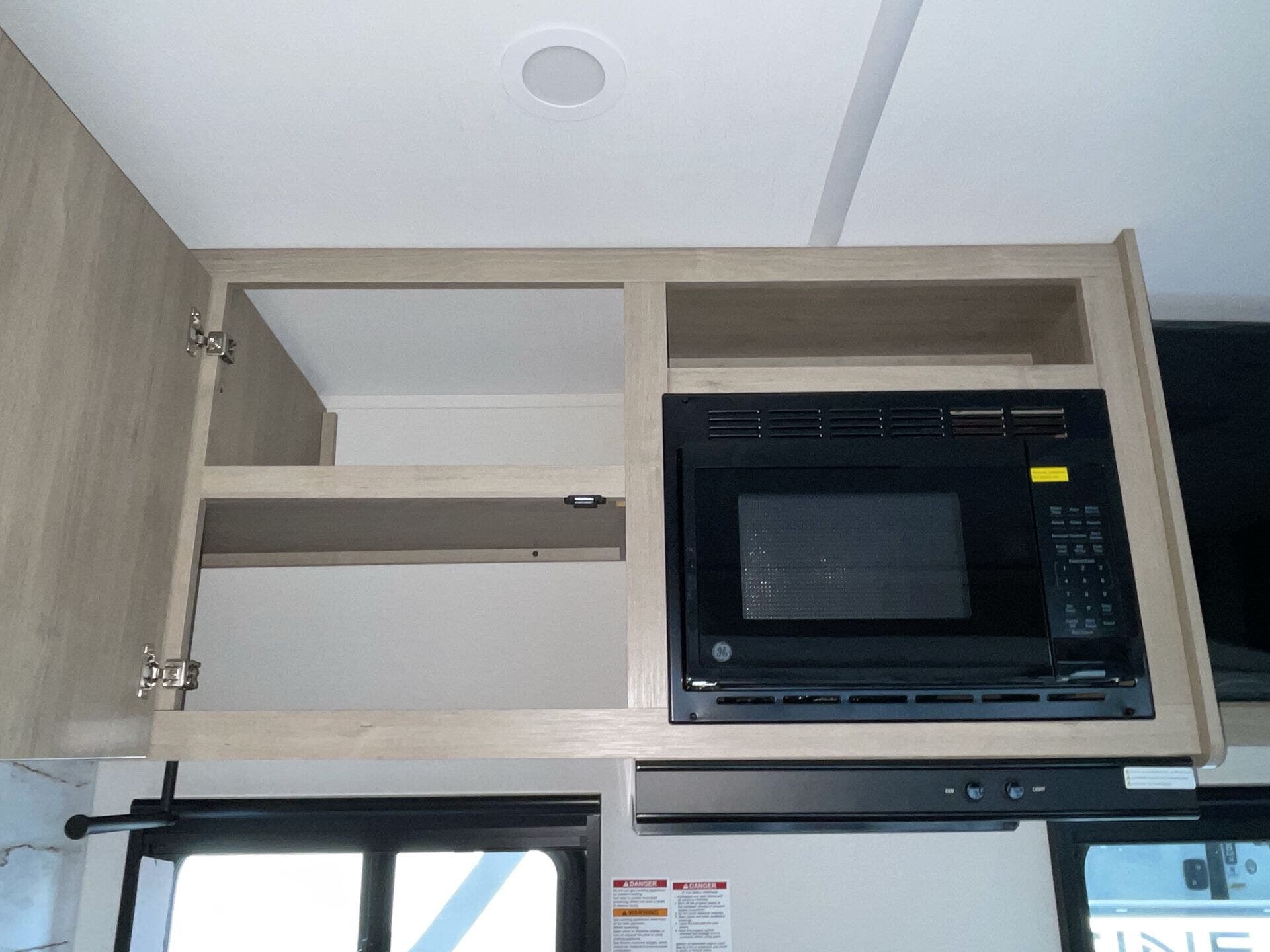 Day/Night Shades, Kitchen Sink, Medicine Cabinet, Overhead Cabinetry, Pantry, Queen Bed, Removable Table, Roof Vents, Shower, Solid Surface Countertops, Theater Seating, Toilet, Wardrobe(s) -