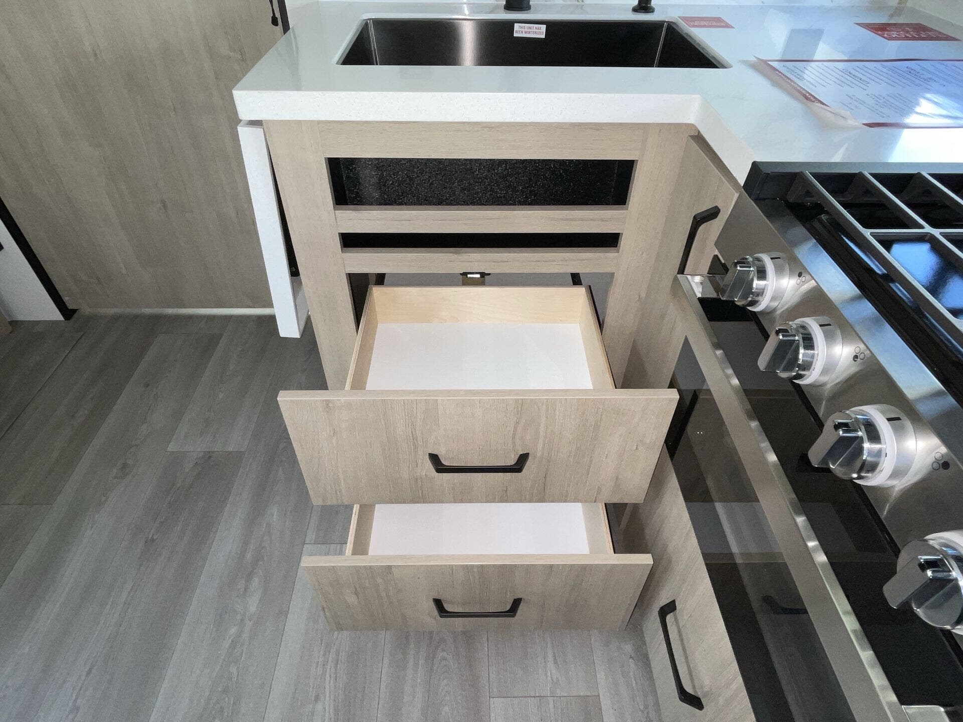 It’s built with all the good stuff too: solid insulation, heated underbelly, tankless hot water heater, and great tank sizes for longer trips. The 18' power awning with LED lighting makes your outdoor space just as easy to enjoy.