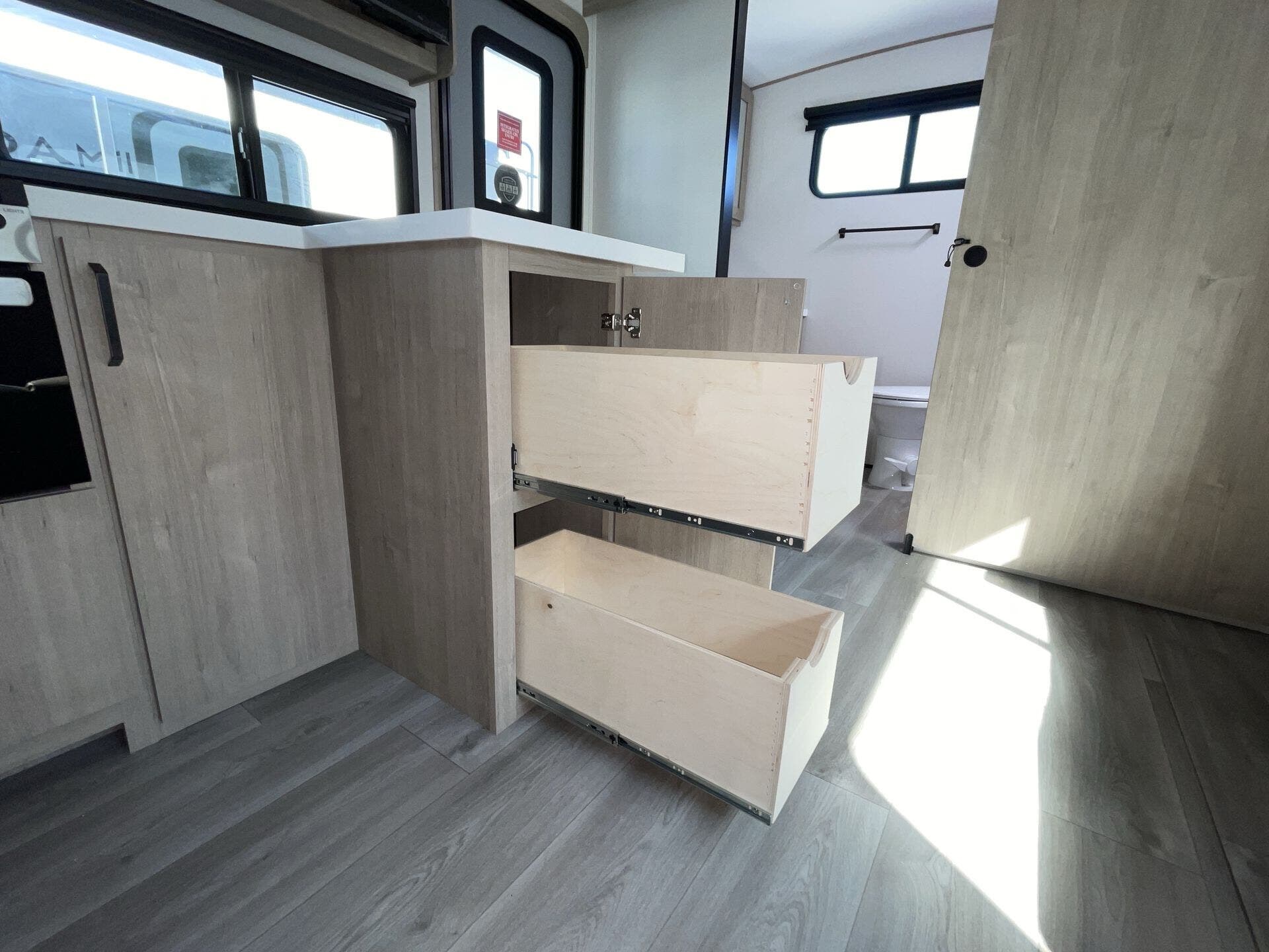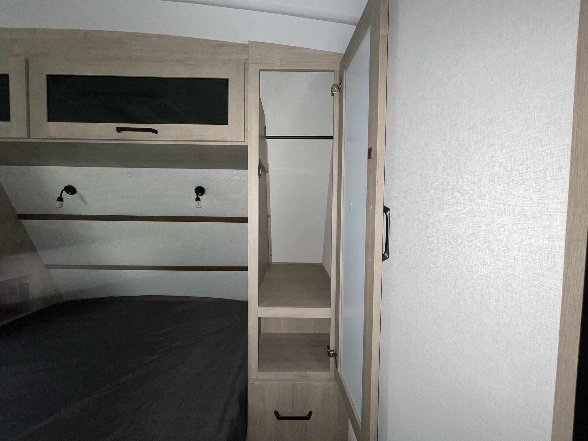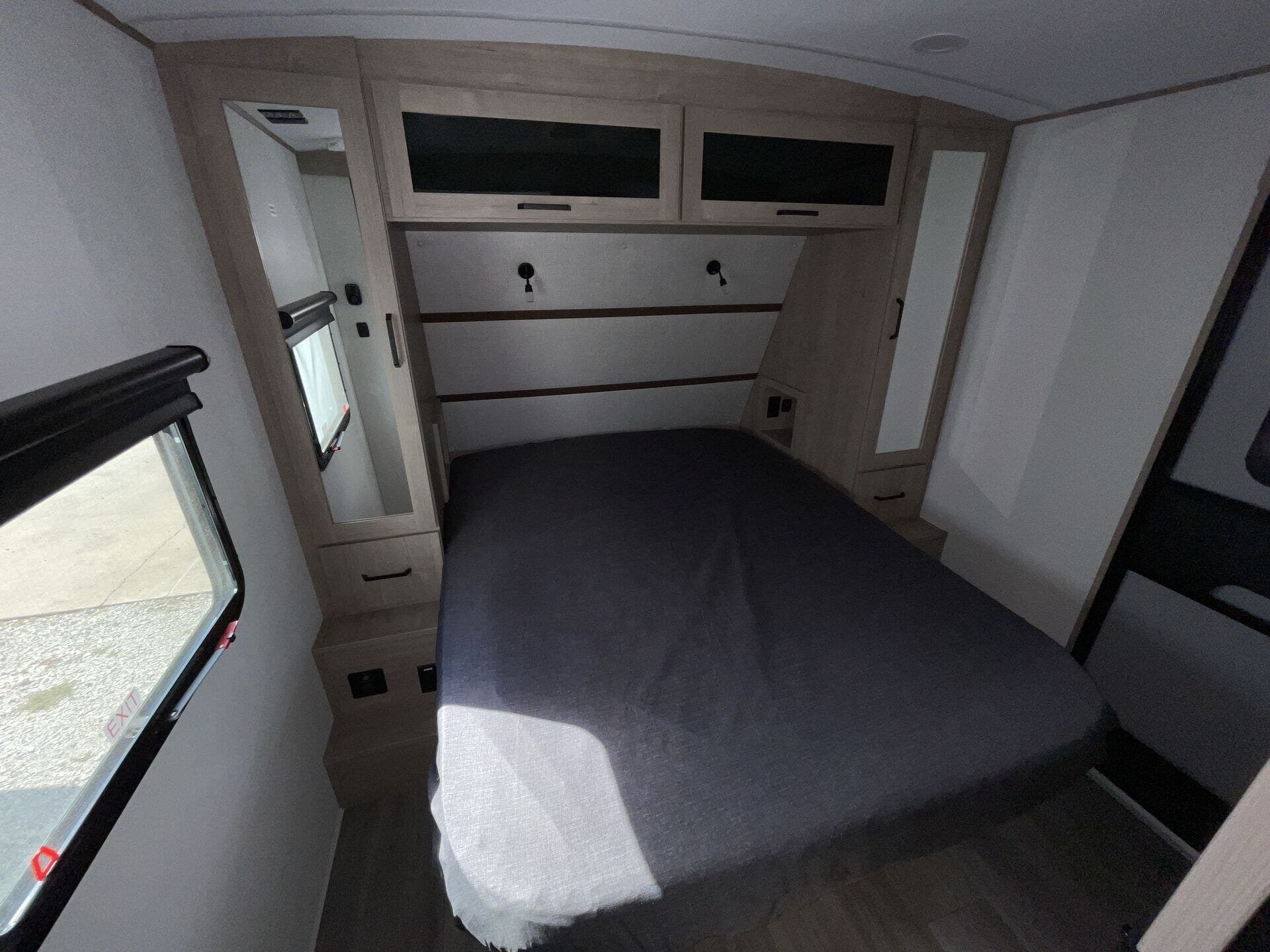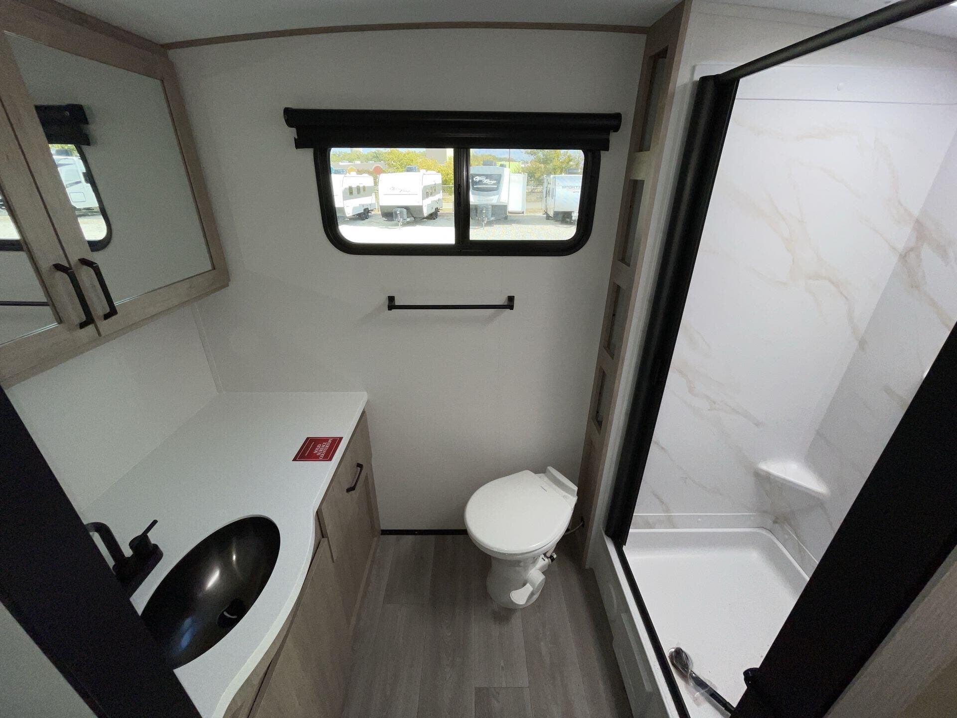 The 2026 Grand Design Imagine 2300MK is perfect if you want something super manageable to tow but still spacious and comfortable inside. The front queen bedroom gives you a cozy, private spot, and the slide-out really opens up the living area. The theater seating is great for relaxing after a long day, and the rear bath actually has room to move — no squeezing in sideways.